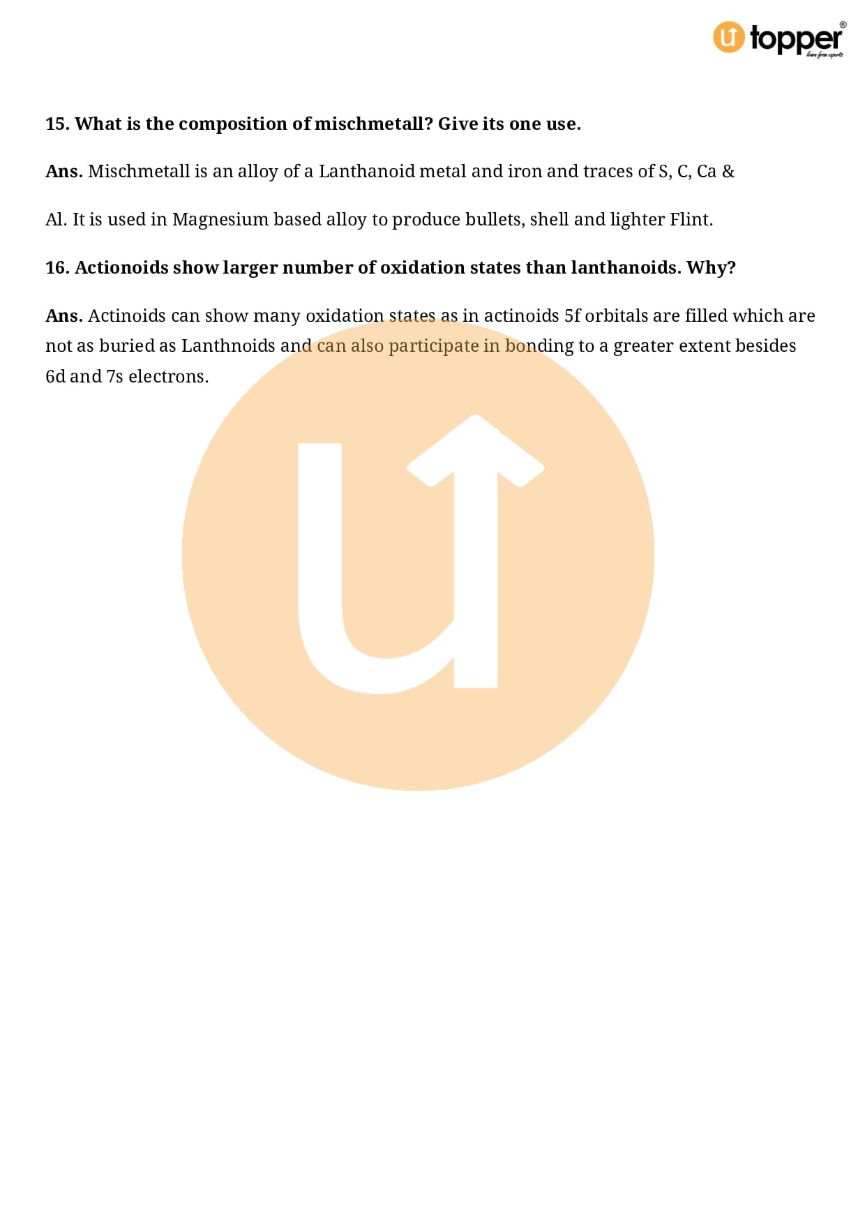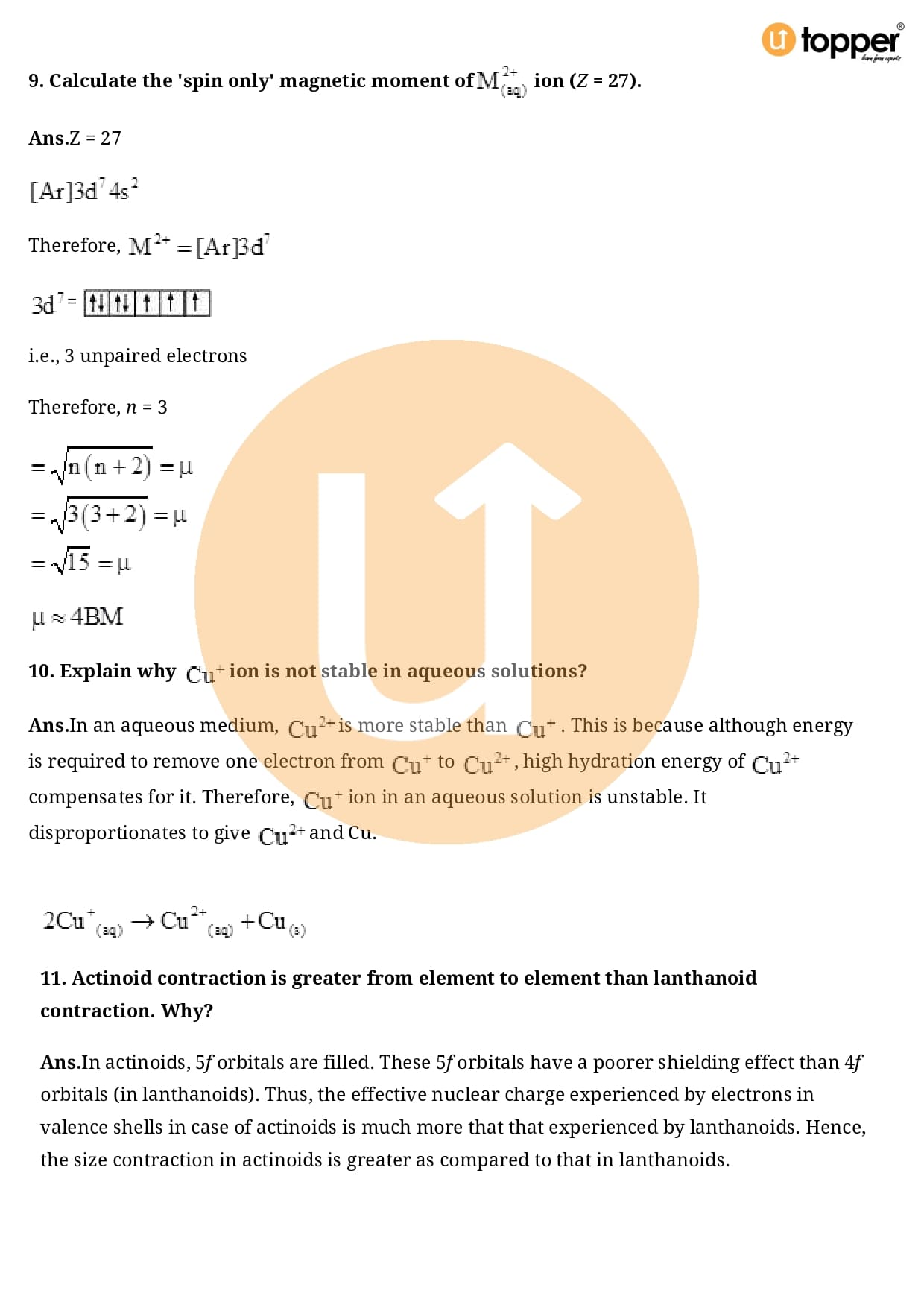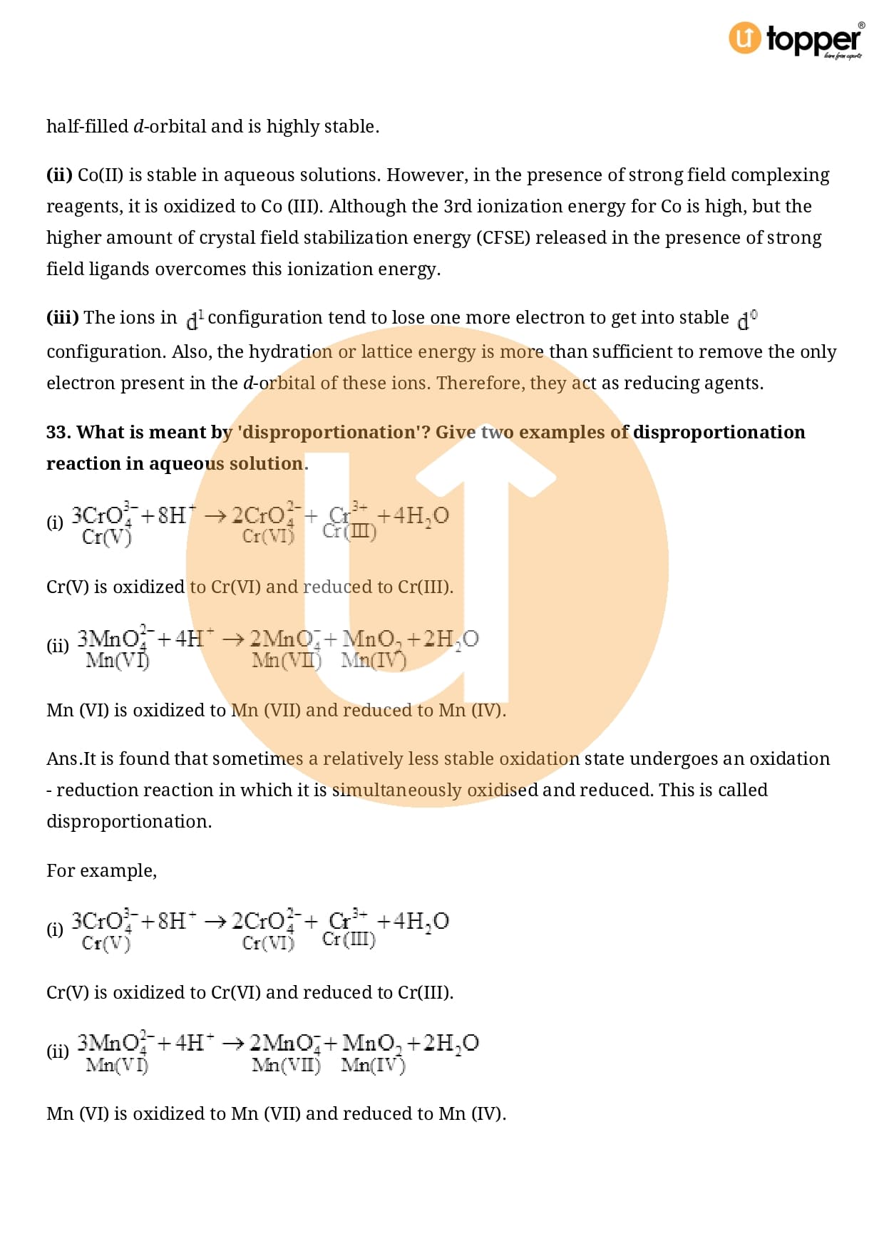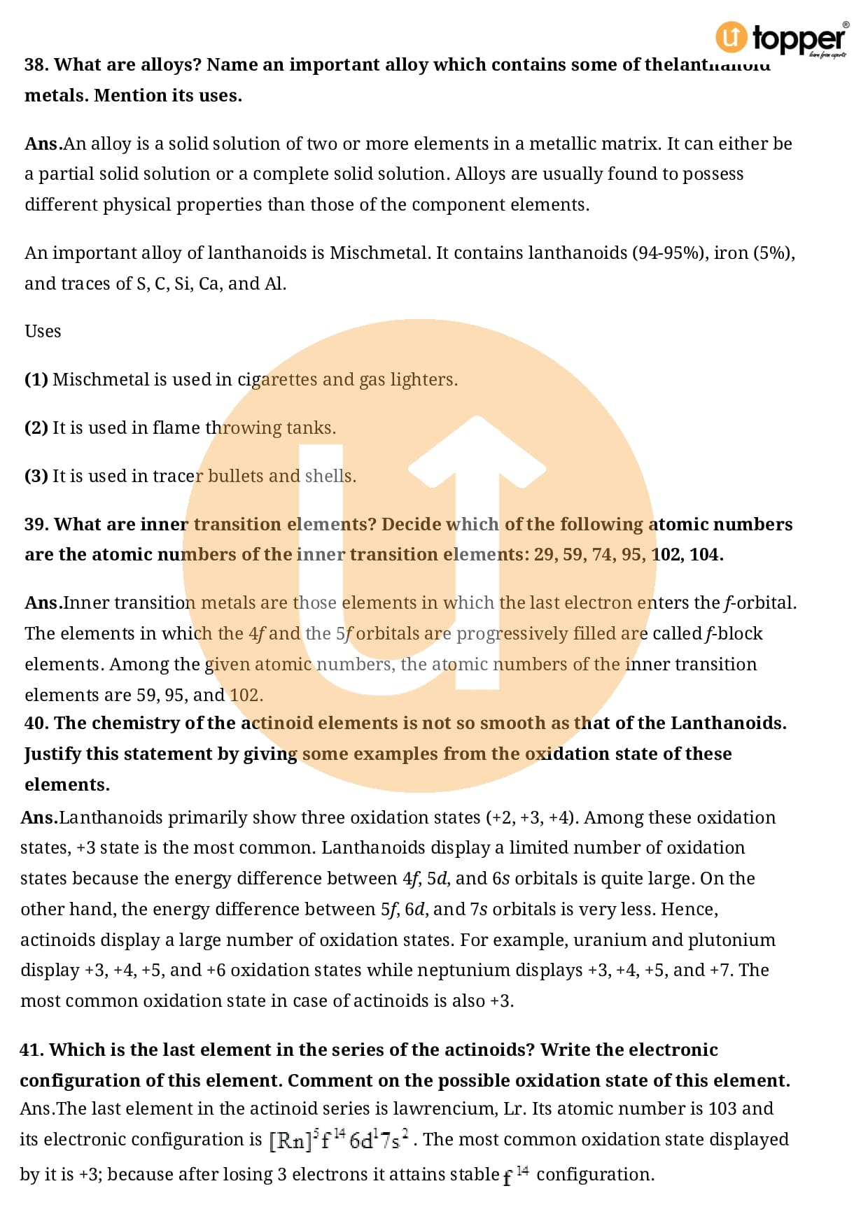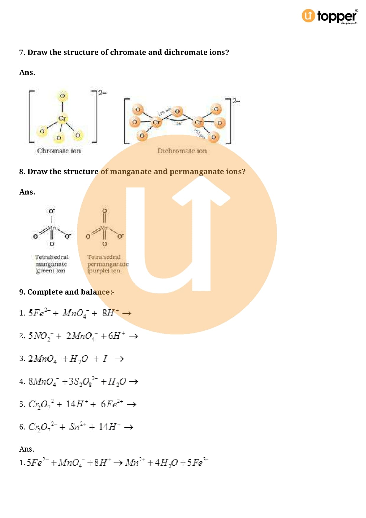 Class 12 Chemistry Important Question CBSE Chapter 8 – The d and f Block Elements