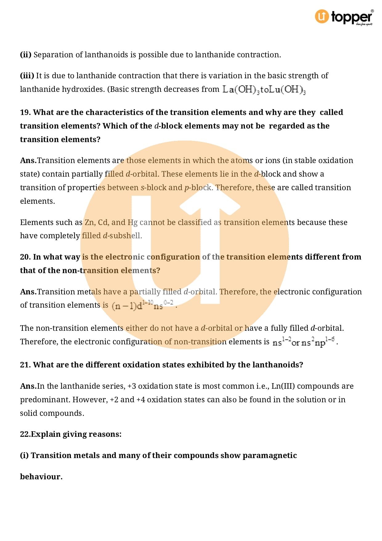 Chapter 8 – The d and f Block Elements