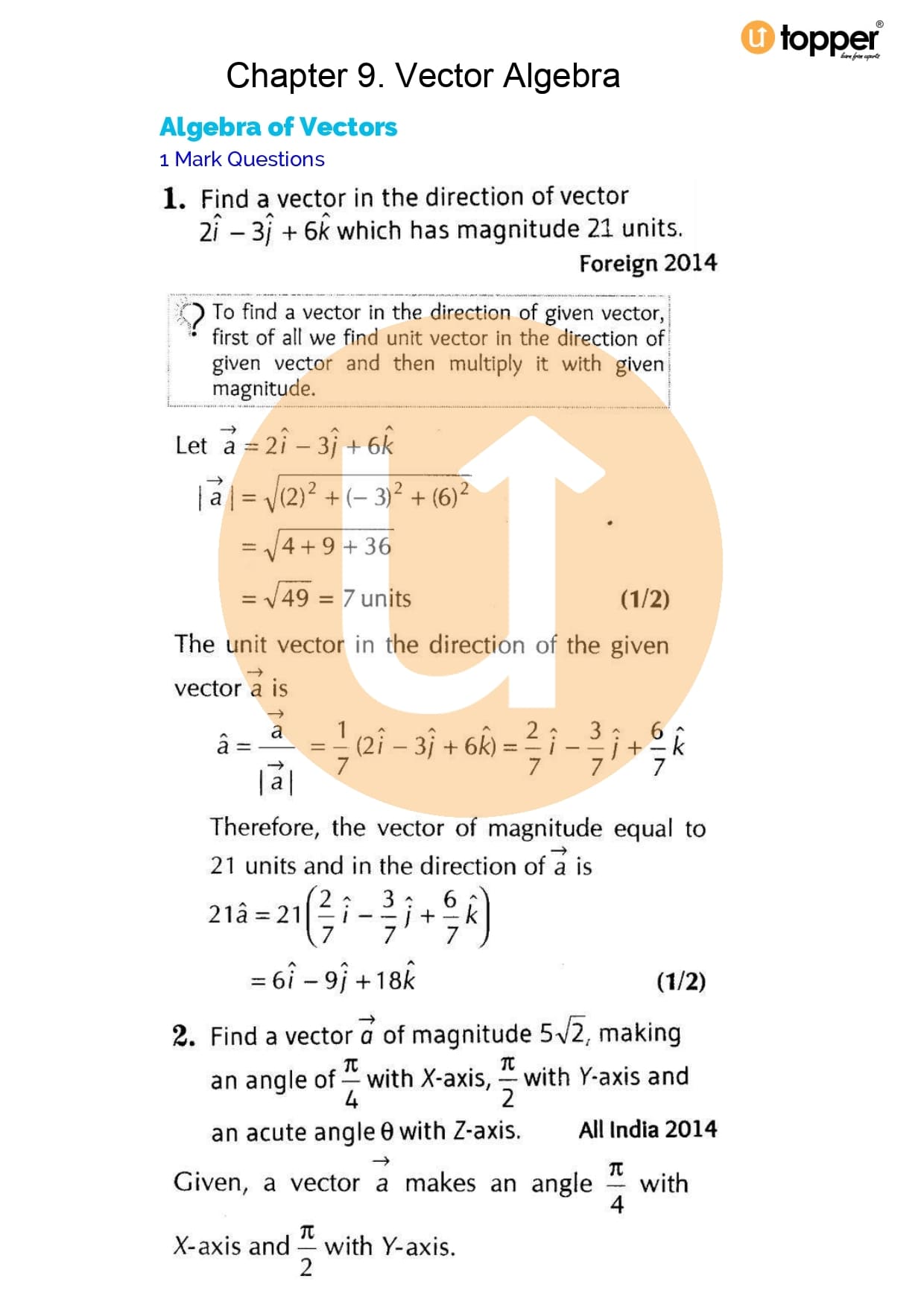 Chapter 9 – Vector Algebra