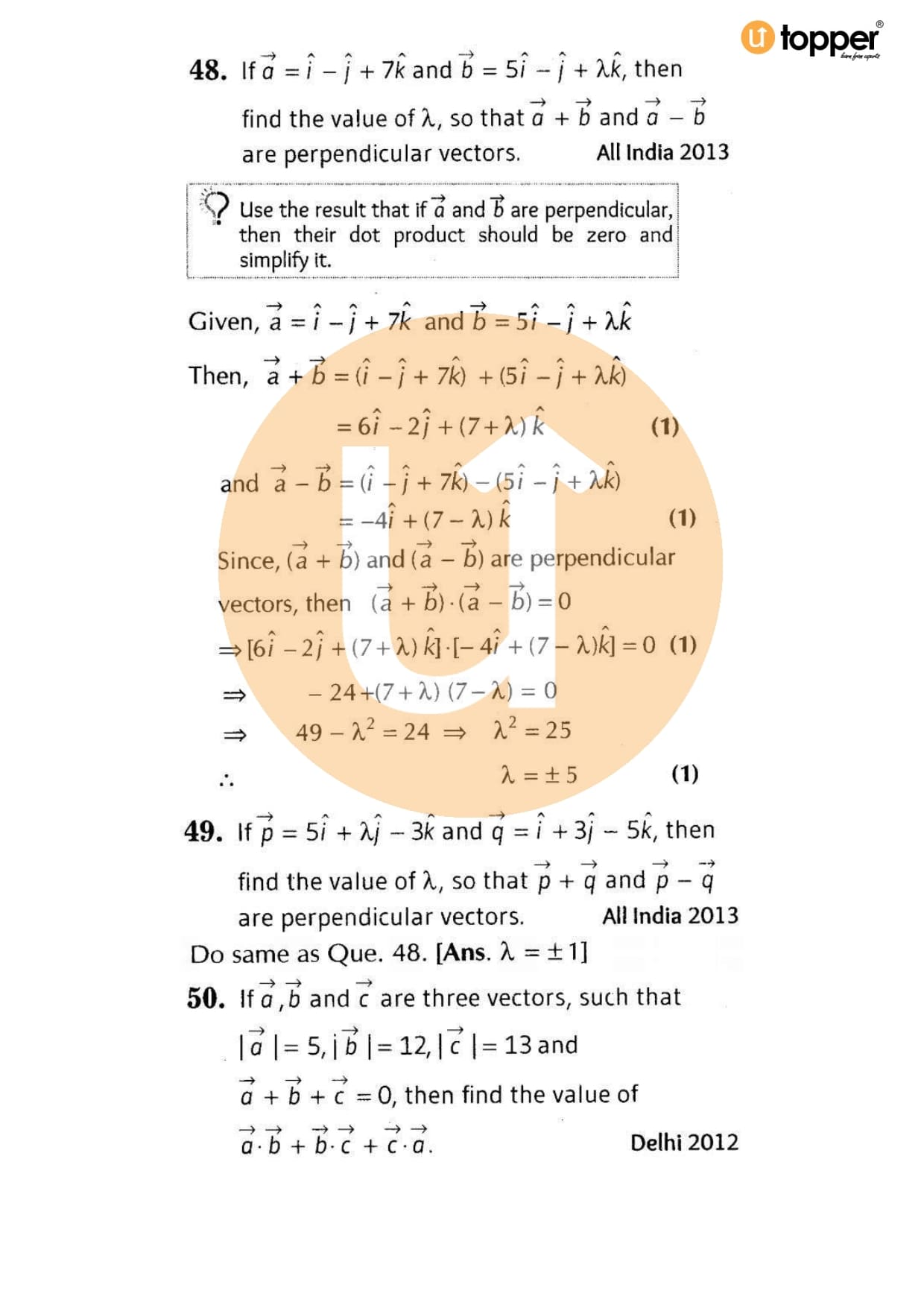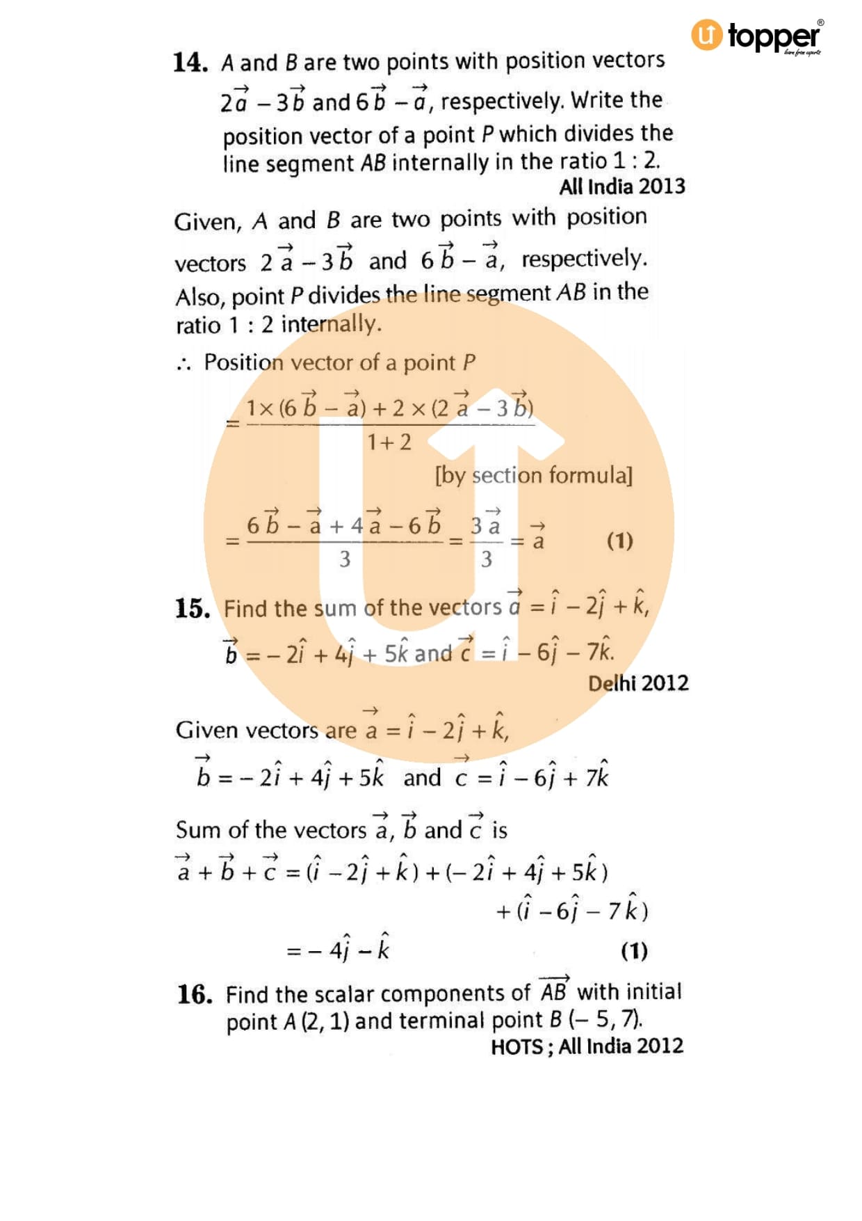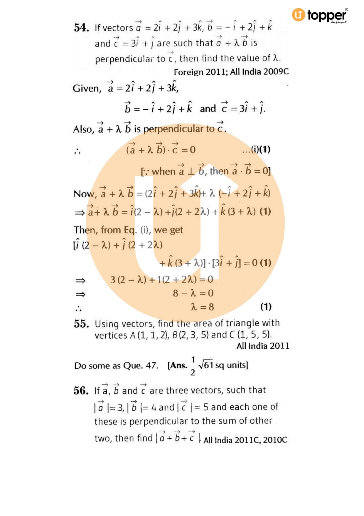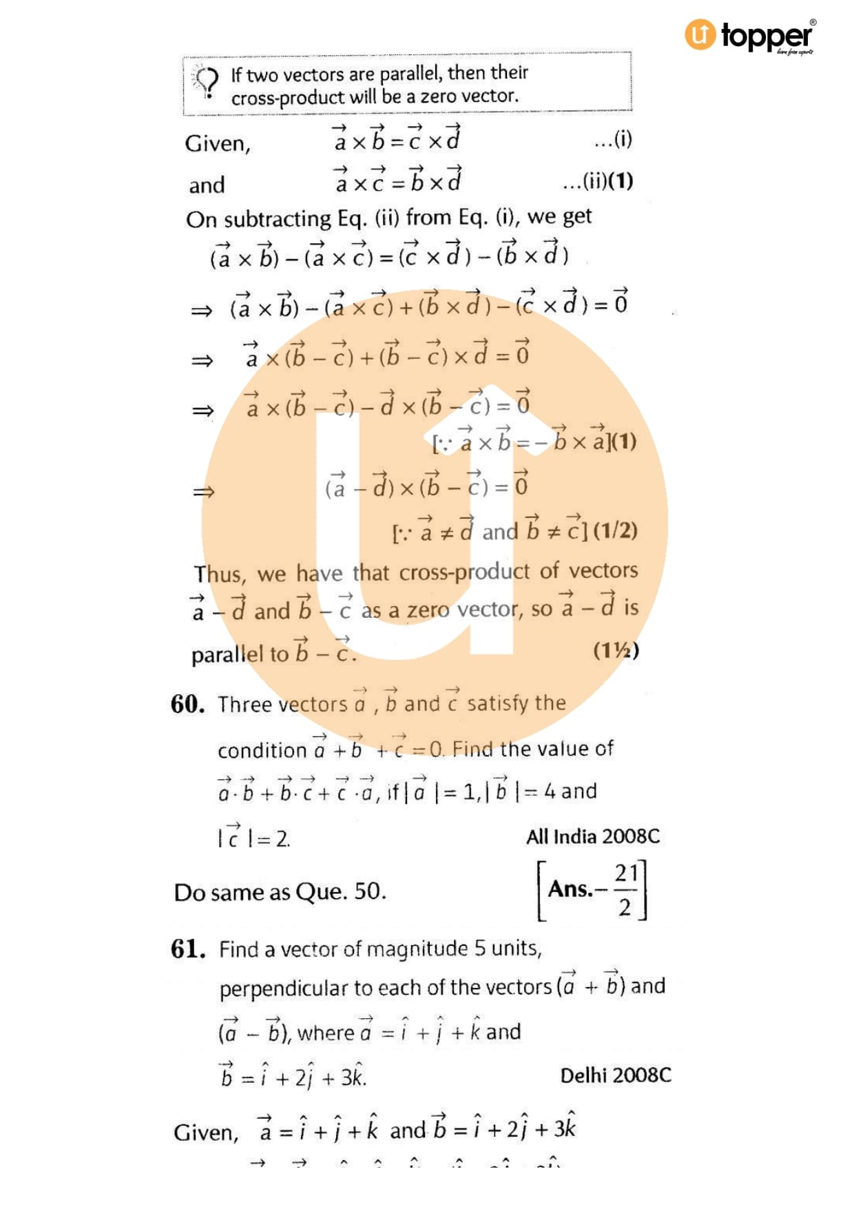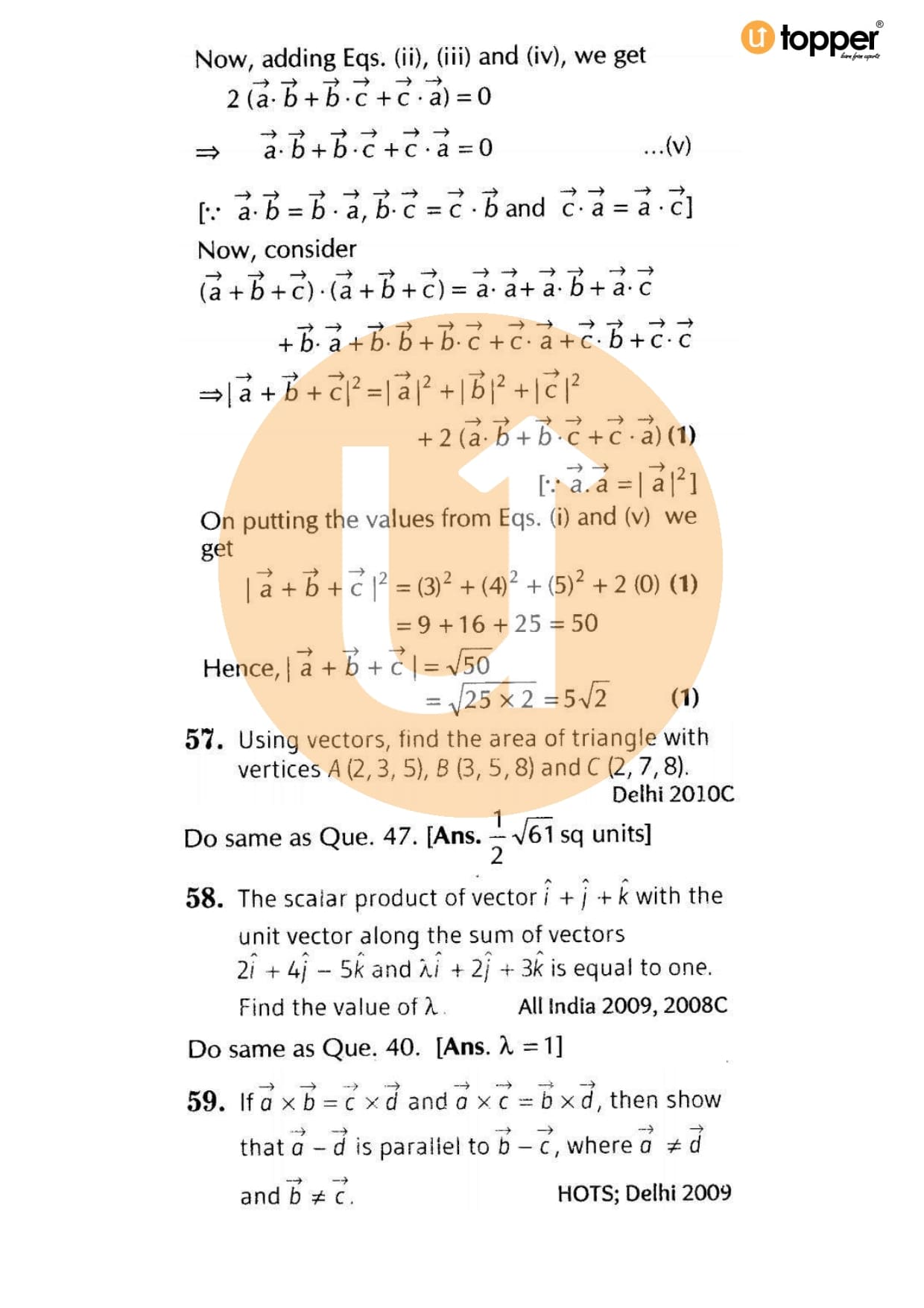 Class 12 Maths Important Question CBSE Chapter 9 – Vector Algebra