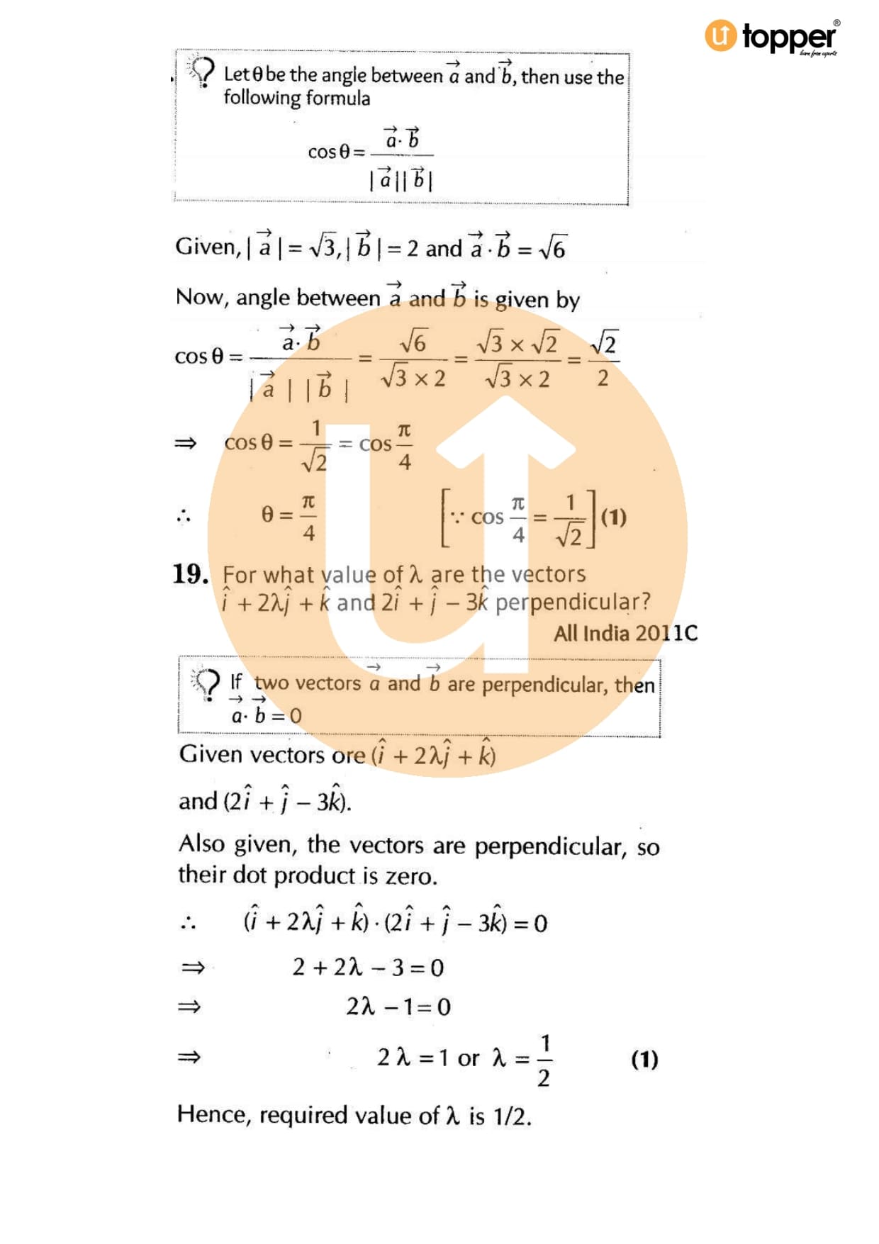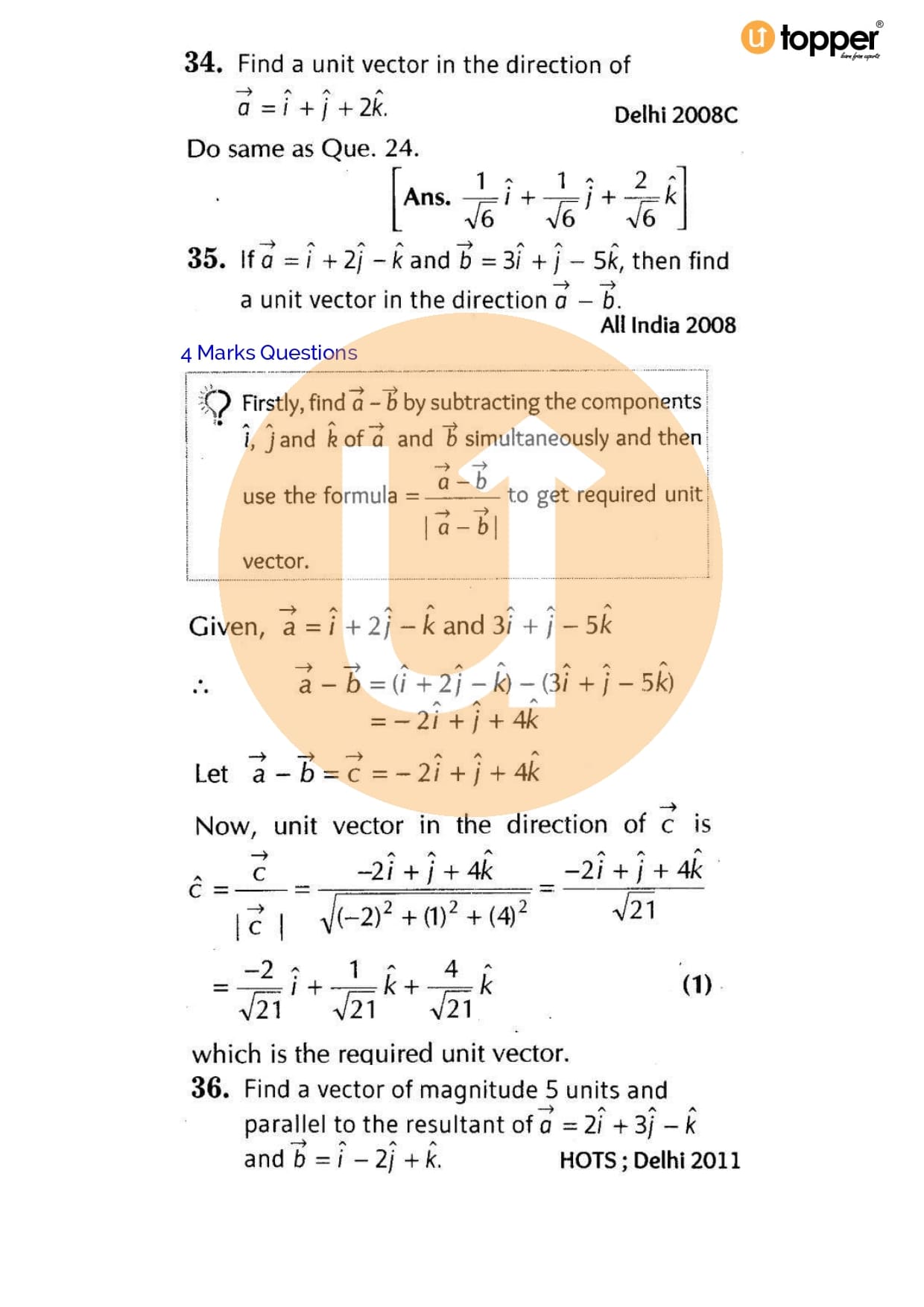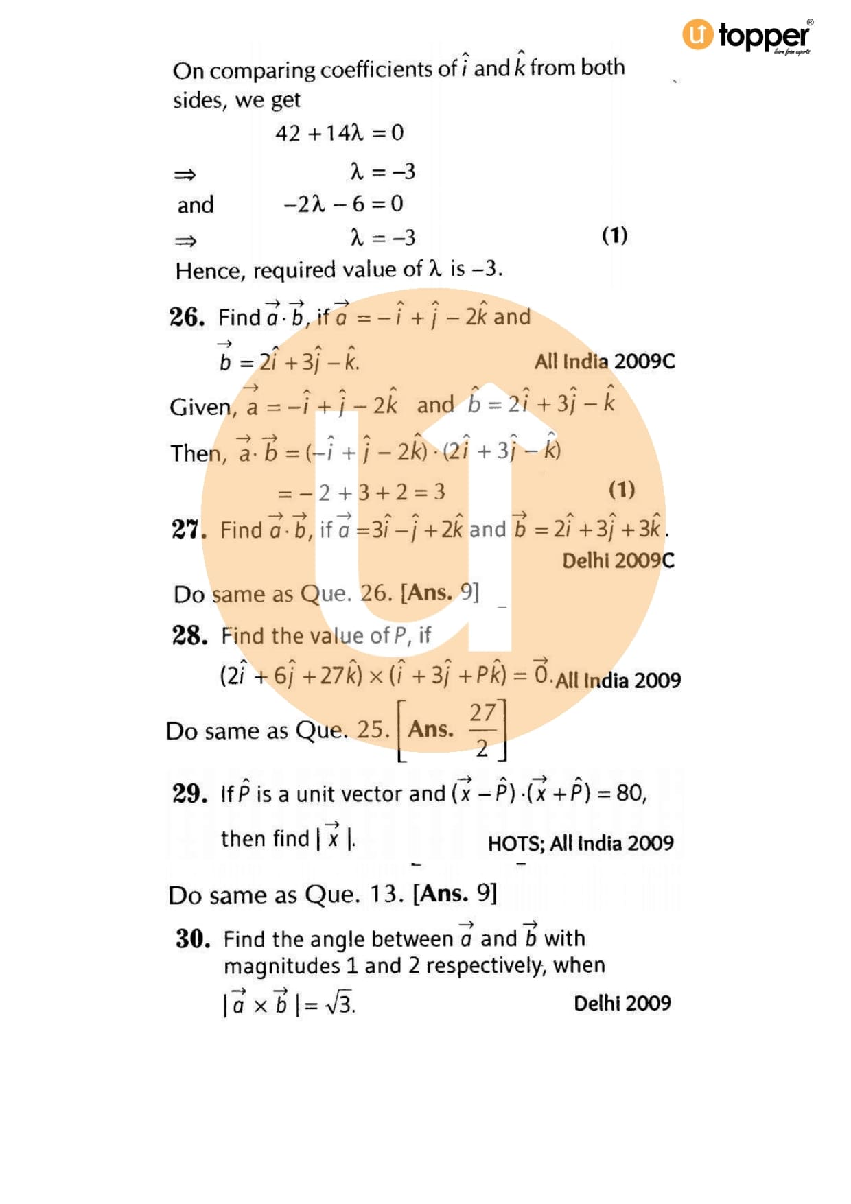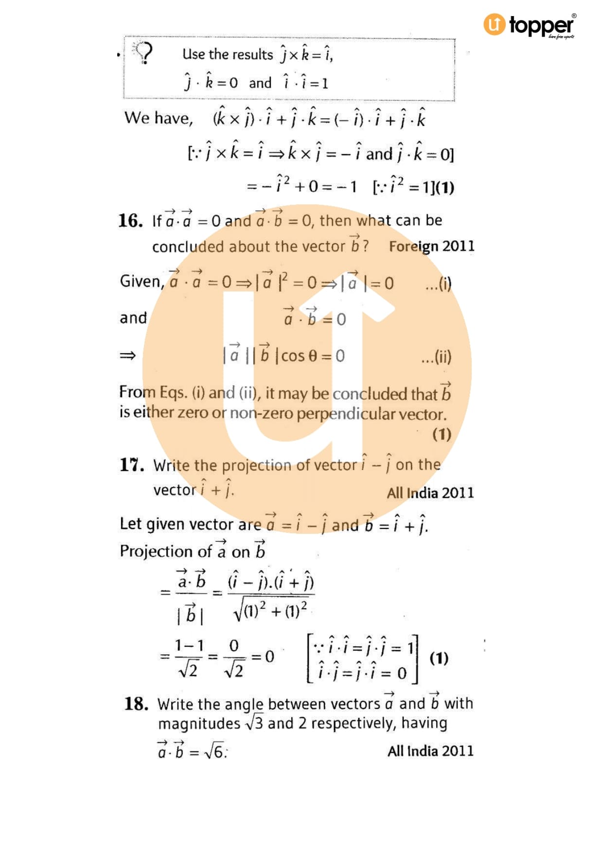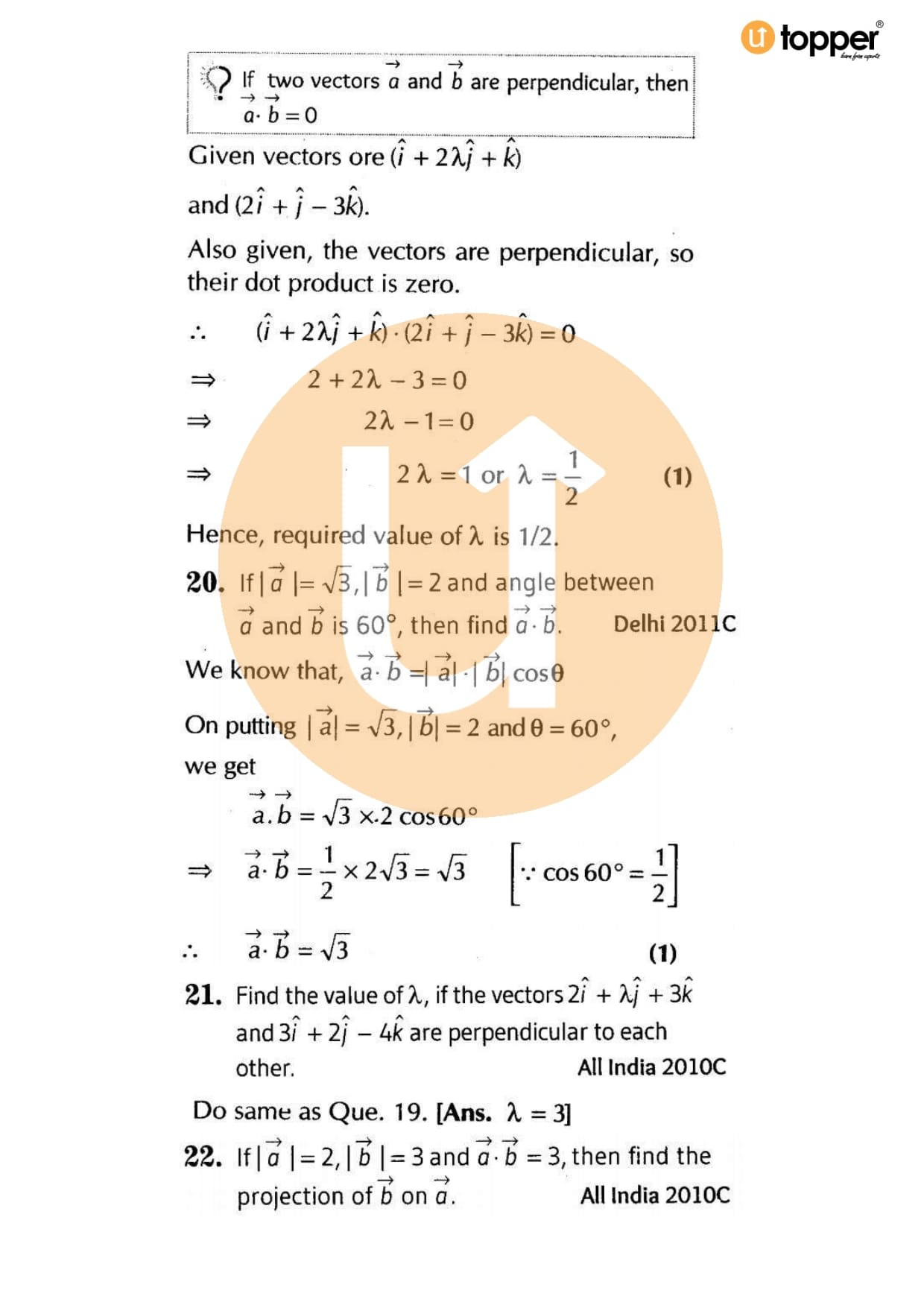 Class 12 Maths Important Question CBSE Chapter 9 – Vector Algebra