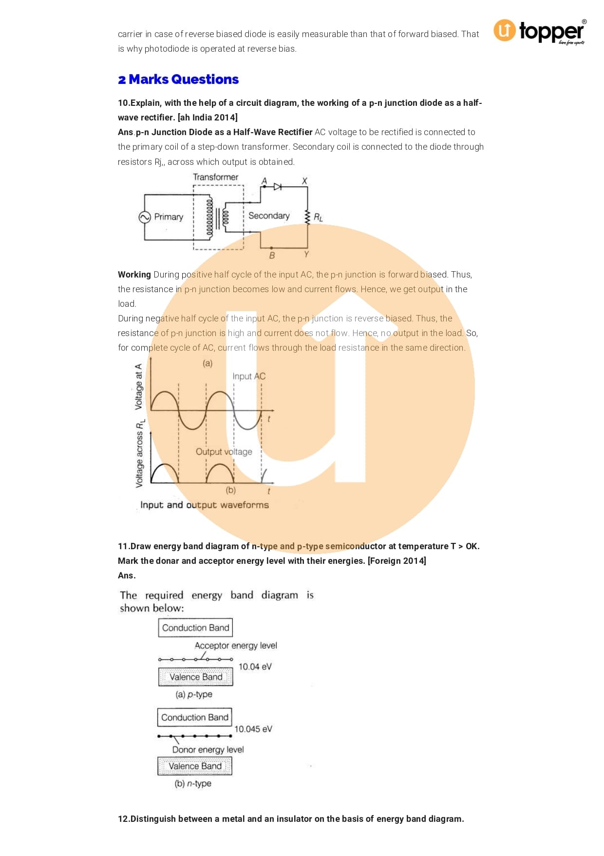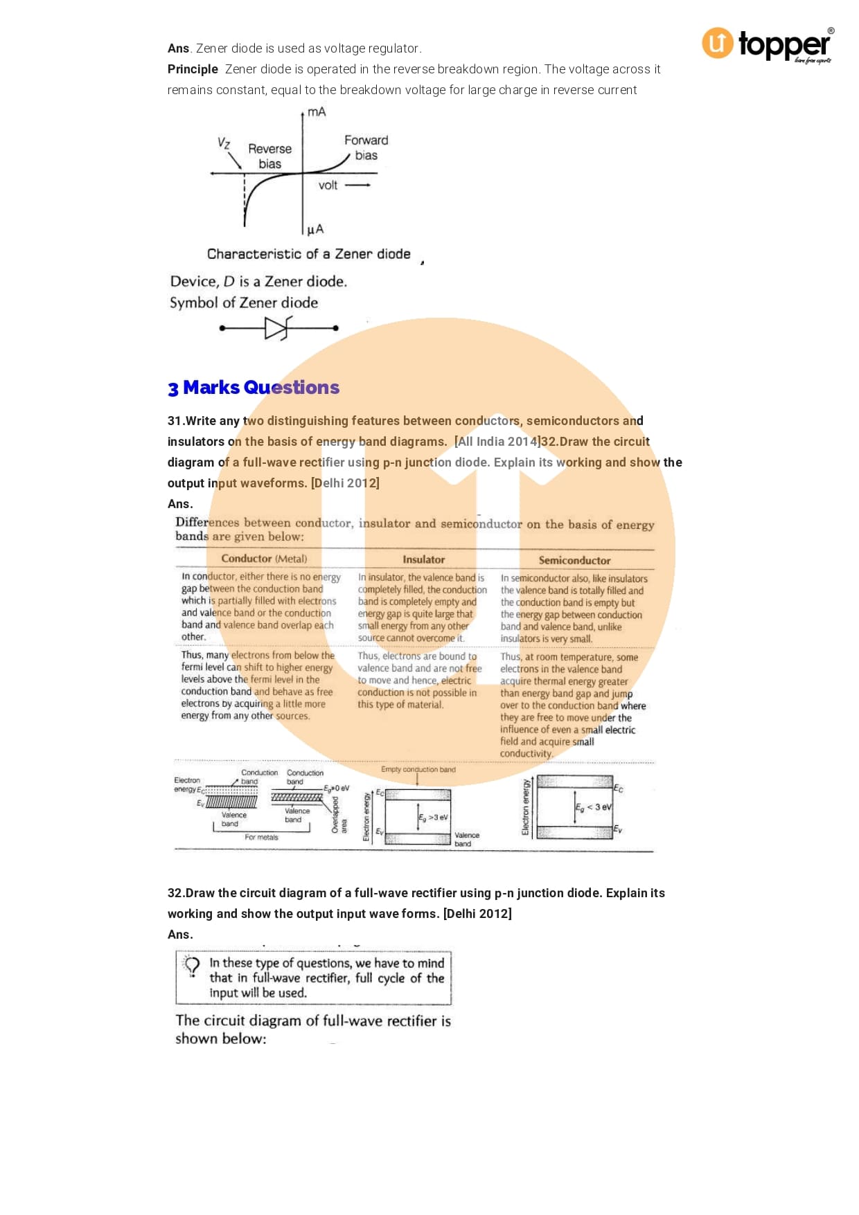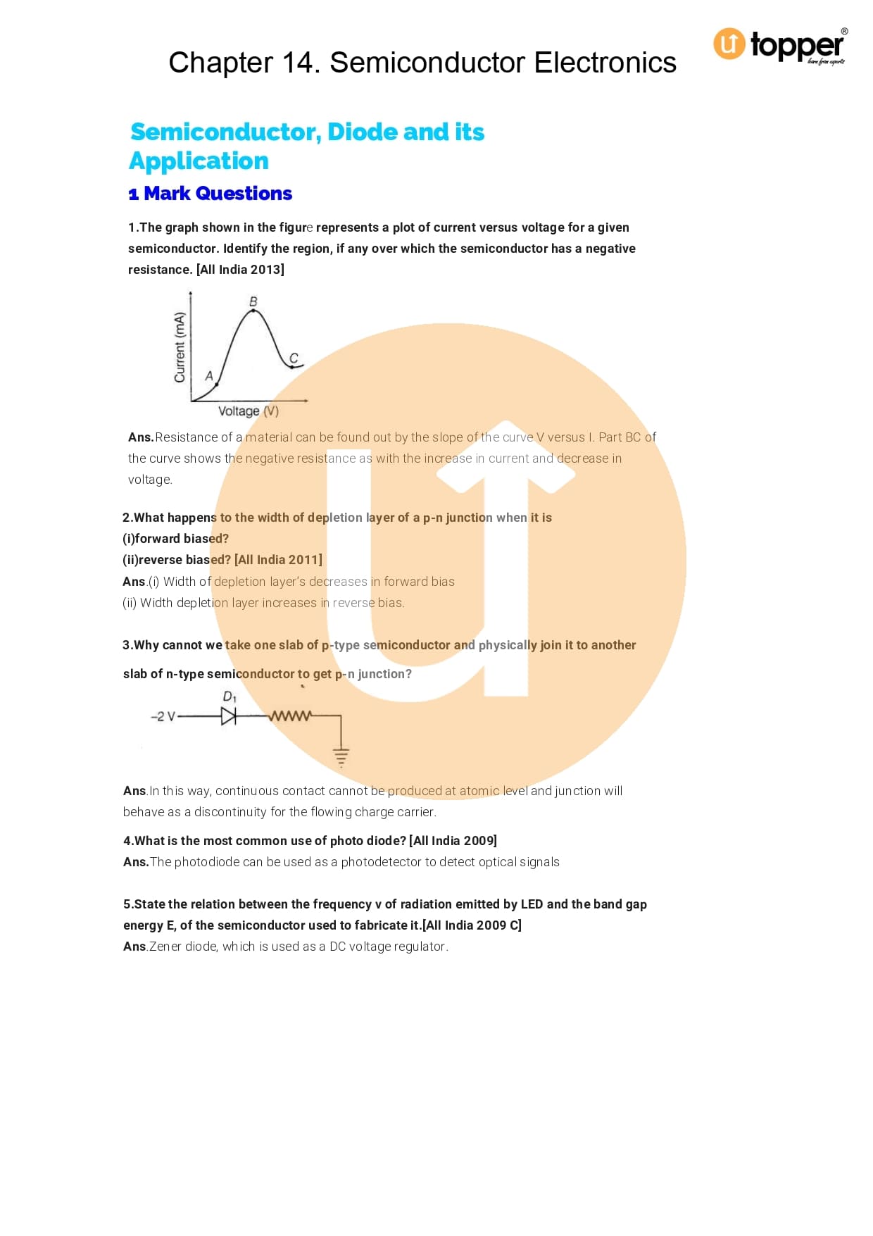 Class 12 Physics Important Question CBSE Chapter 14 – Semiconductor Electronic: Material, Devices And Simple Circuits