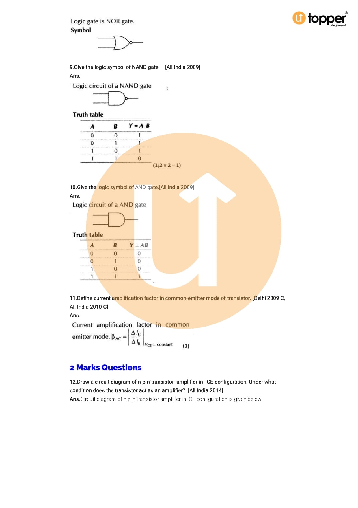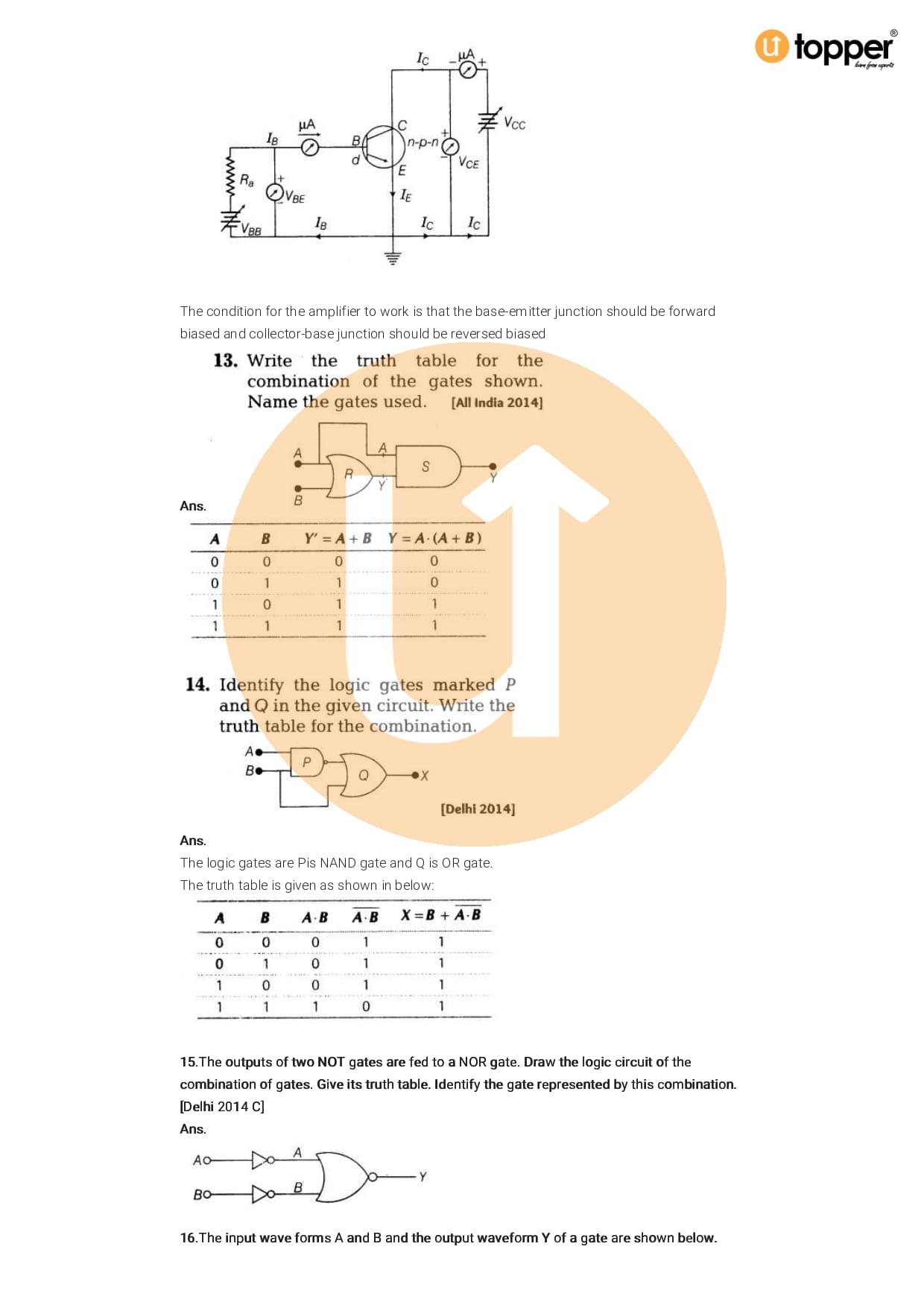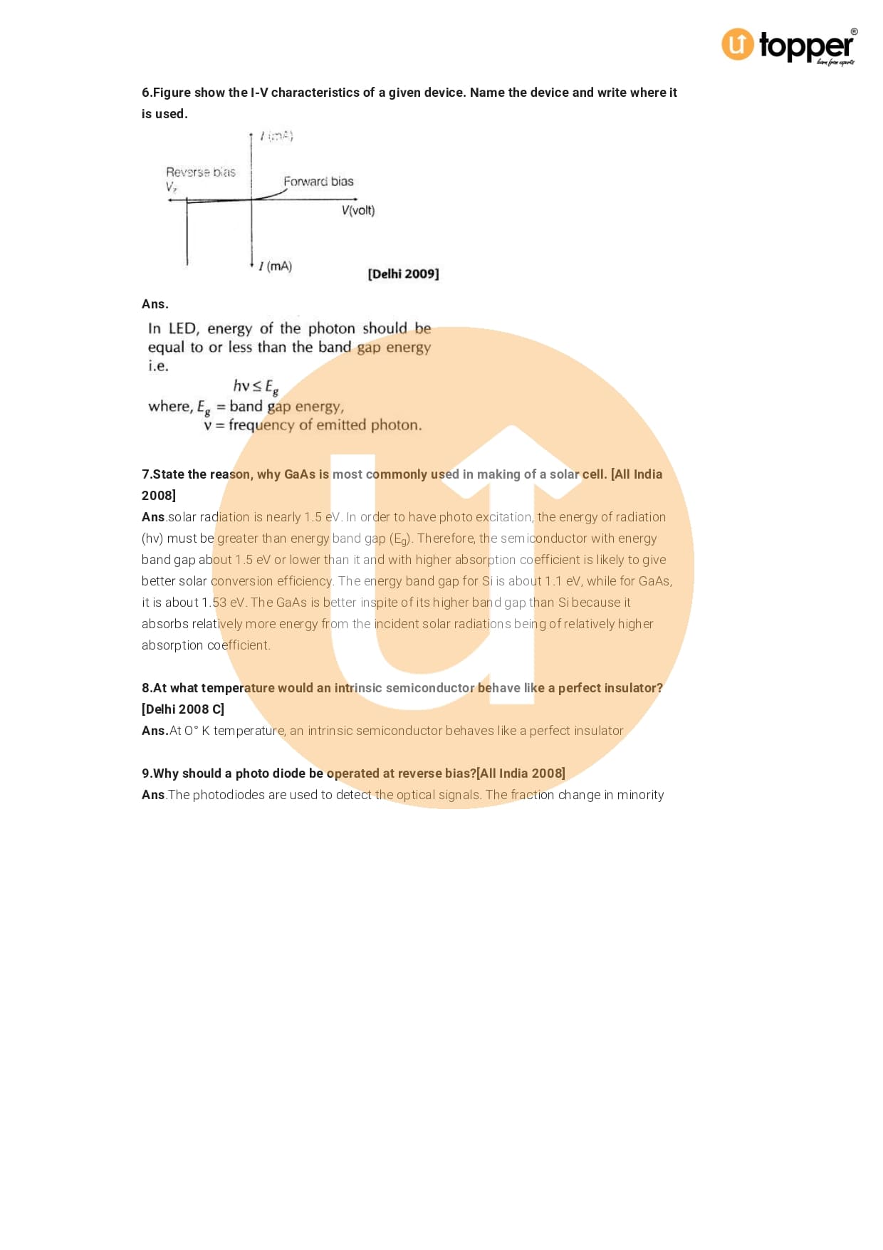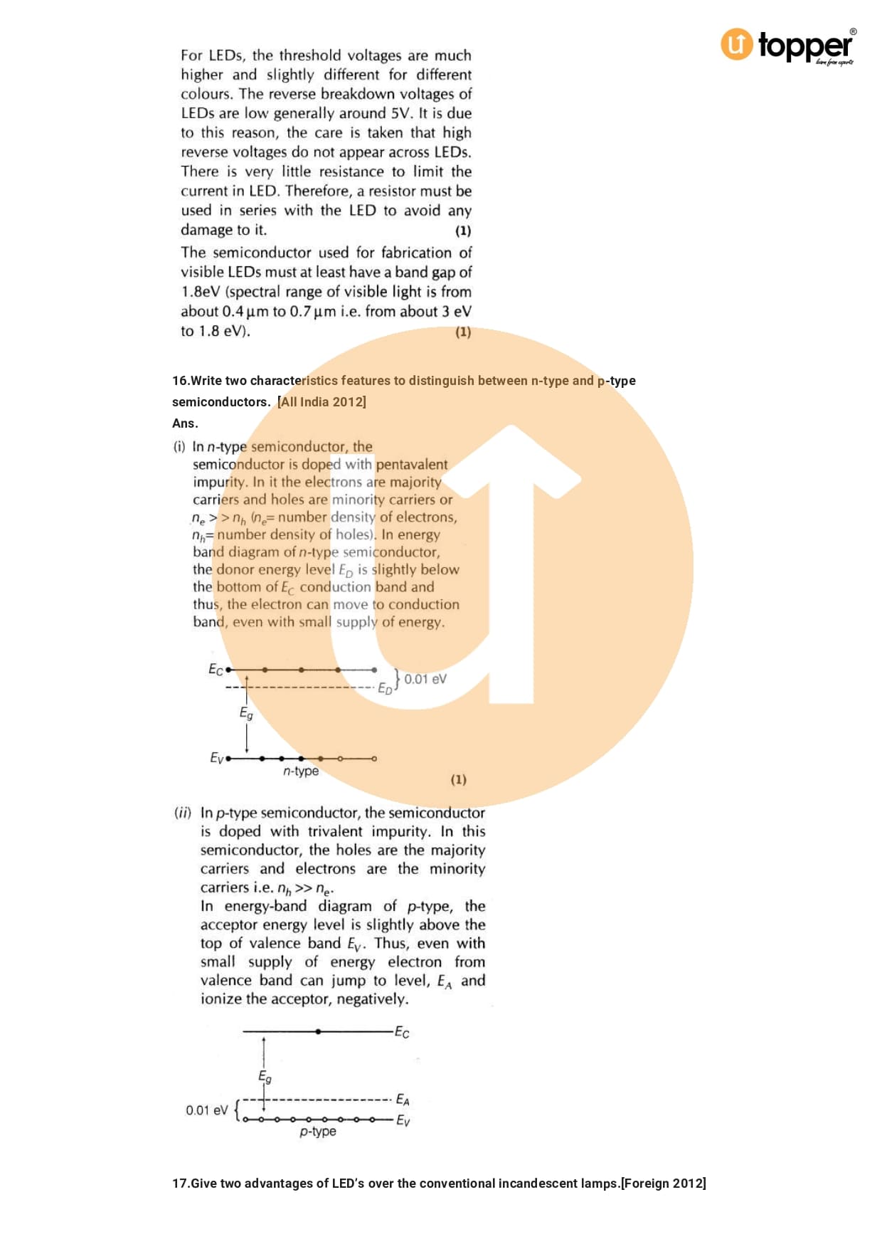 Class 12 Physics Important Question CBSE Chapter 14 – Semiconductor Electronic: Material, Devices And Simple Circuits