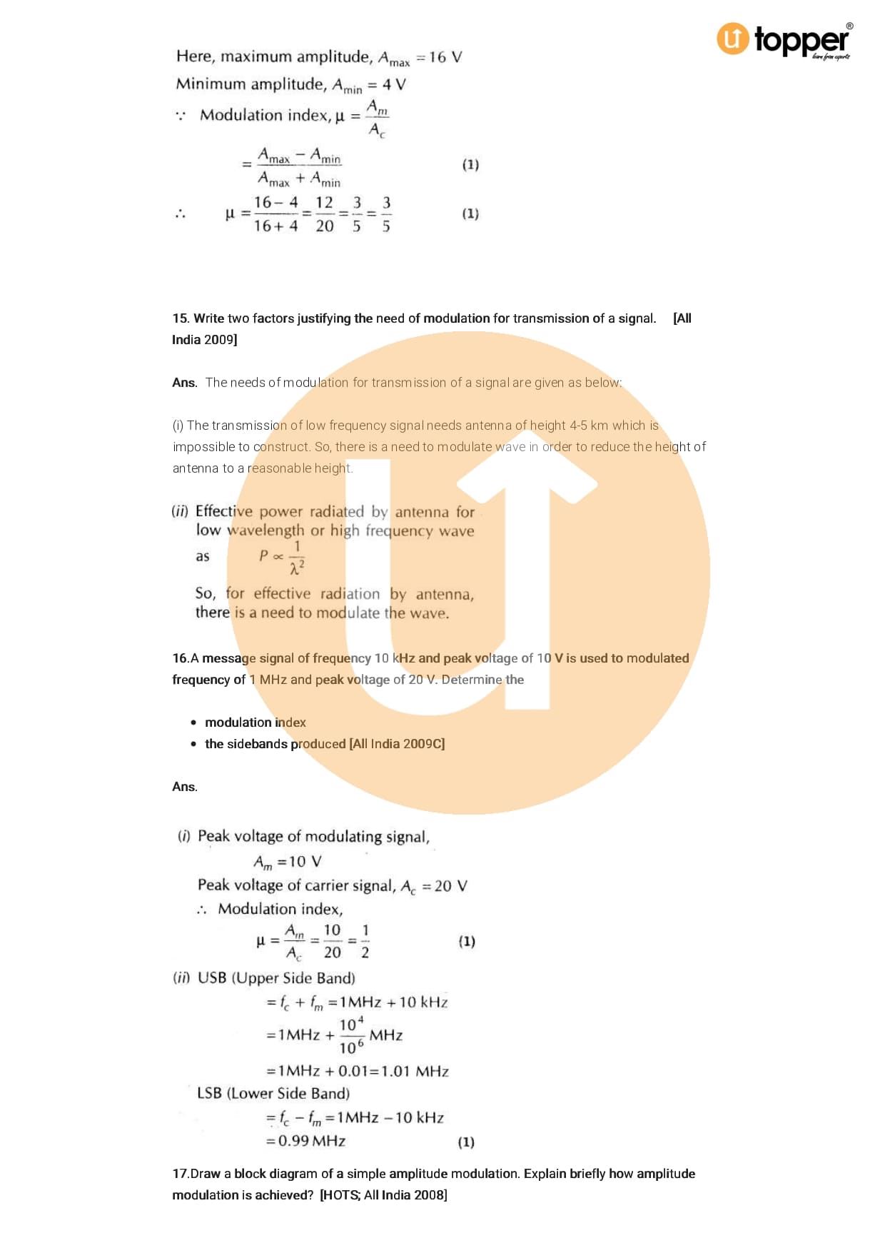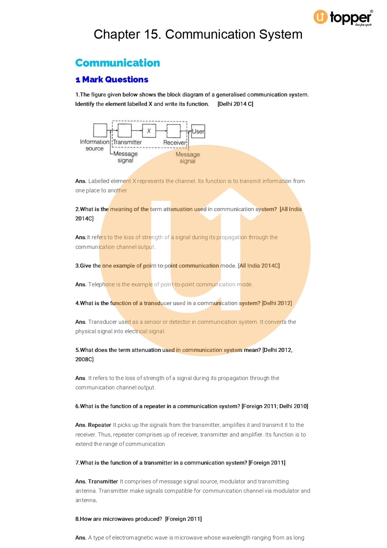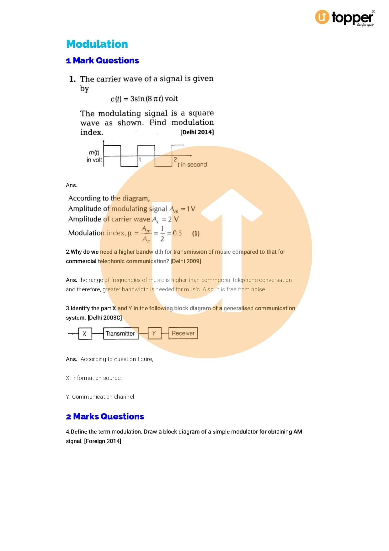Class 12 Physics Important Question CBSE Chapter 15 – Communication Systems