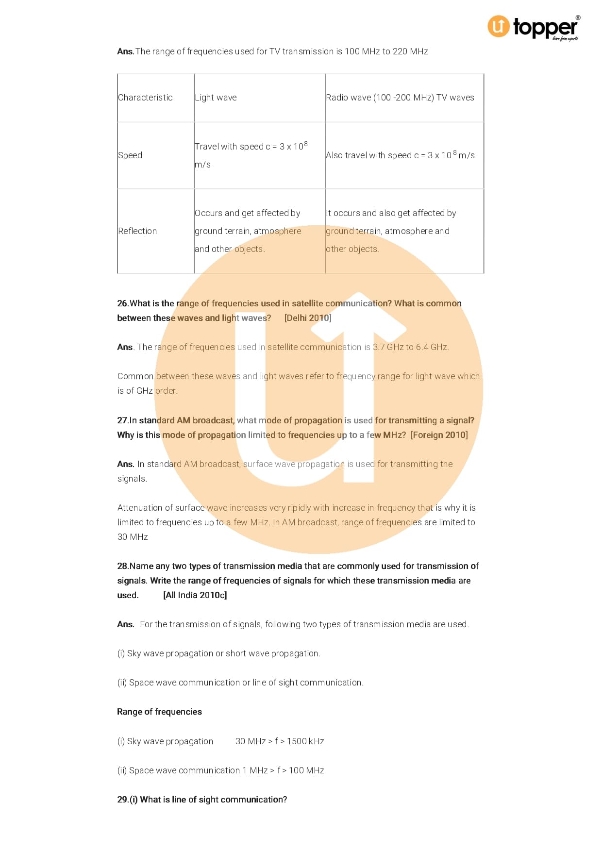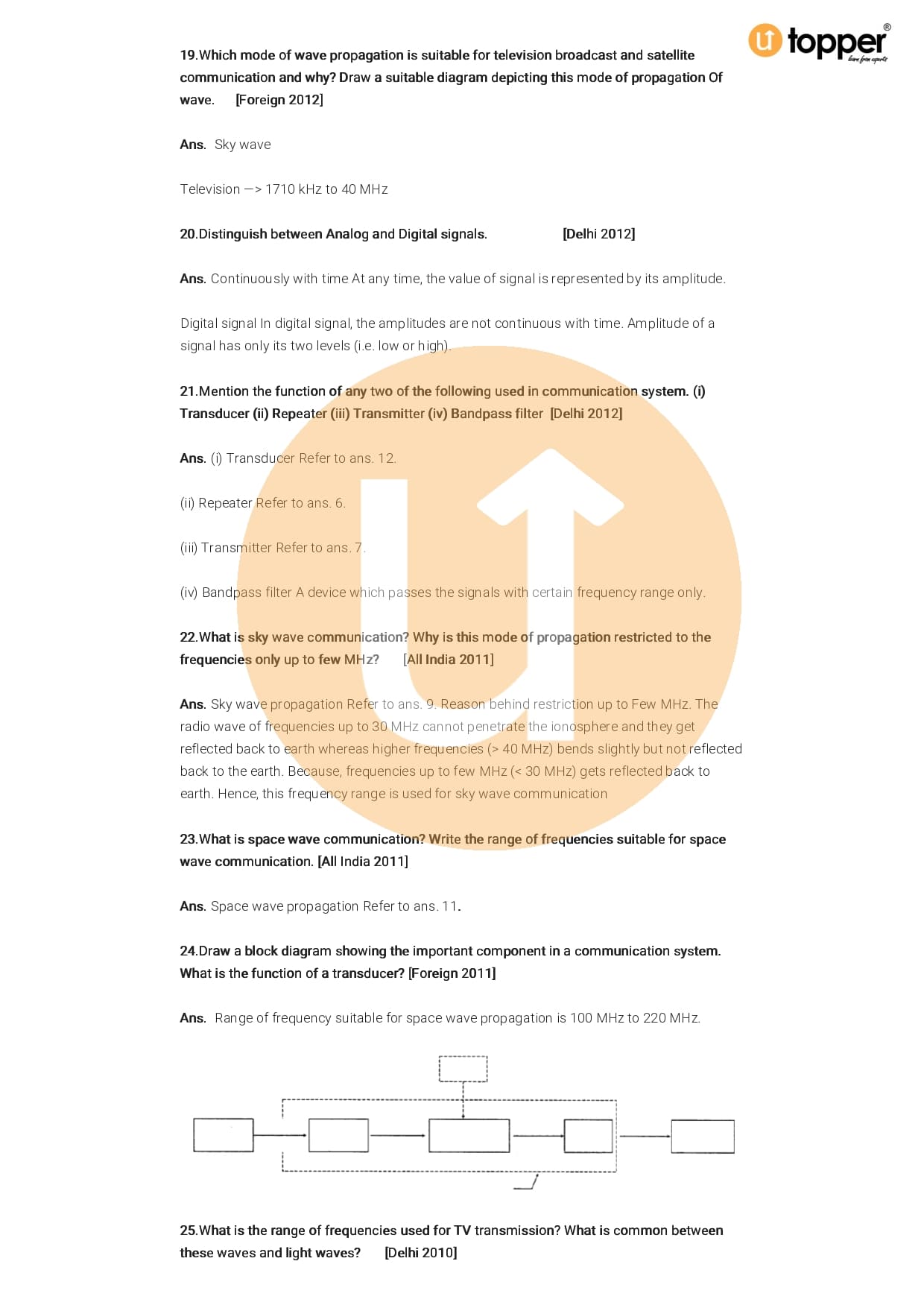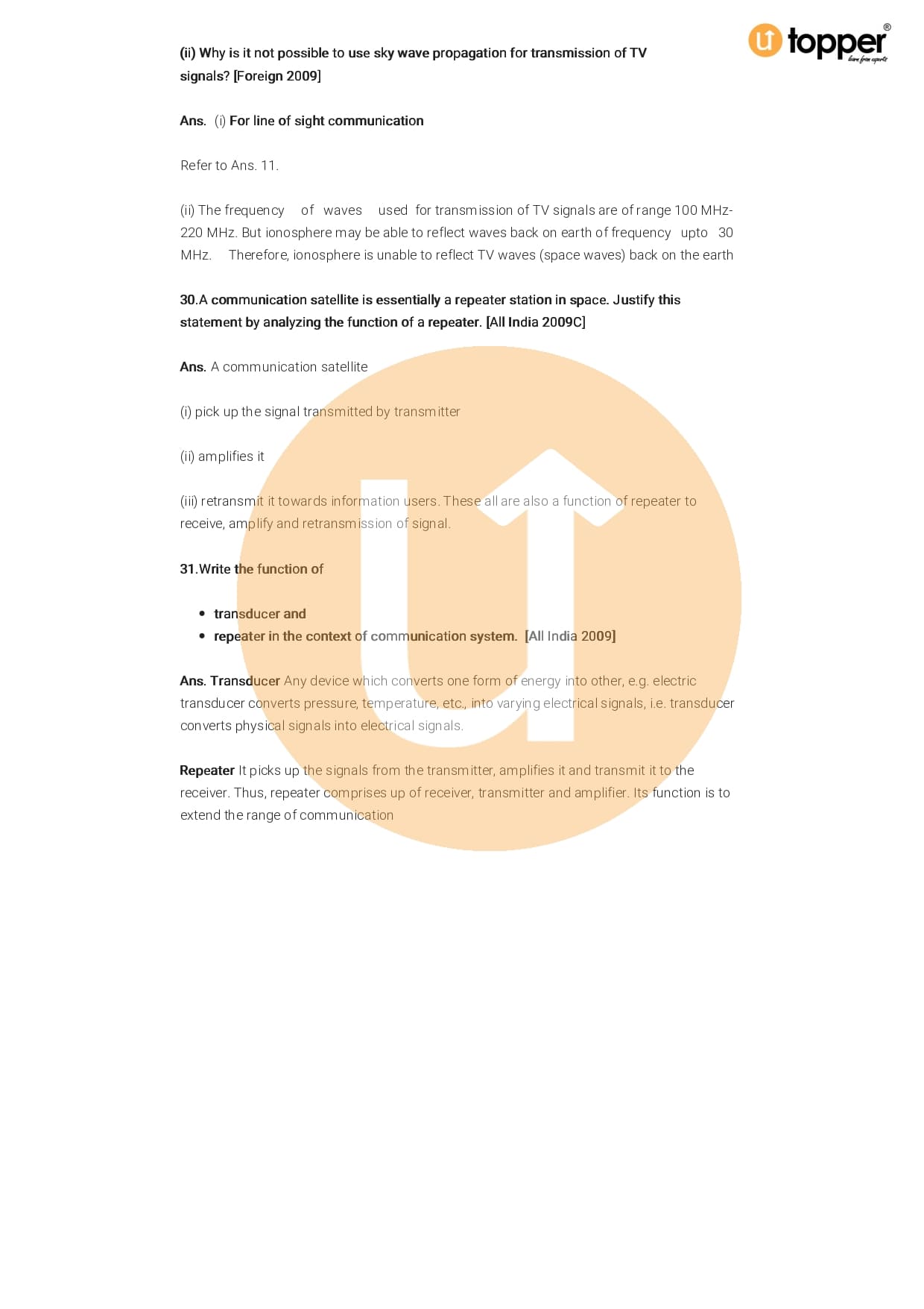 Class 12 Physics Important Question CBSE Chapter 15 – Communication Systems