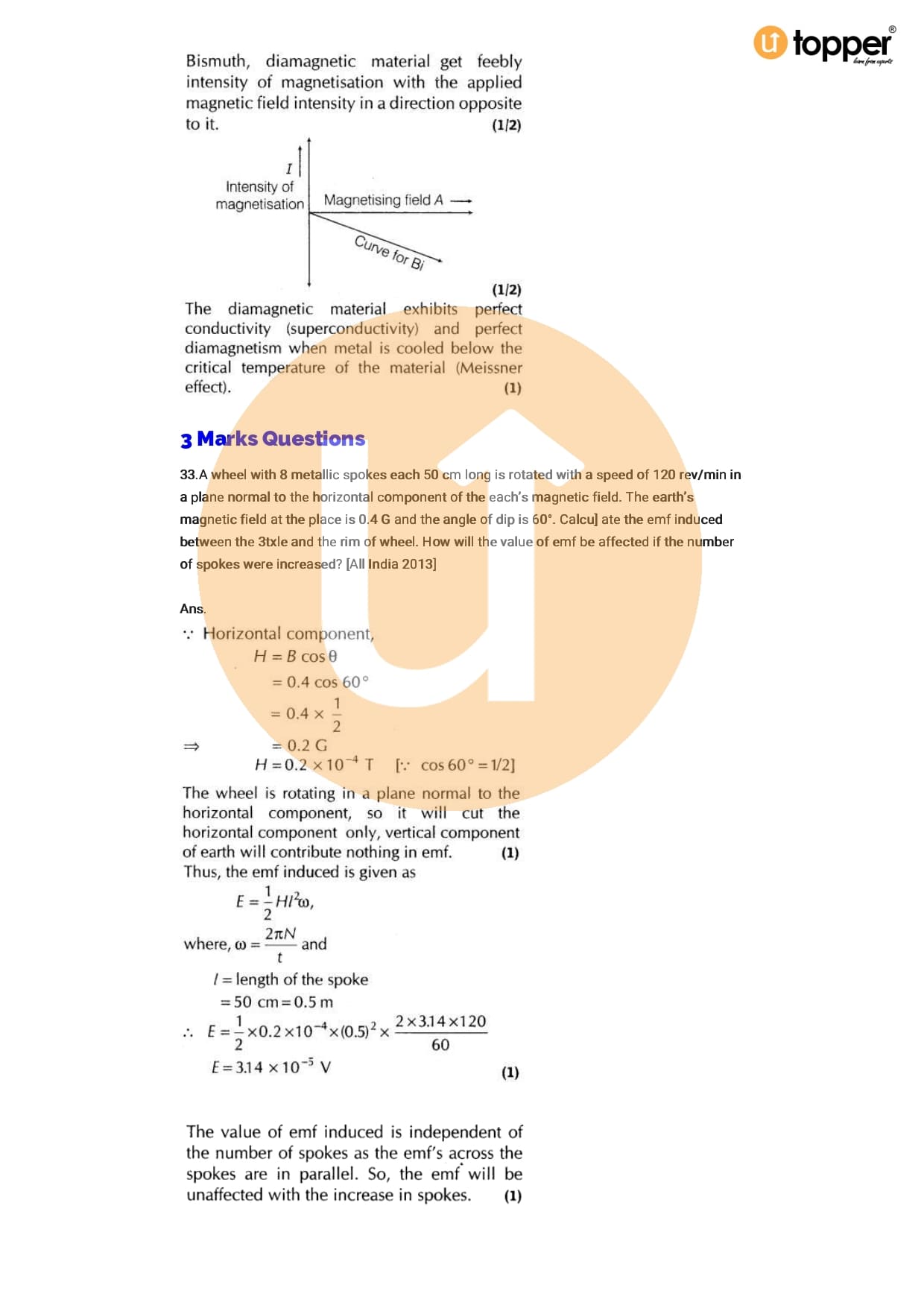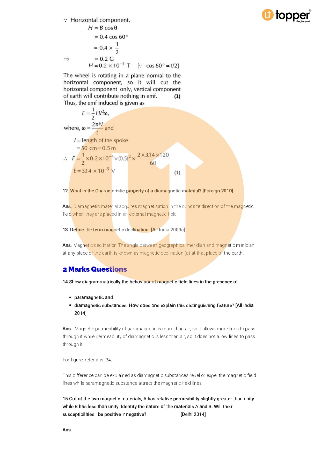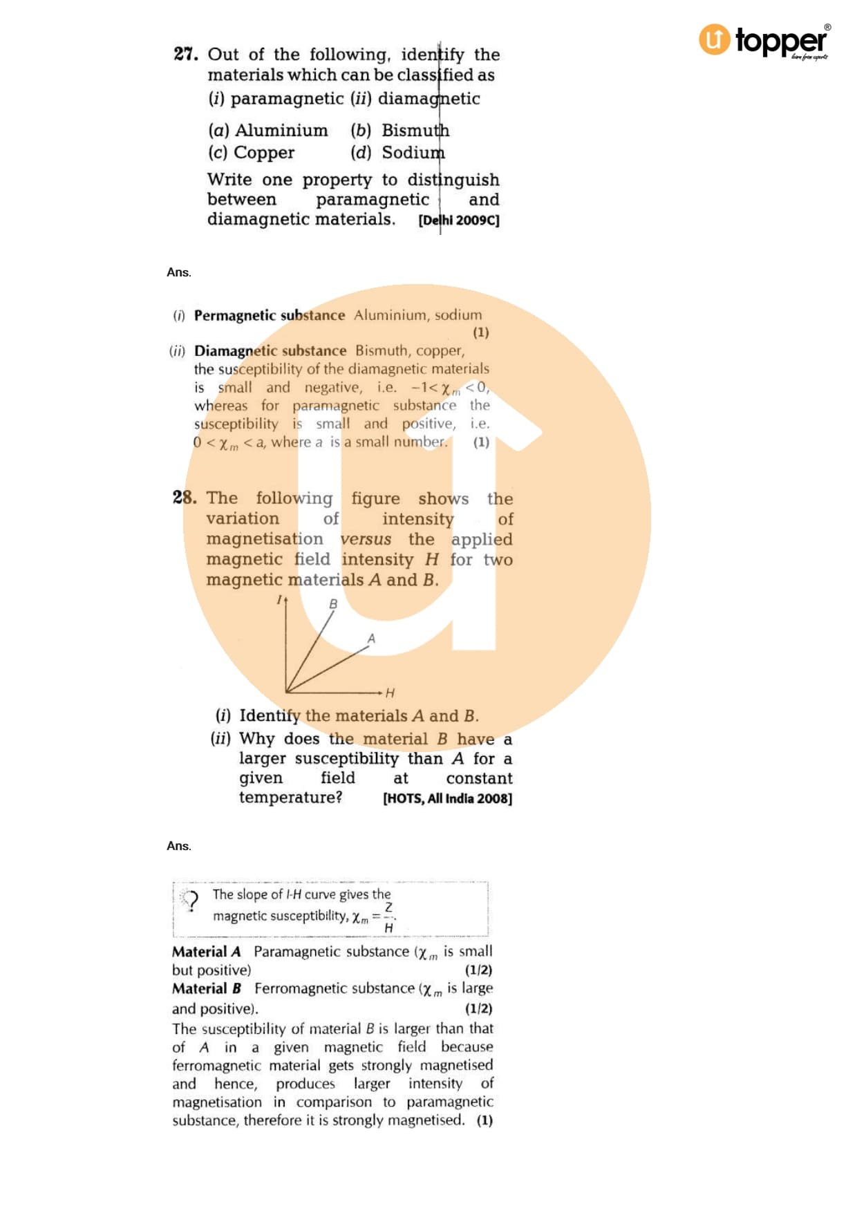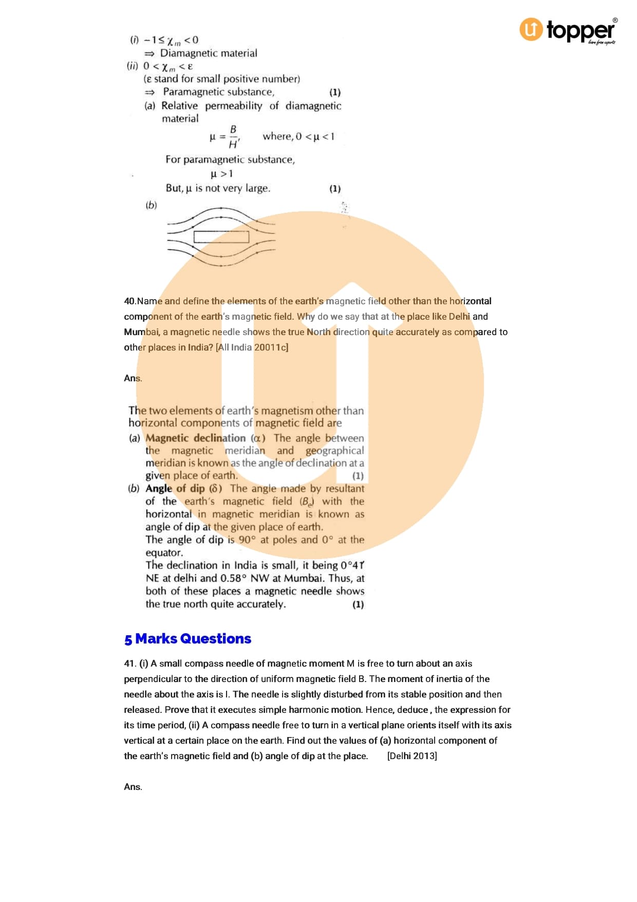 Class 12 Physics Important Question CBSE Chapter 5 – Magnetism And Matter