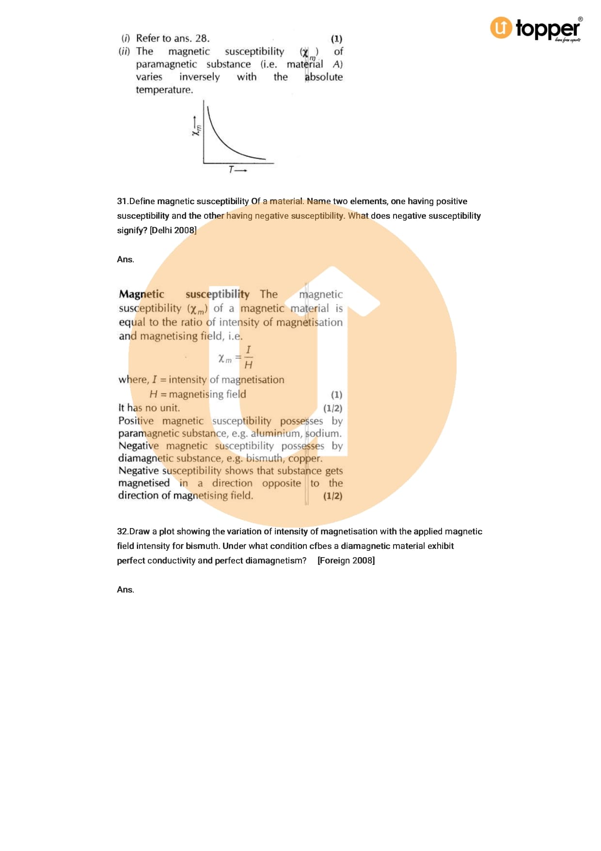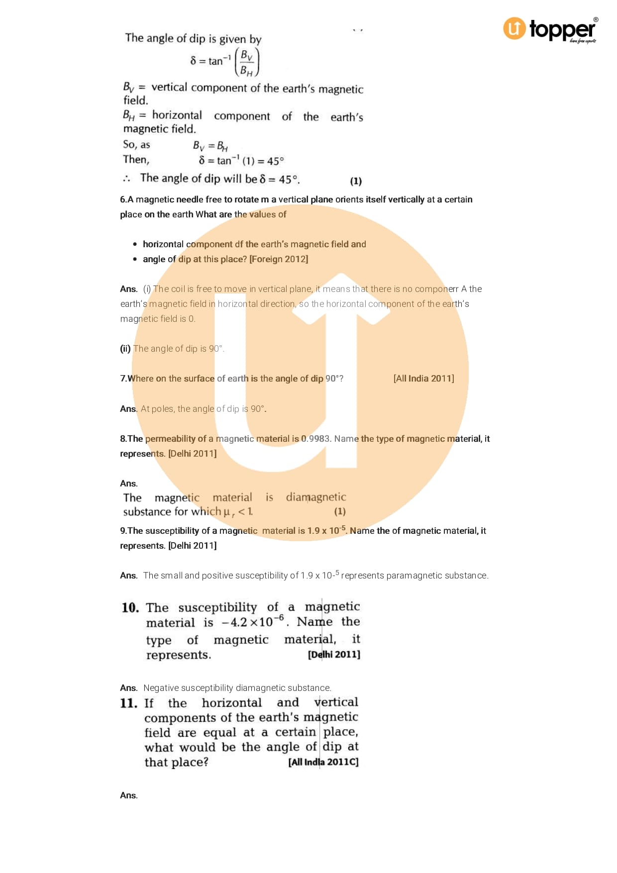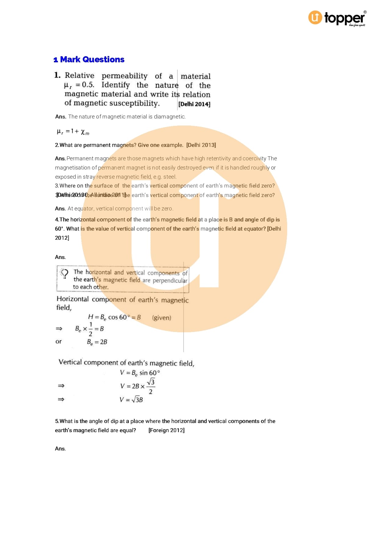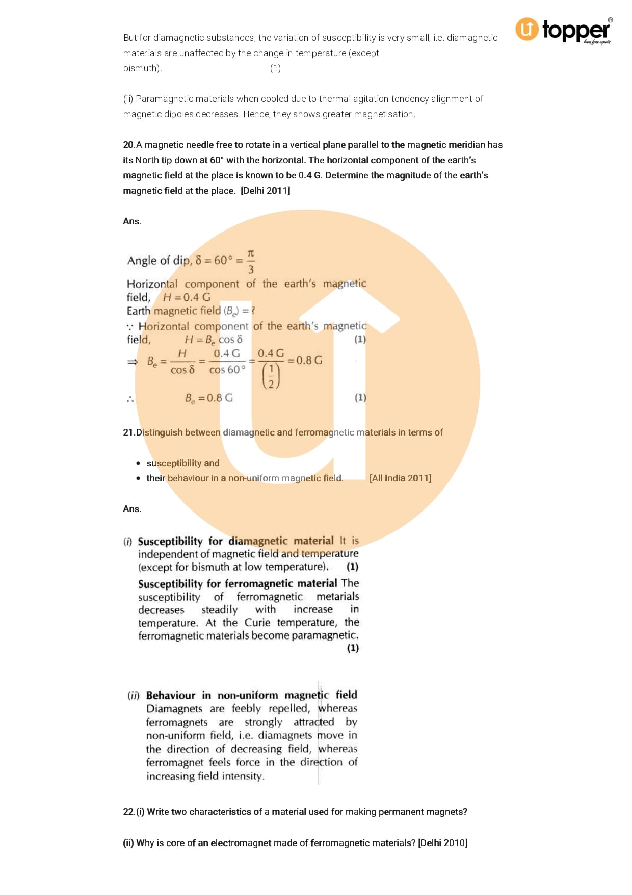 Class 12 Physics Important Question CBSE Chapter 5 – Magnetism And Matter