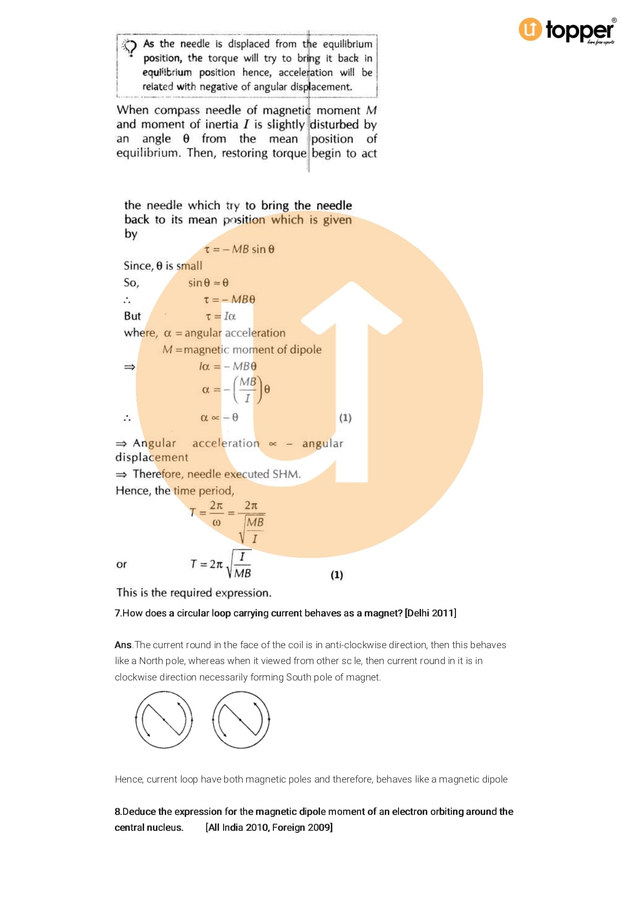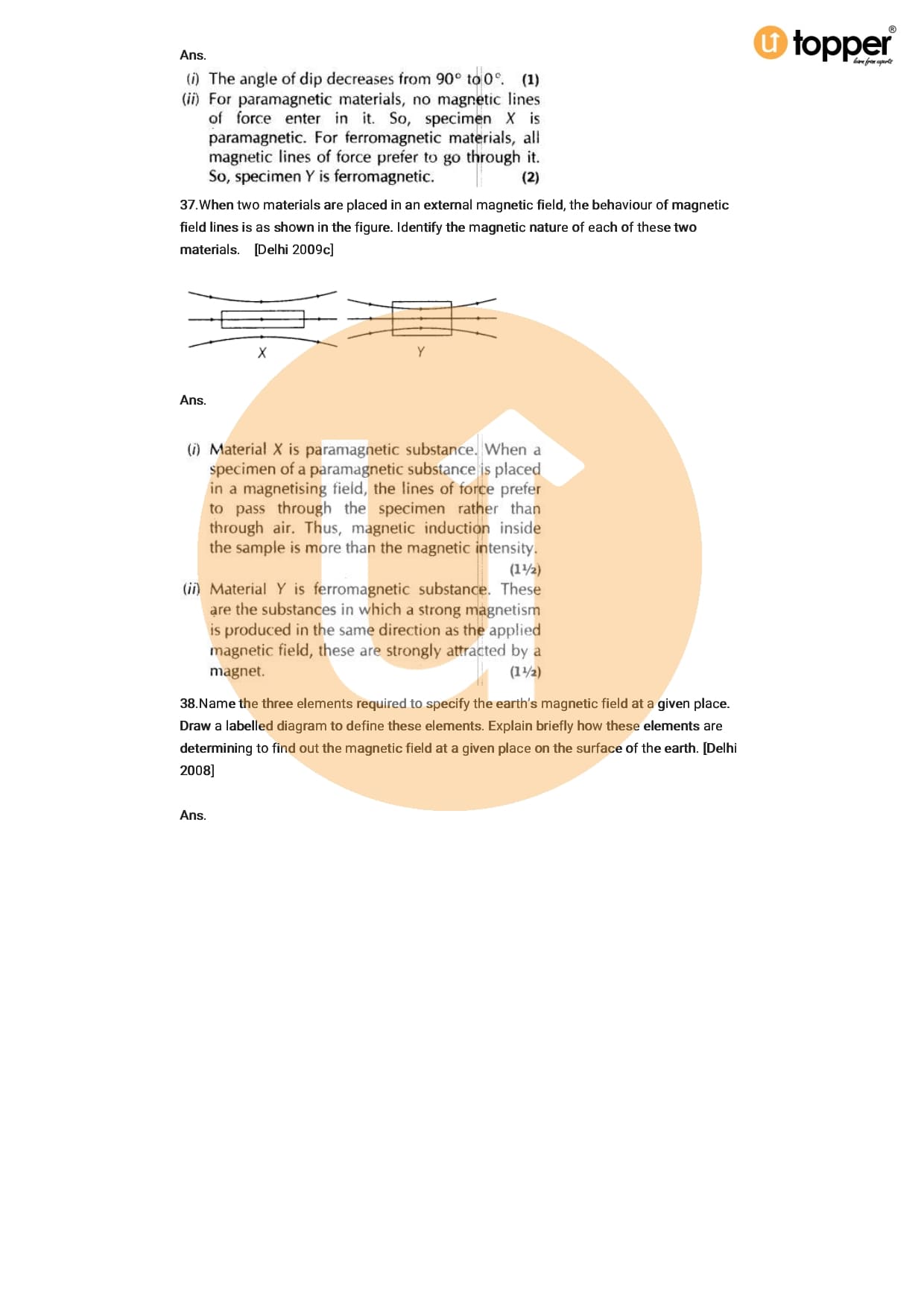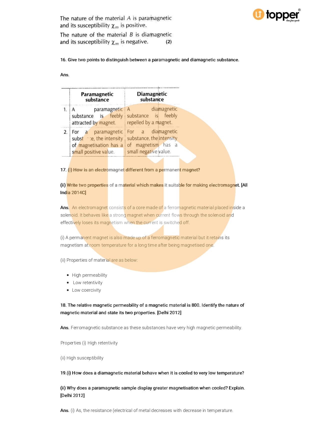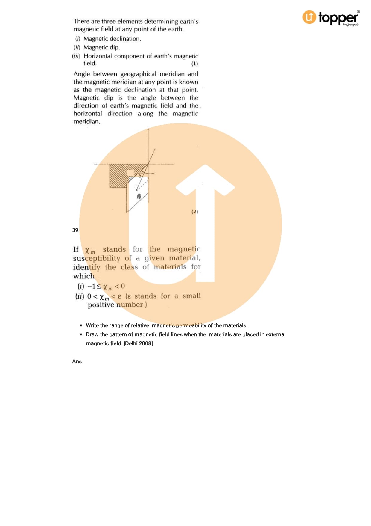 Class 12 Physics Important Question CBSE Chapter 5 – Magnetism And Matter