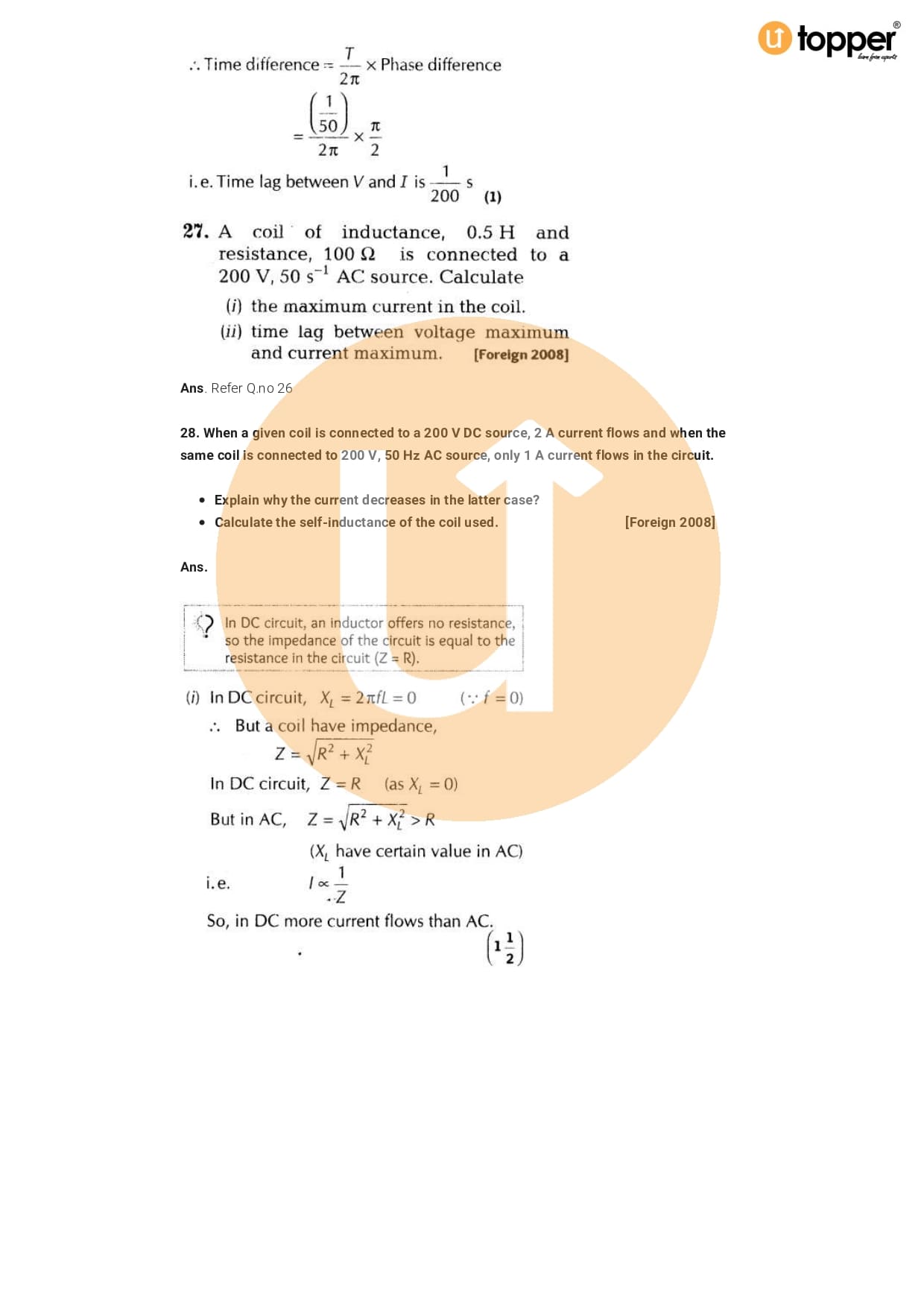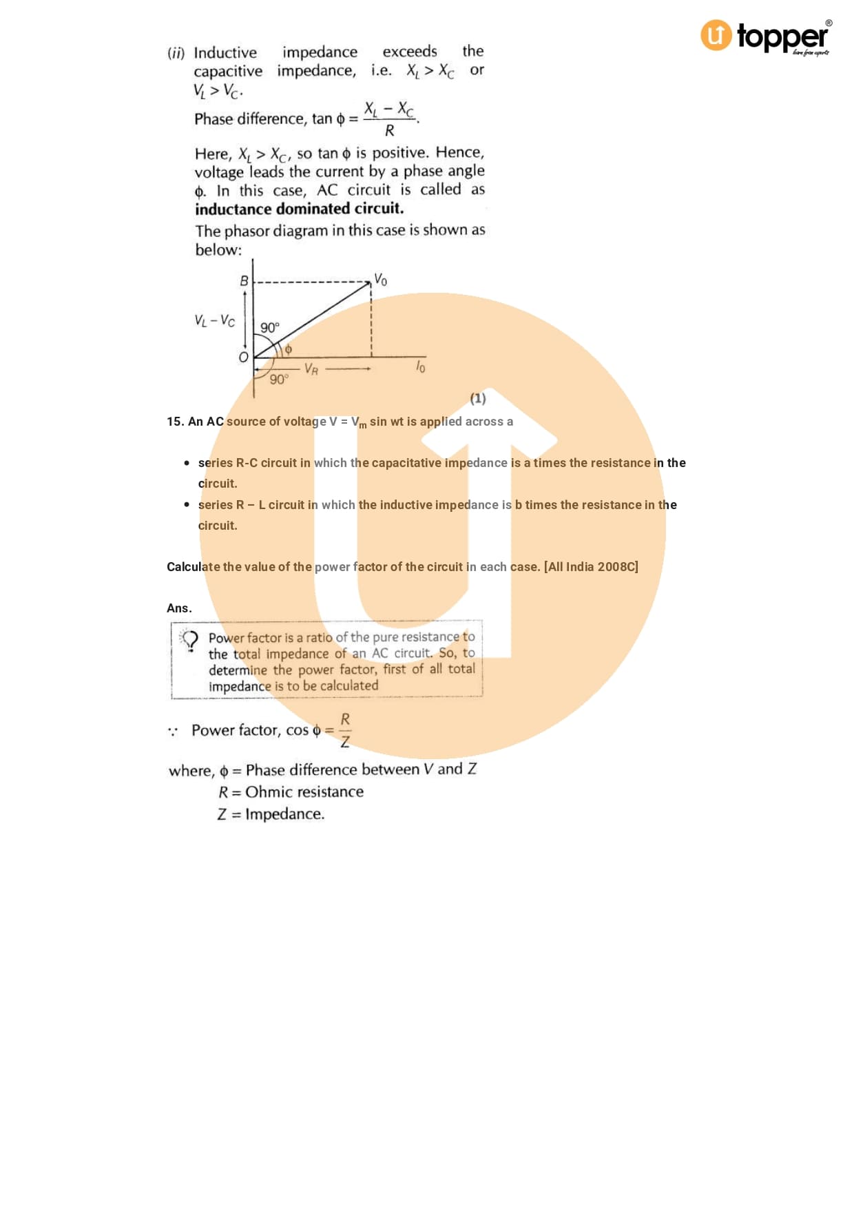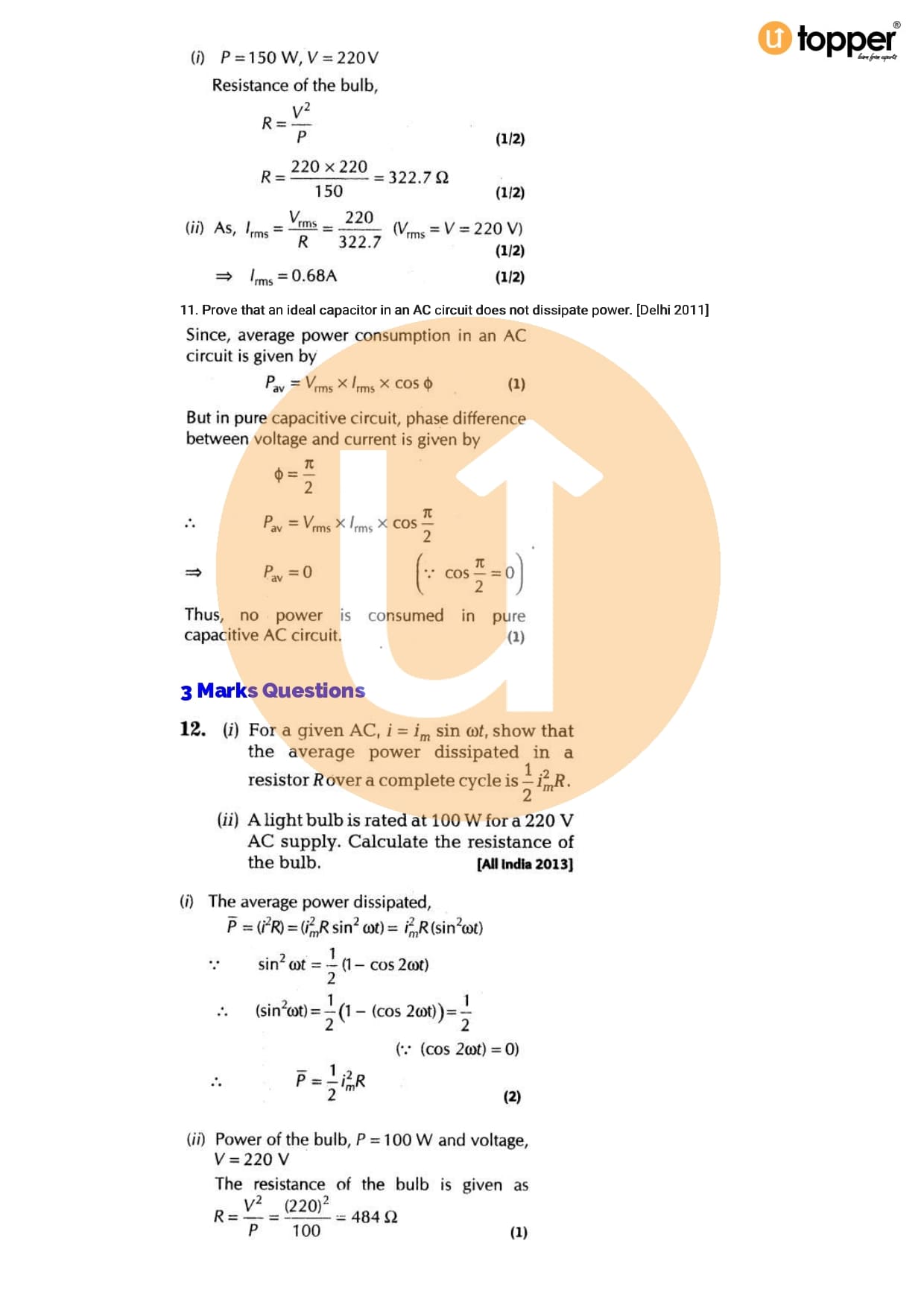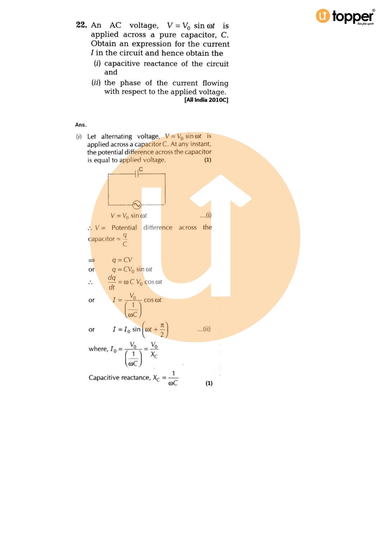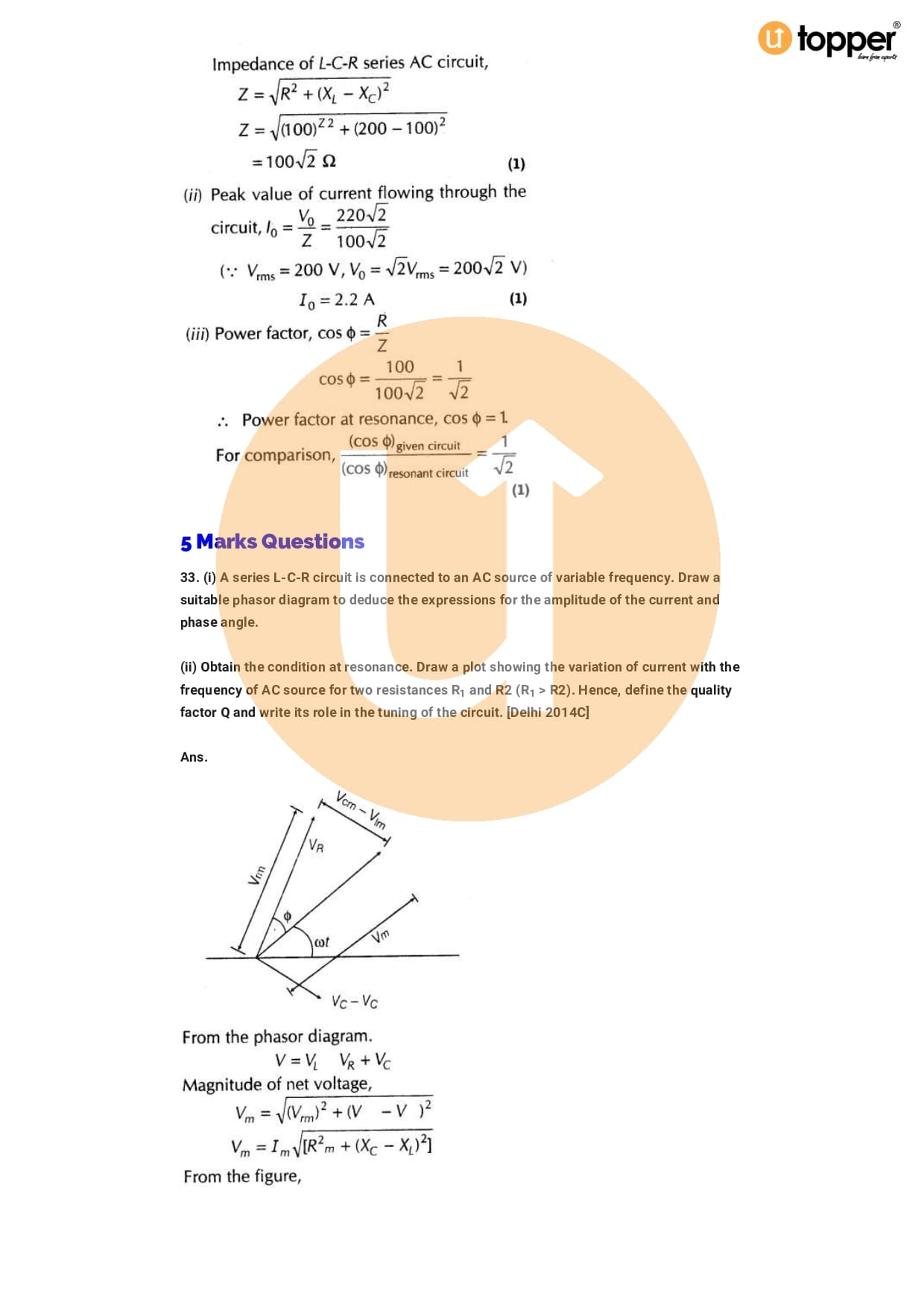 Class 12 Physics Important Question CBSE Chapter 7 – Alternating Current