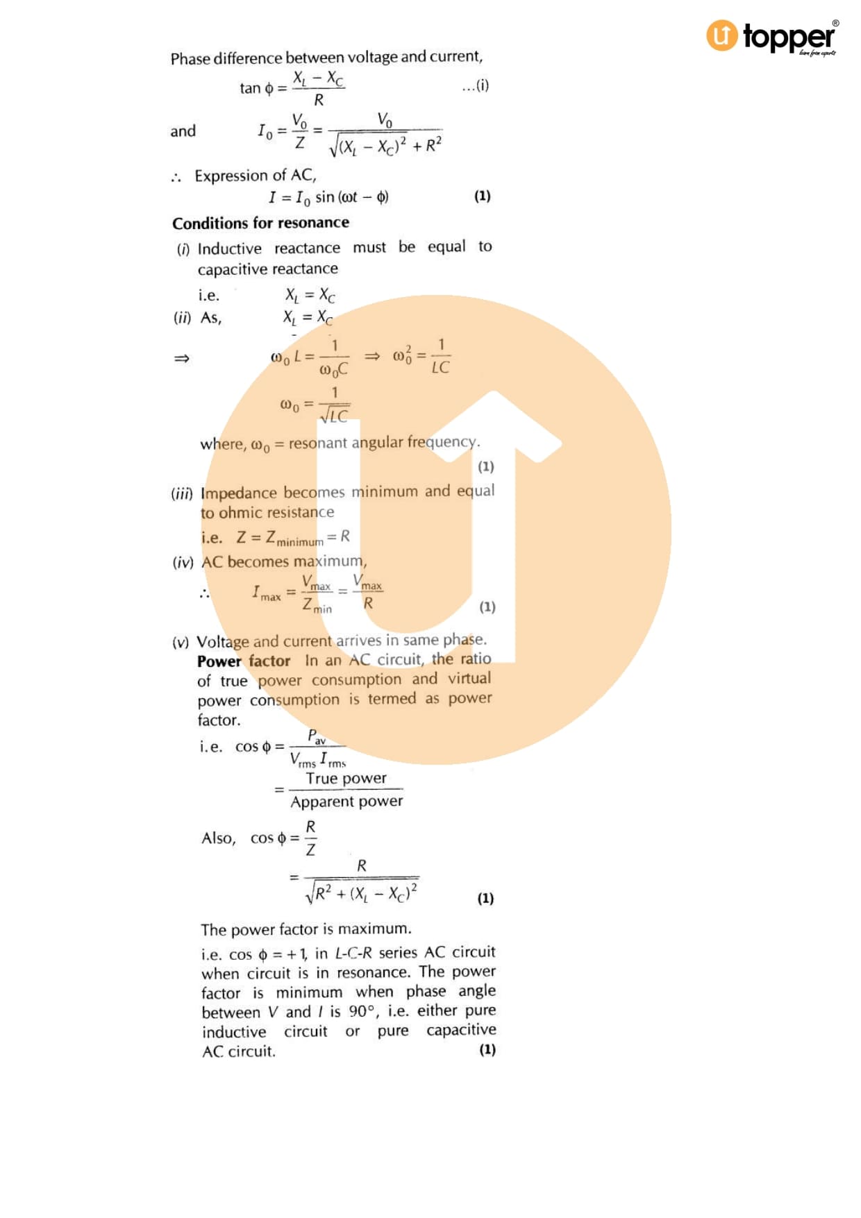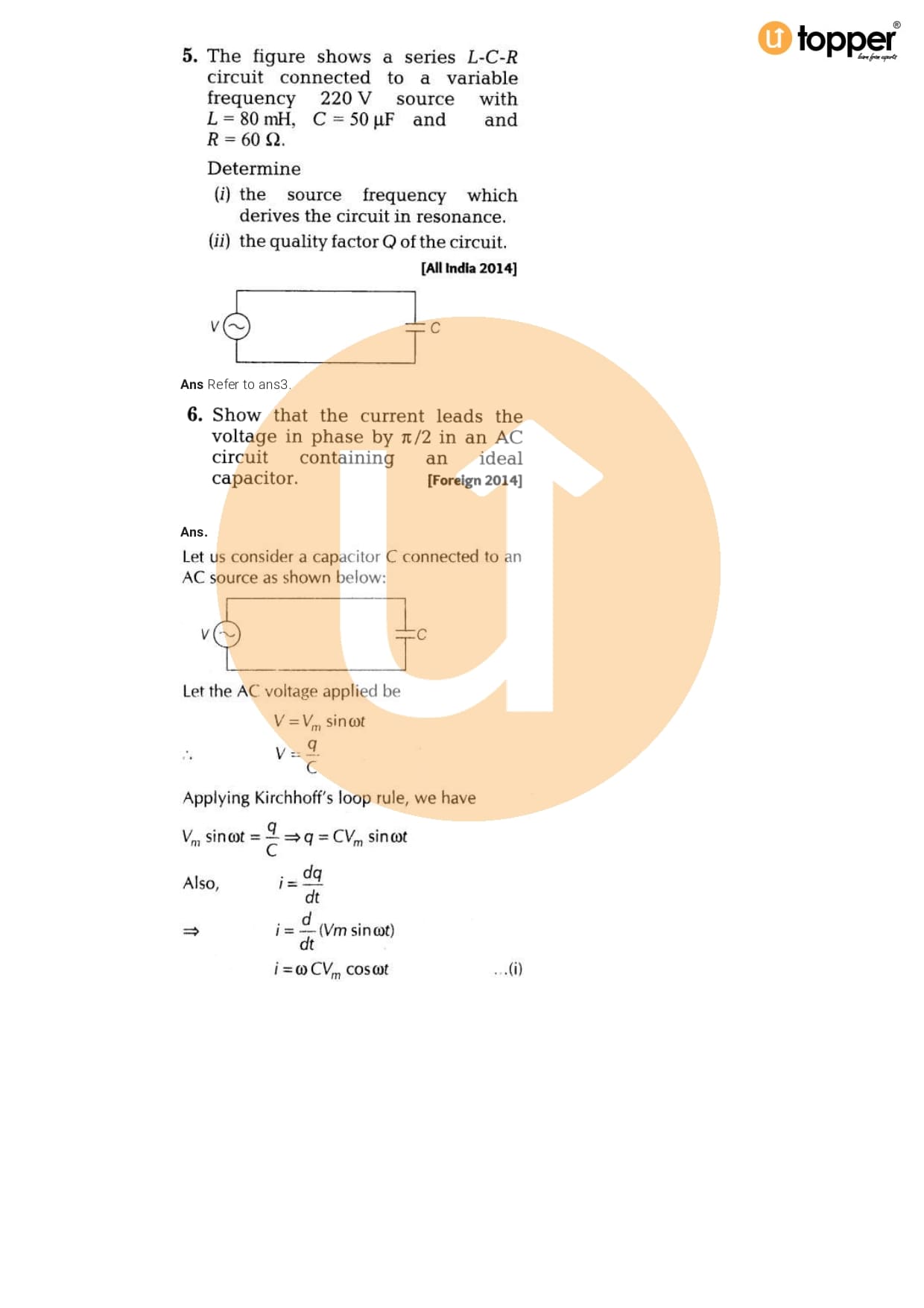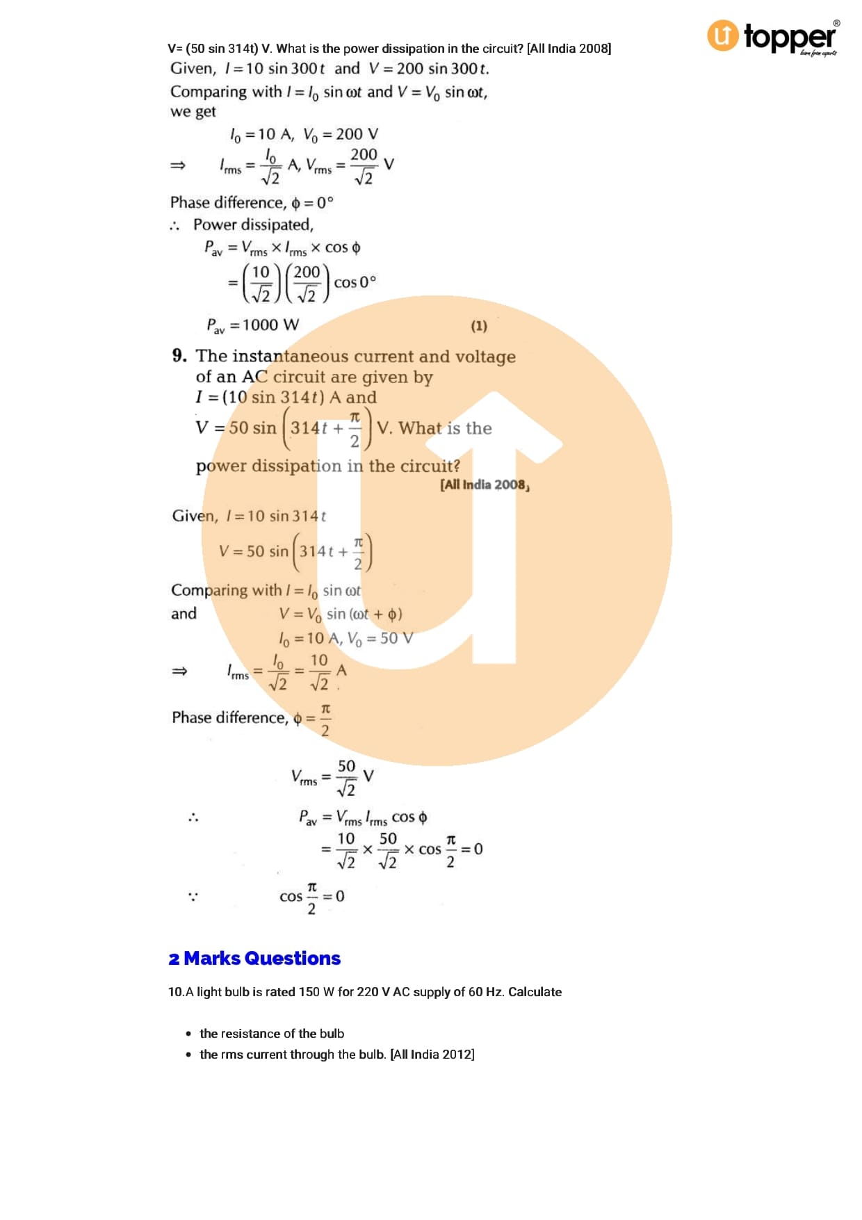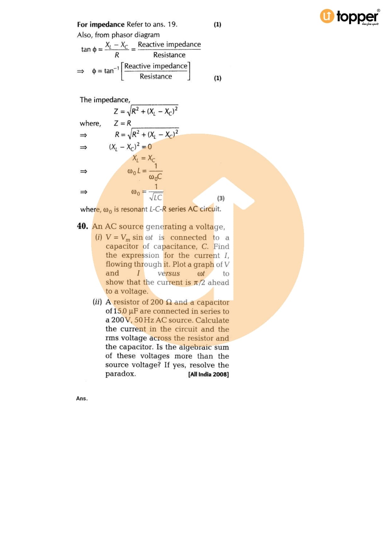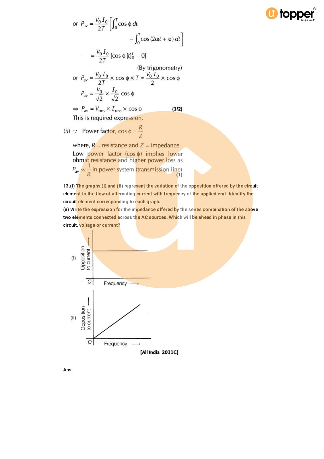 Class 12 Physics Important Question CBSE Chapter 7 – Alternating Current