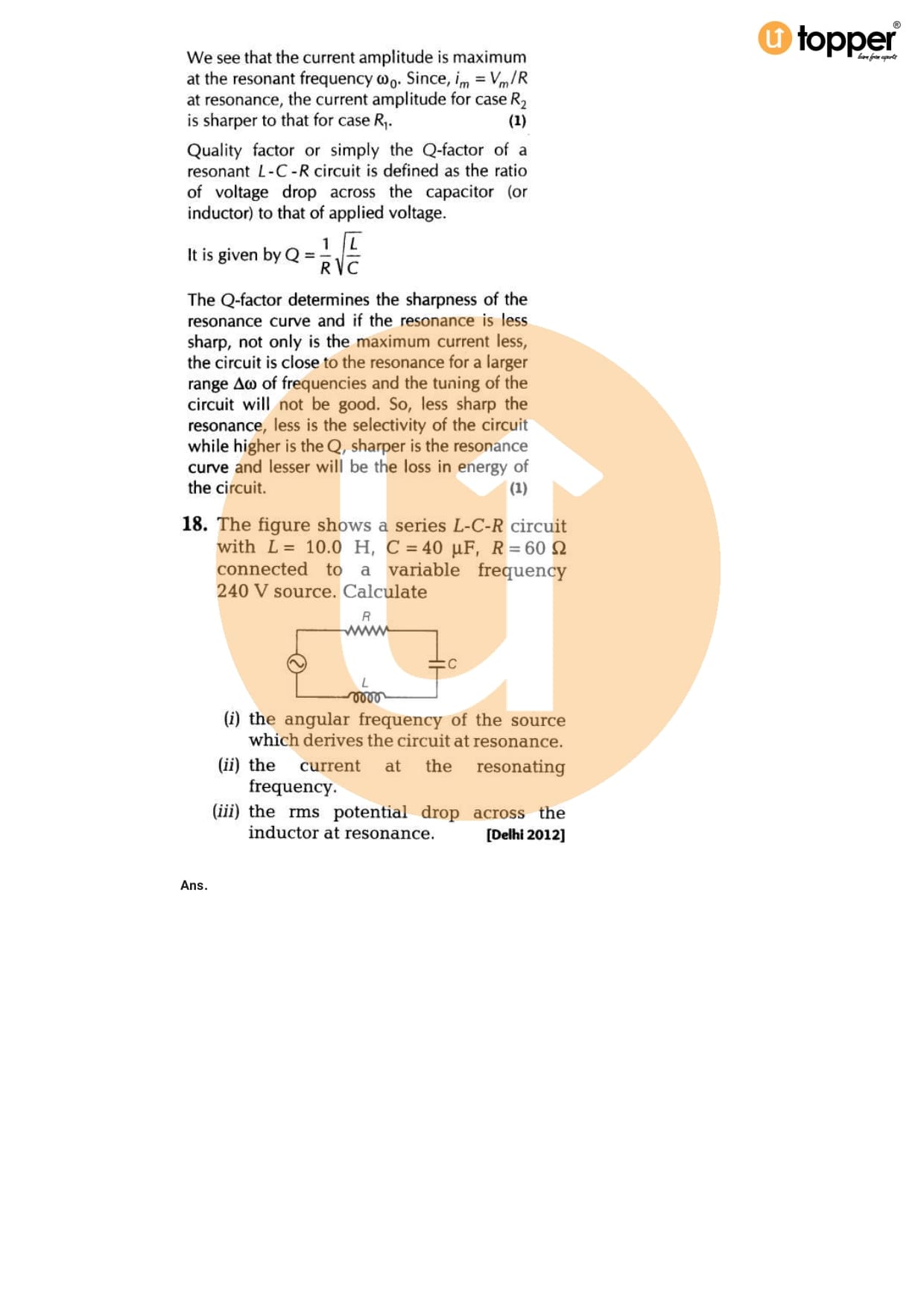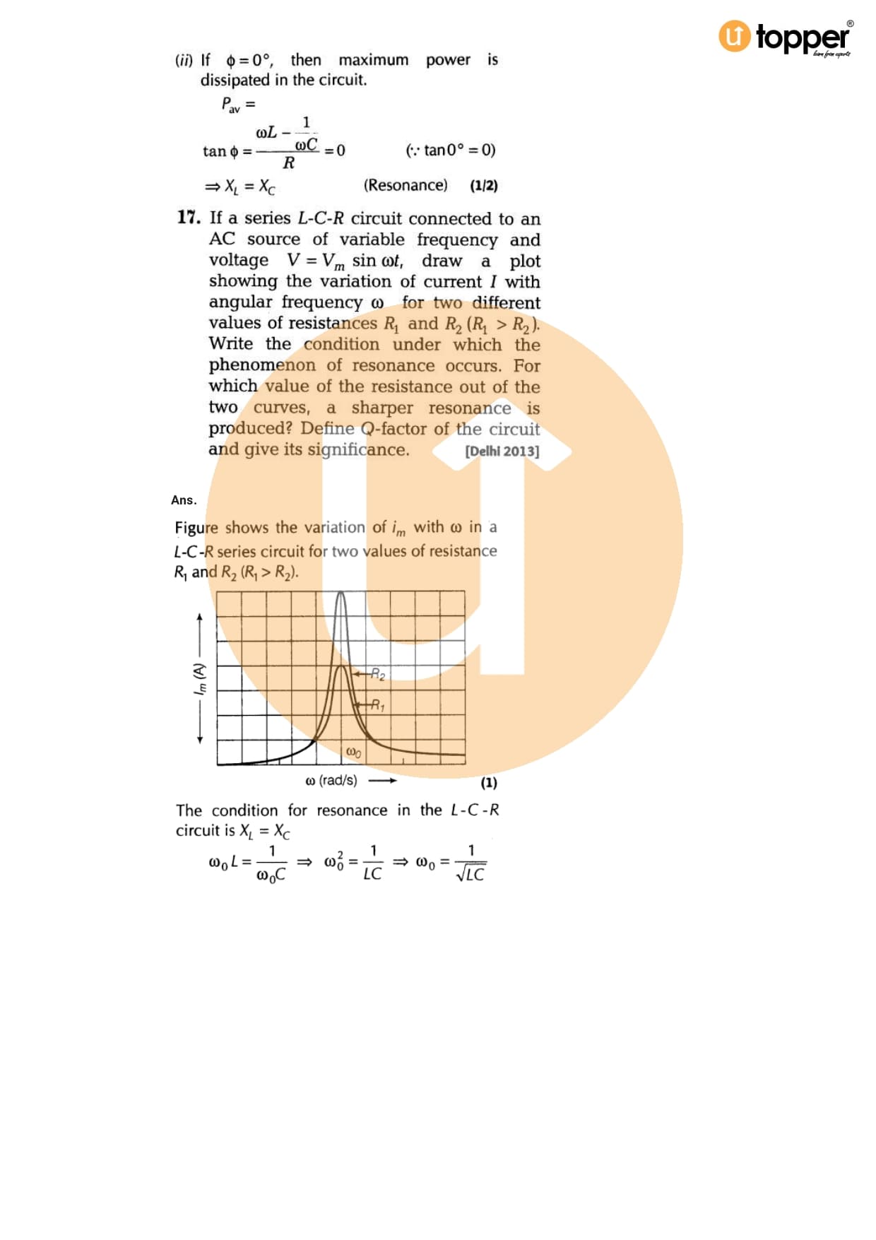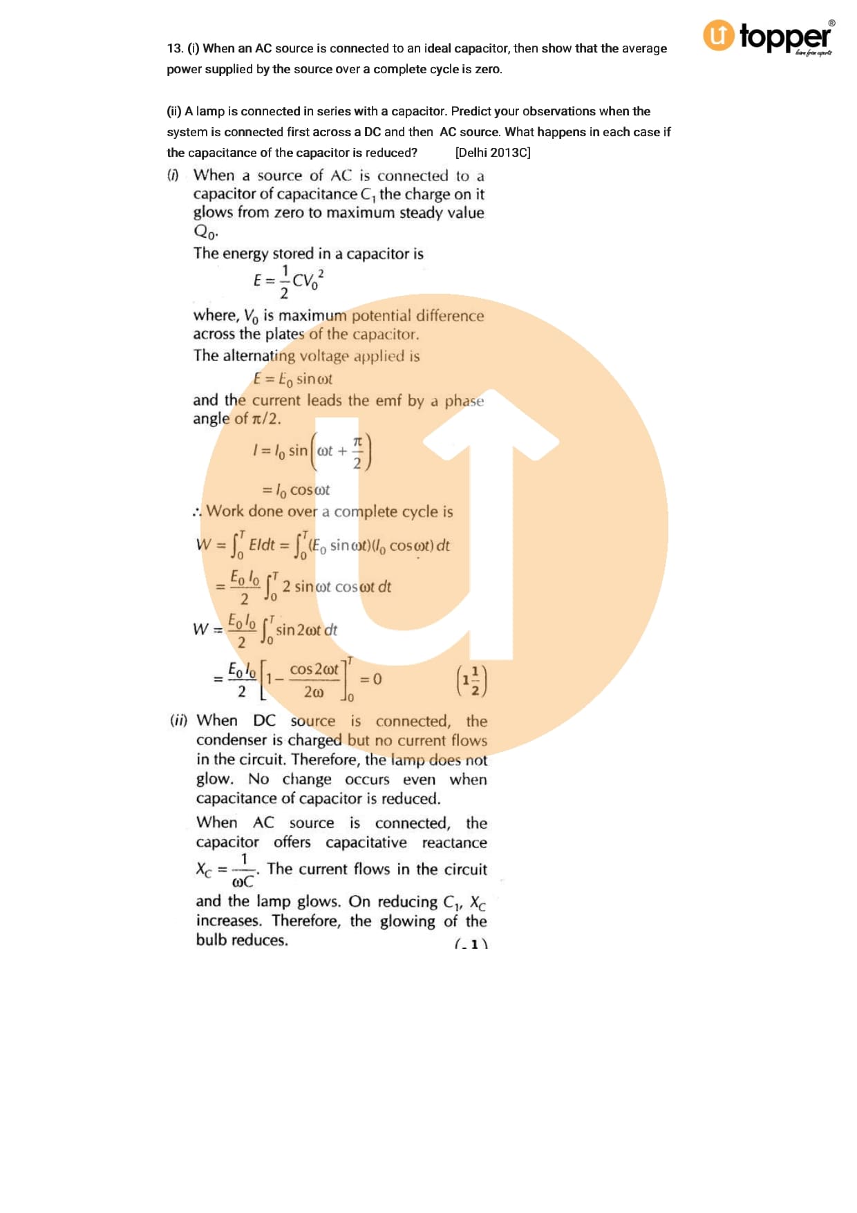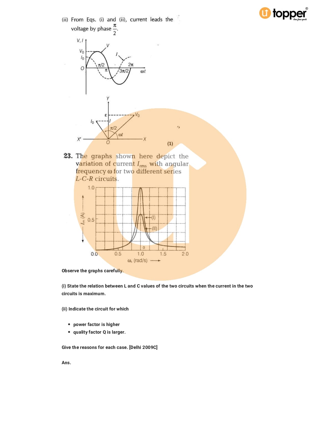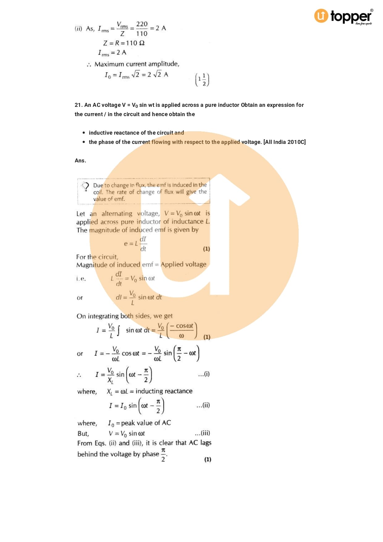 Class 12 Physics Important Question CBSE Chapter 7 – Alternating Current