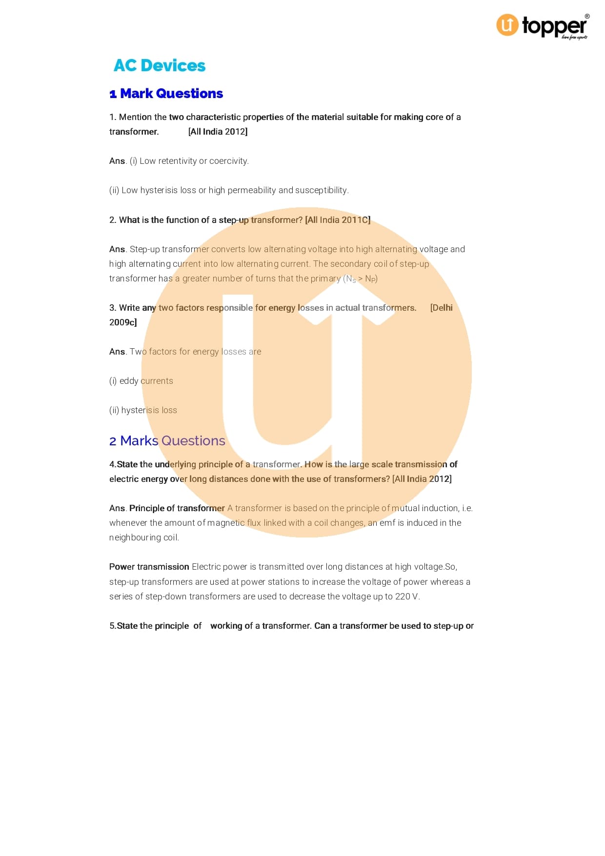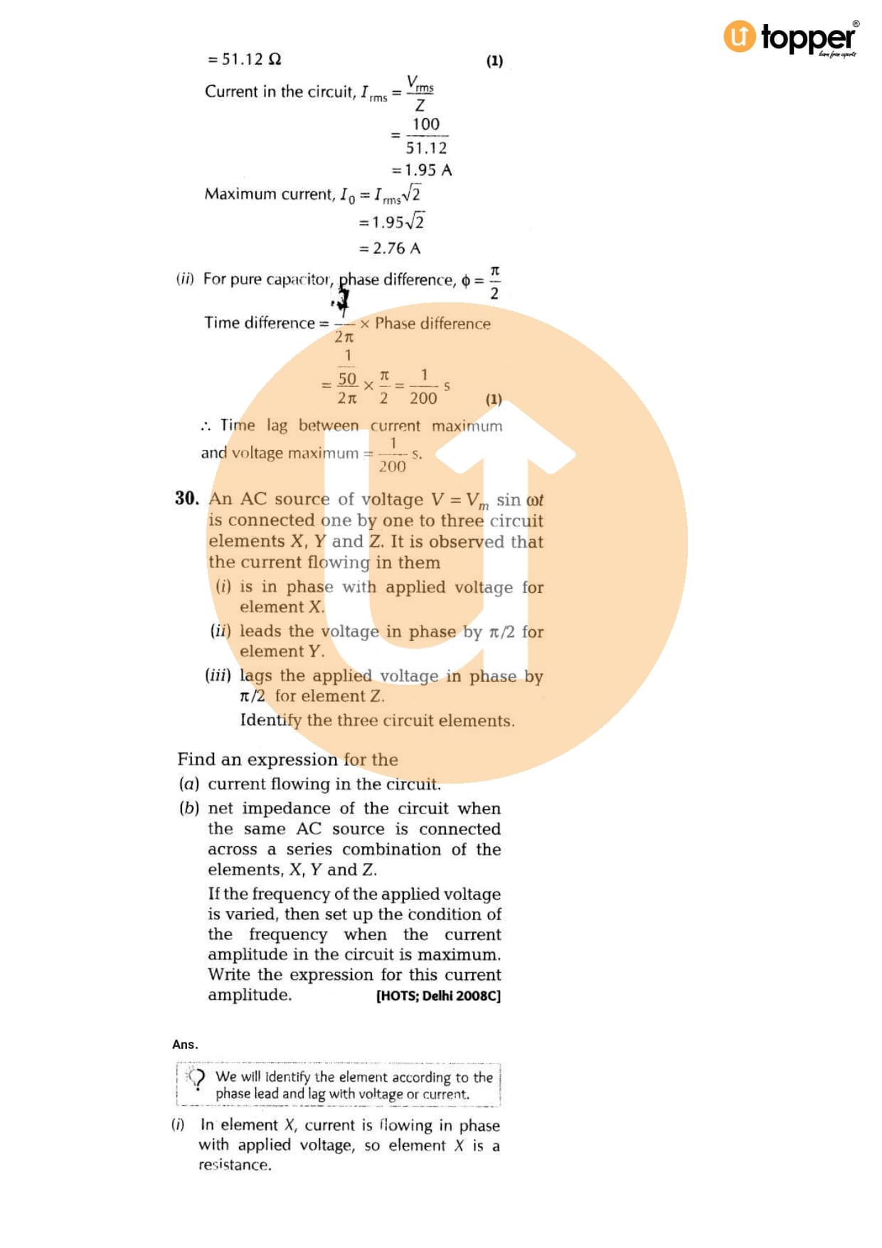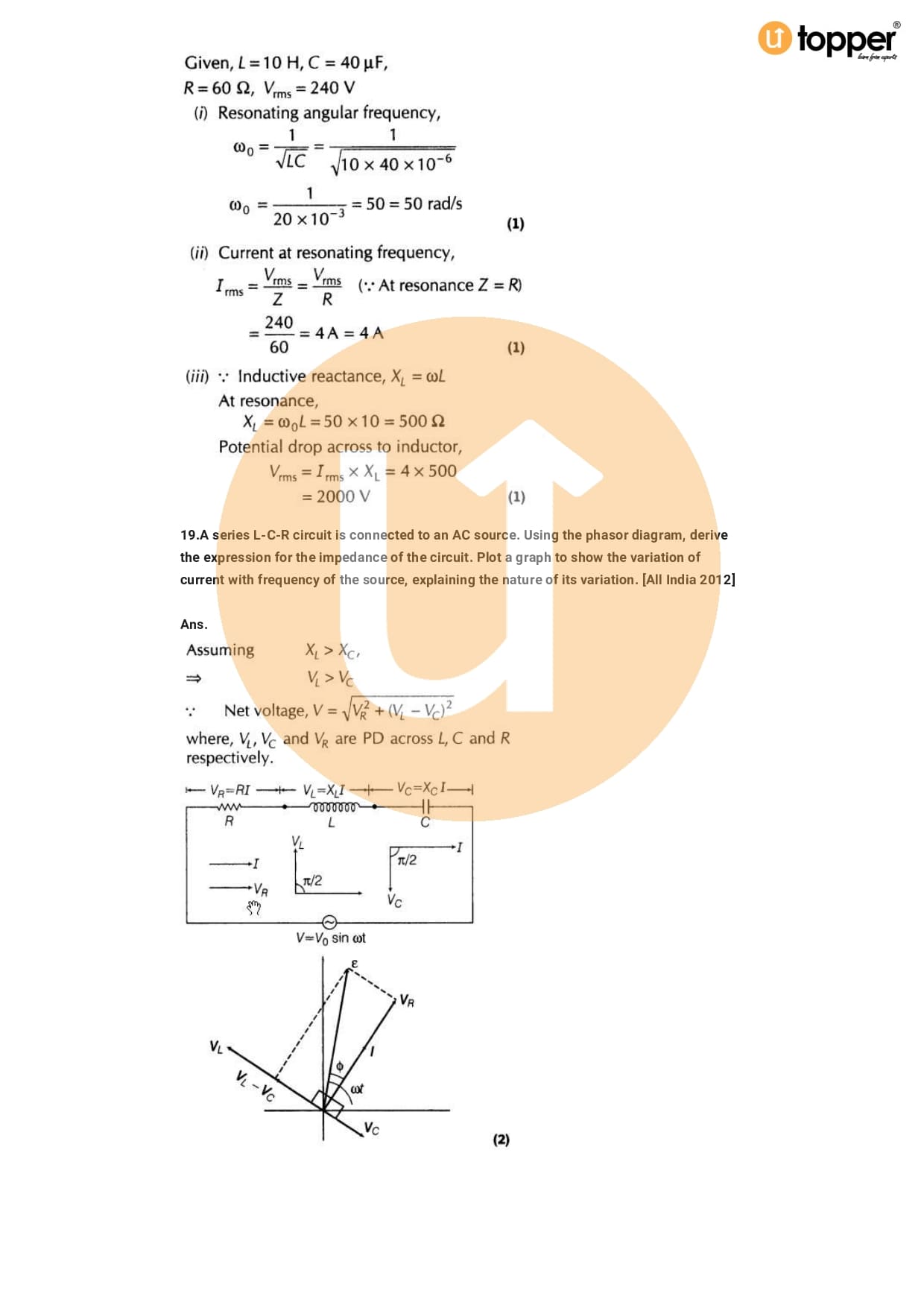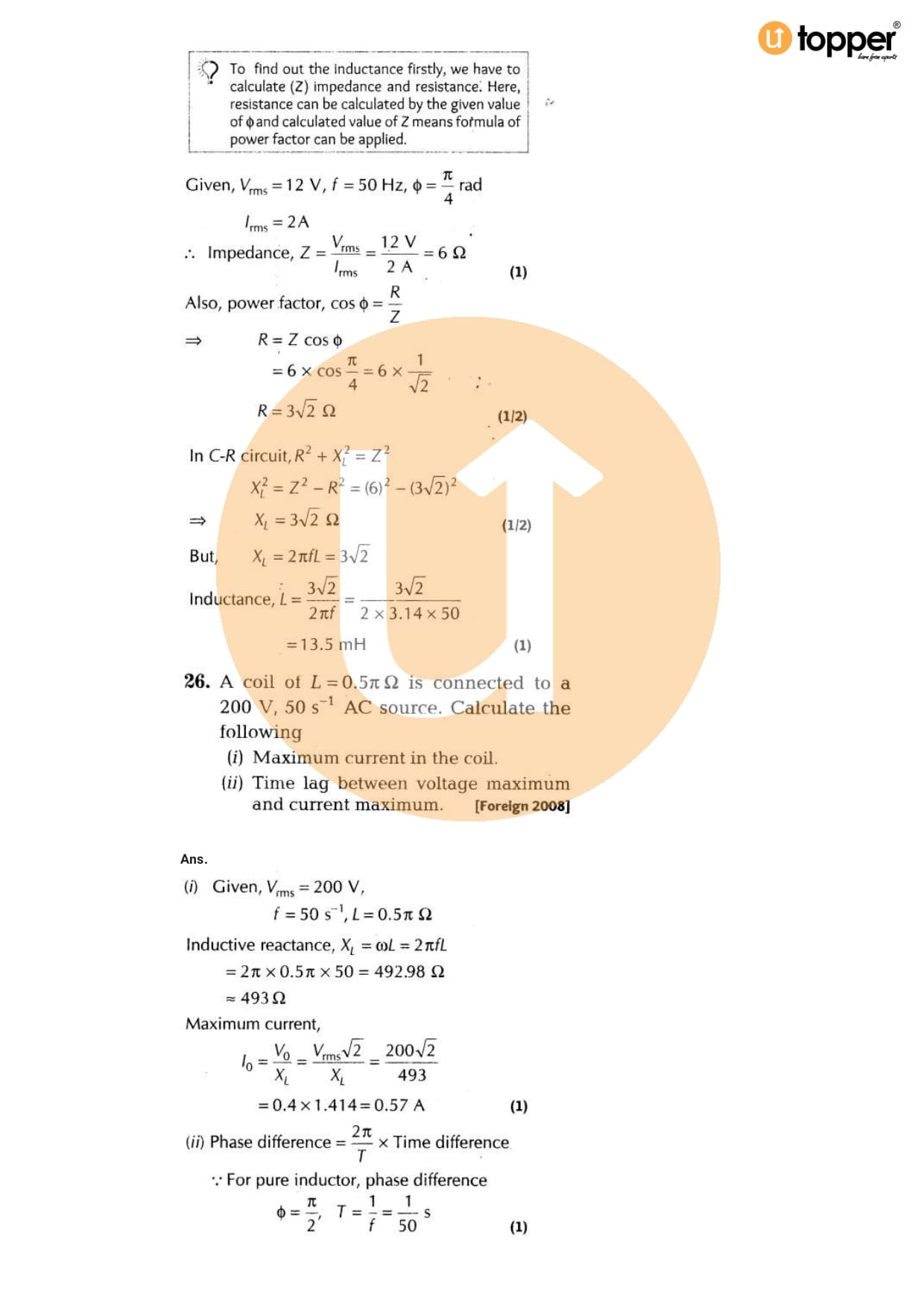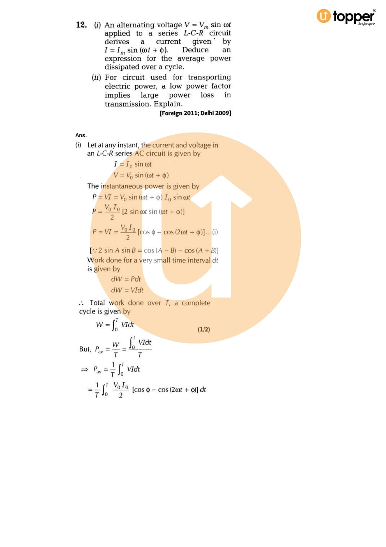 Class 12 Physics Important Question CBSE Chapter 7 – Alternating Current