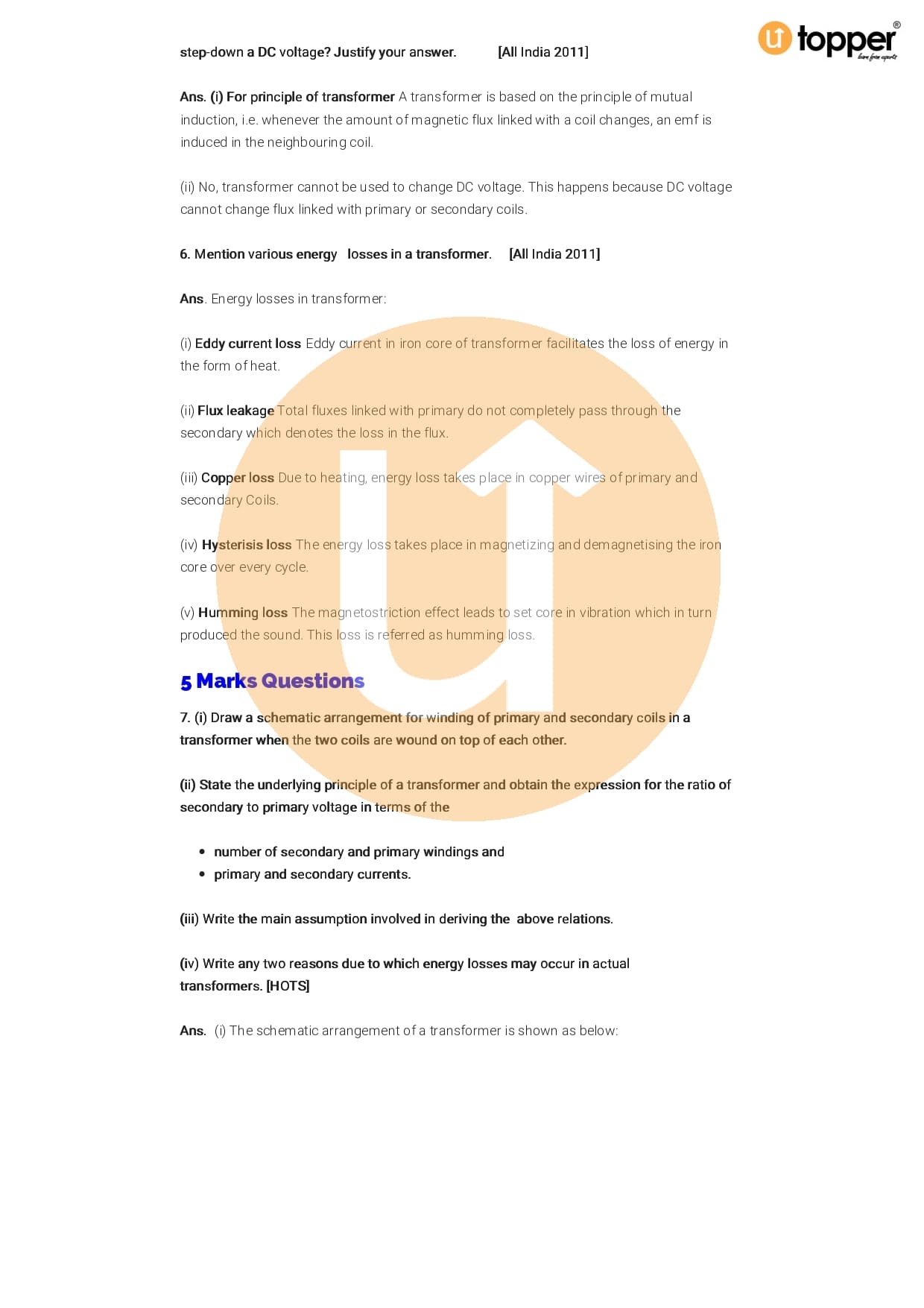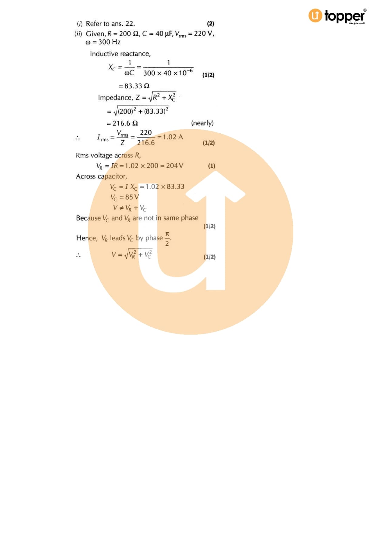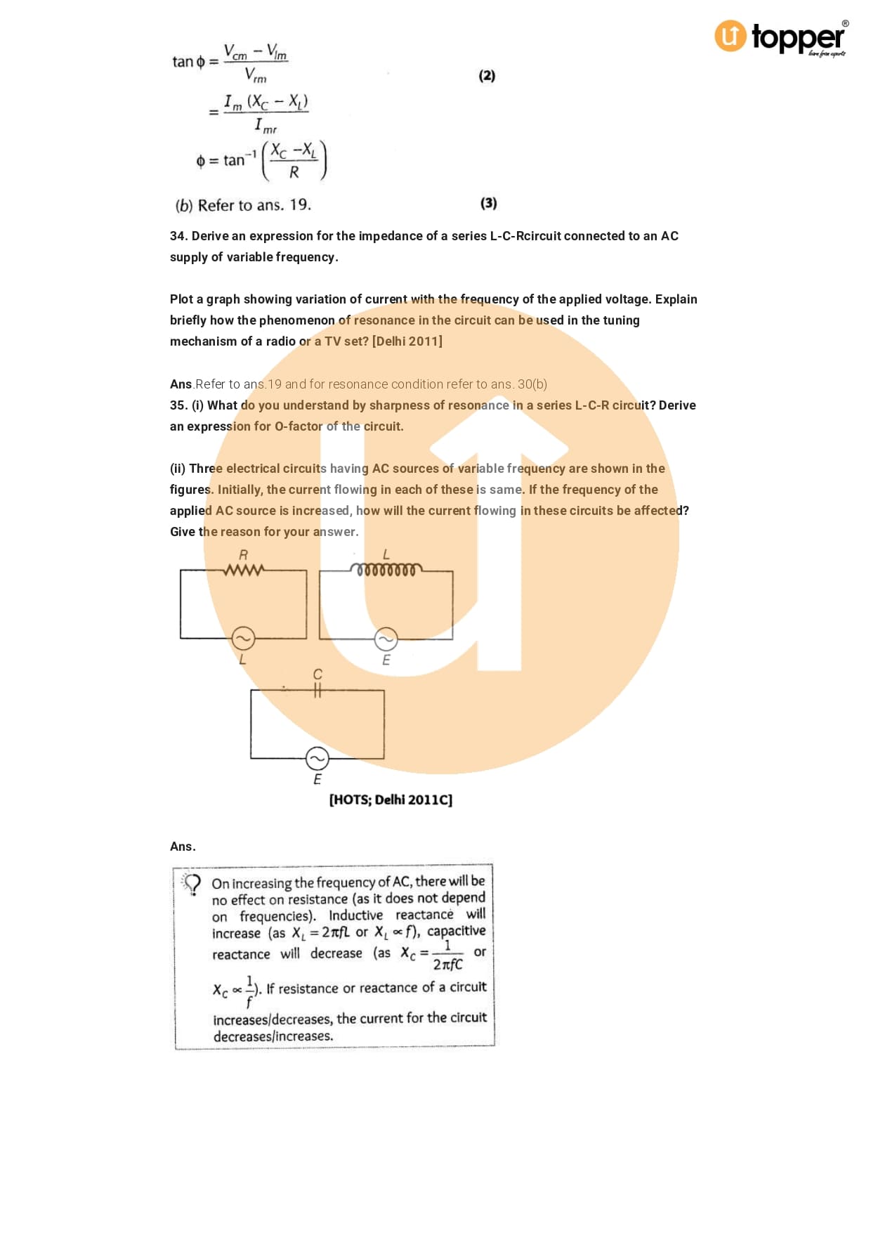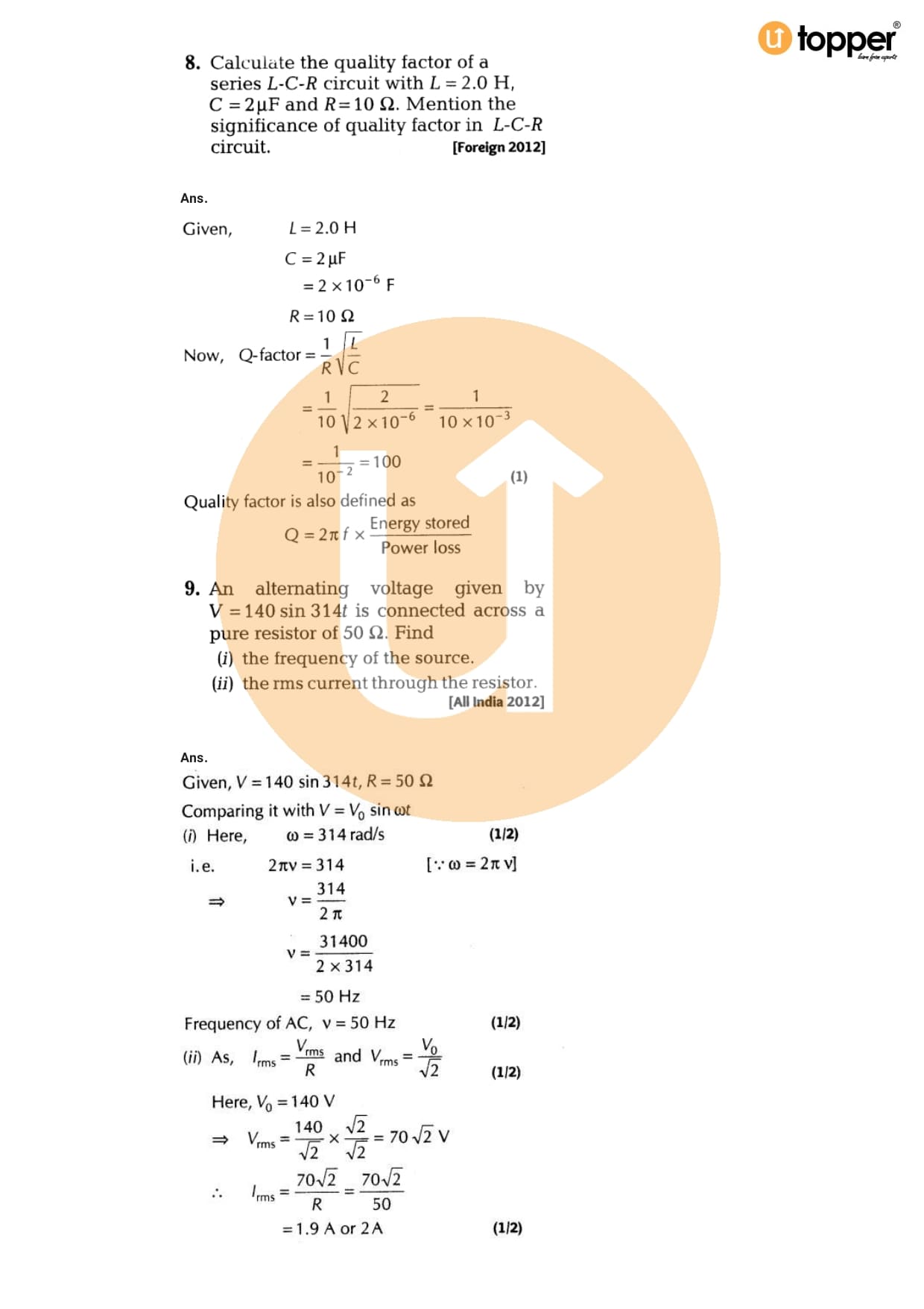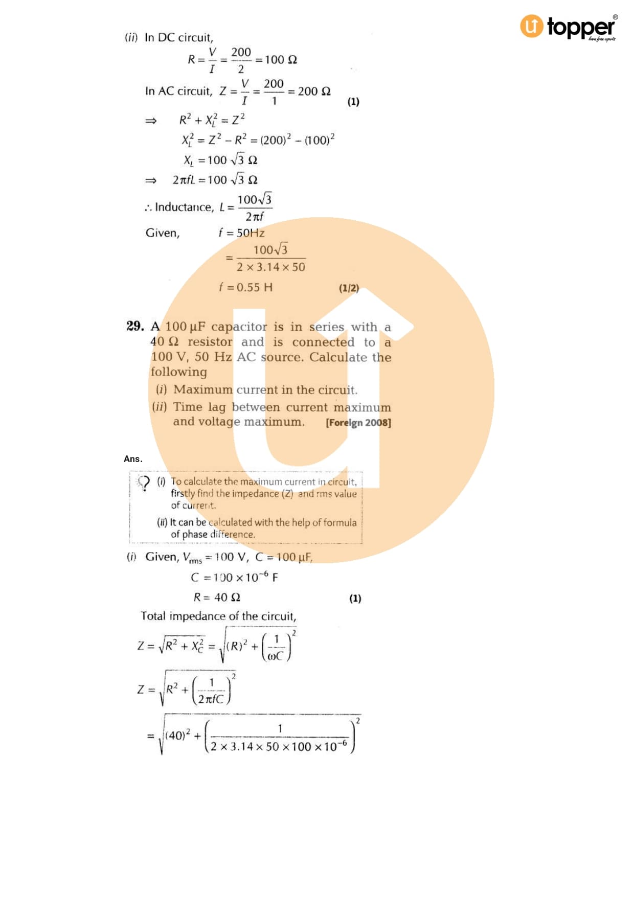 Class 12 Physics Important Question CBSE Chapter 7 – Alternating Current