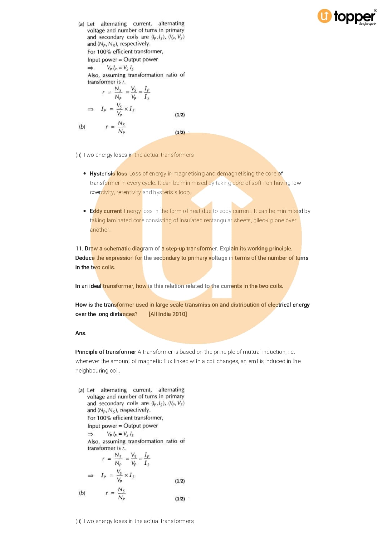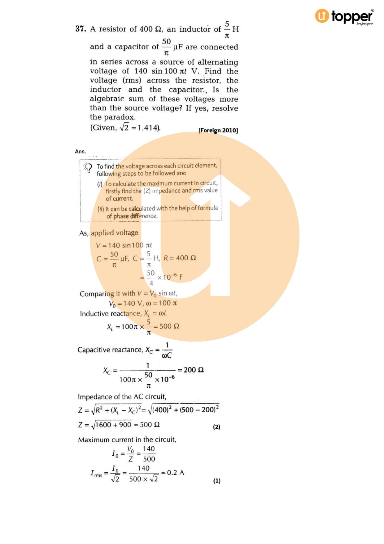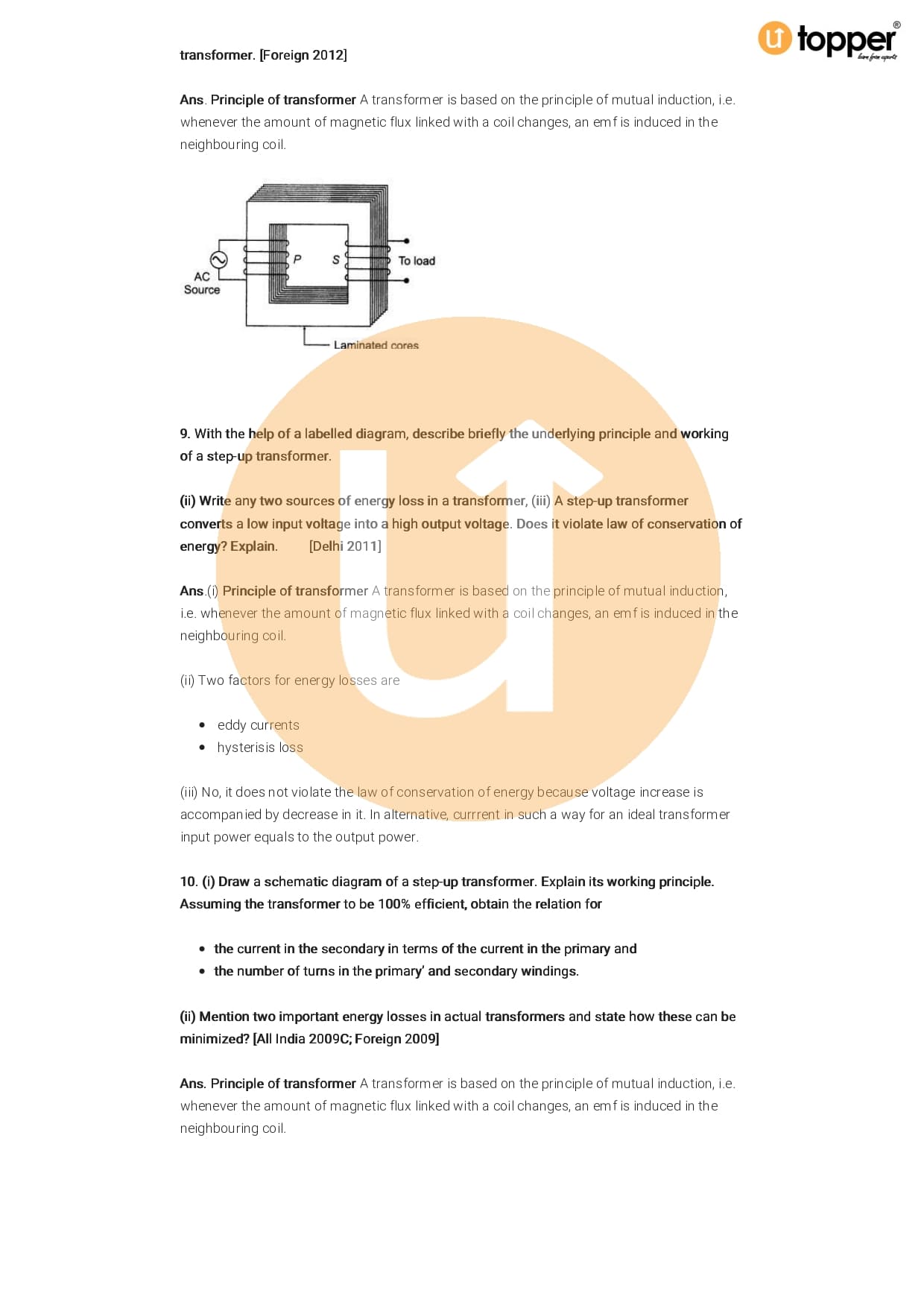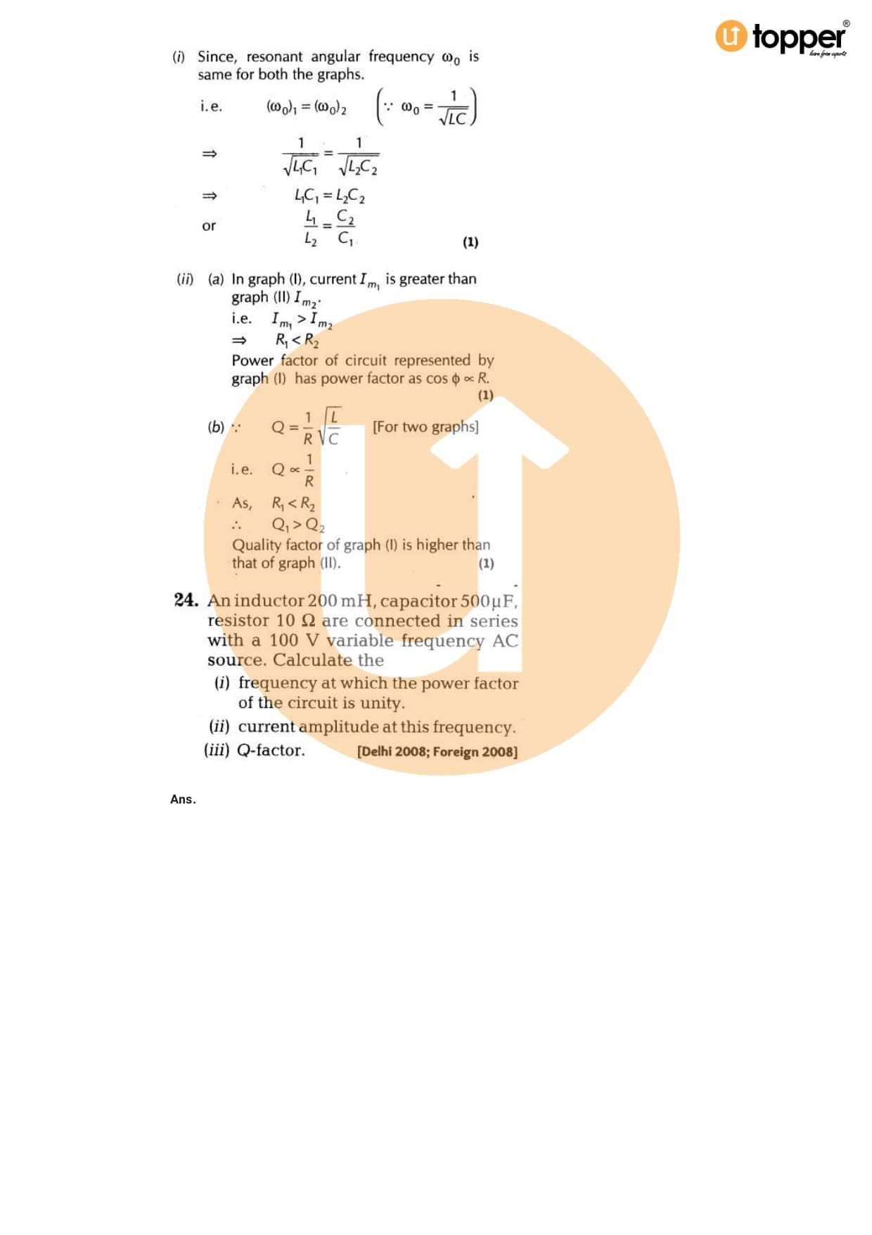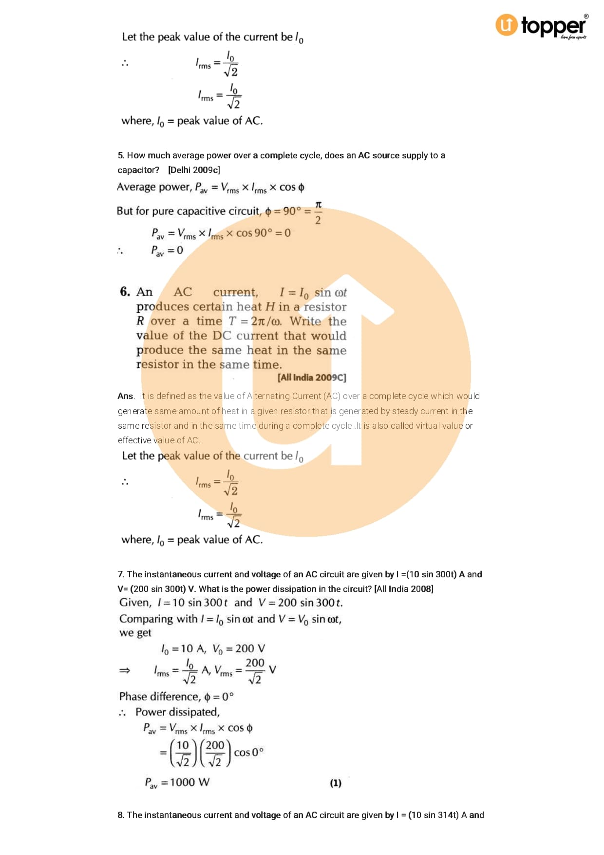 Class 12 Physics Important Question CBSE Chapter 7 – Alternating Current