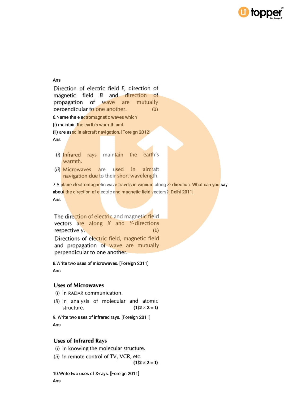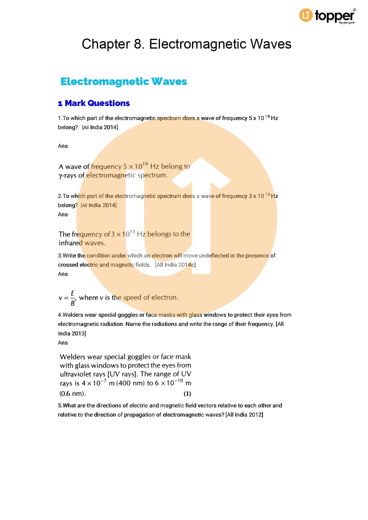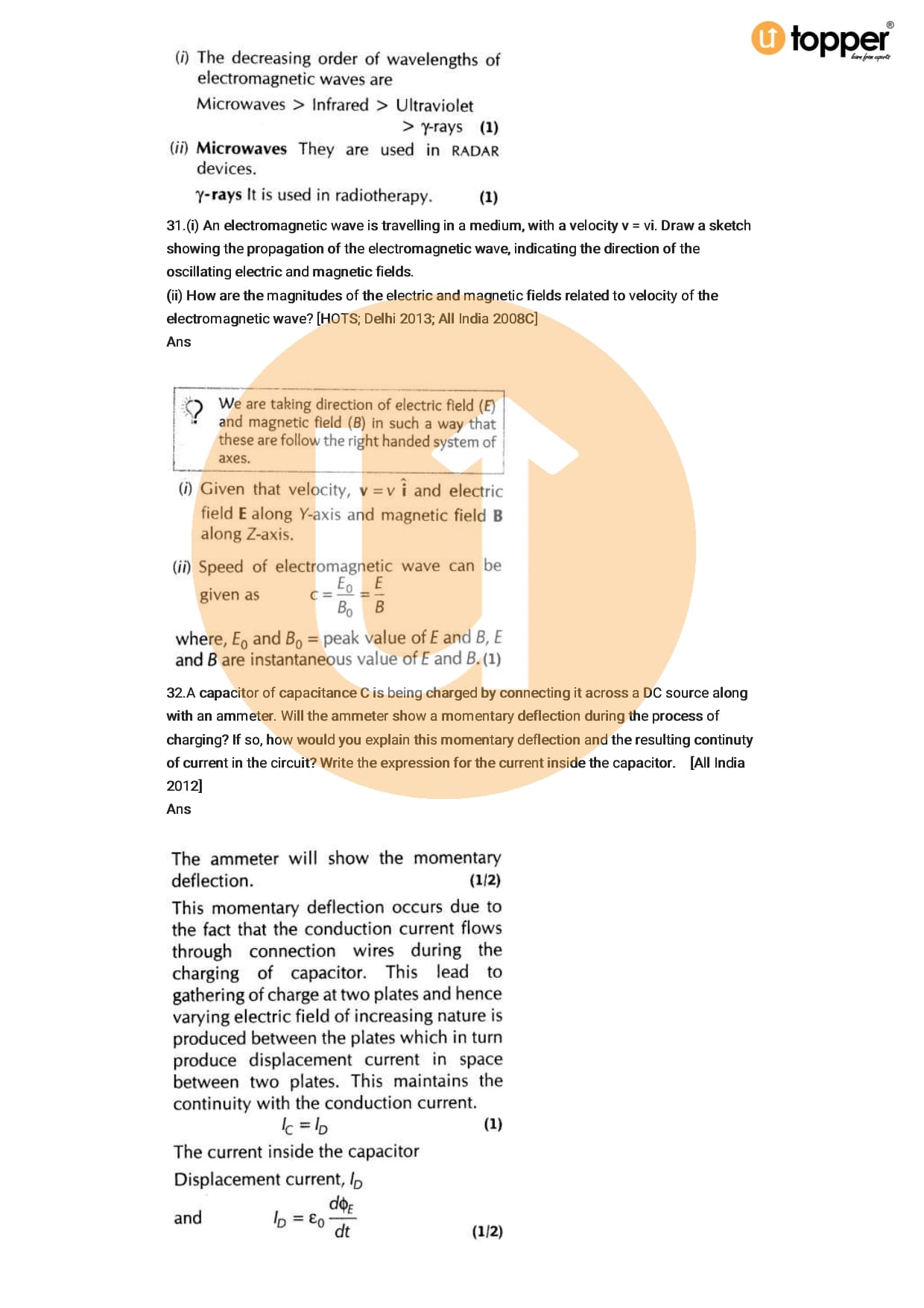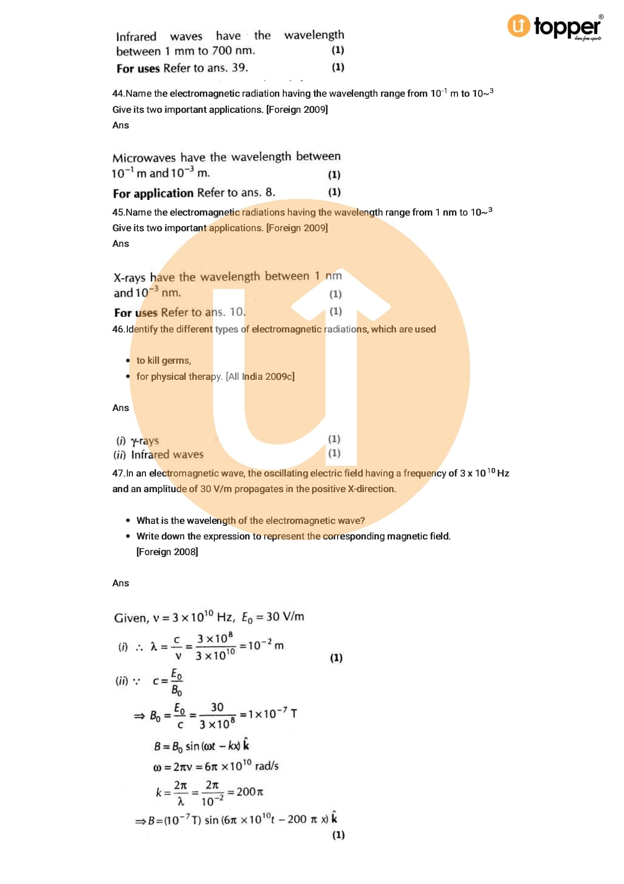 Class 12 Physics Important Question CBSE Chapter 8 – Electromagnetic Waves