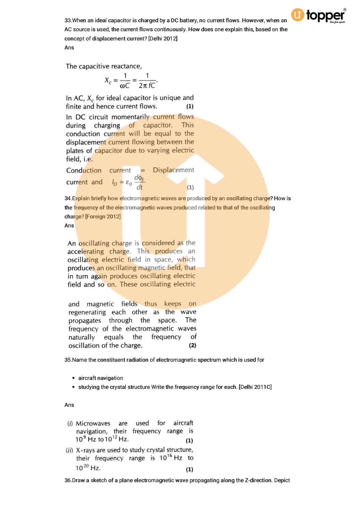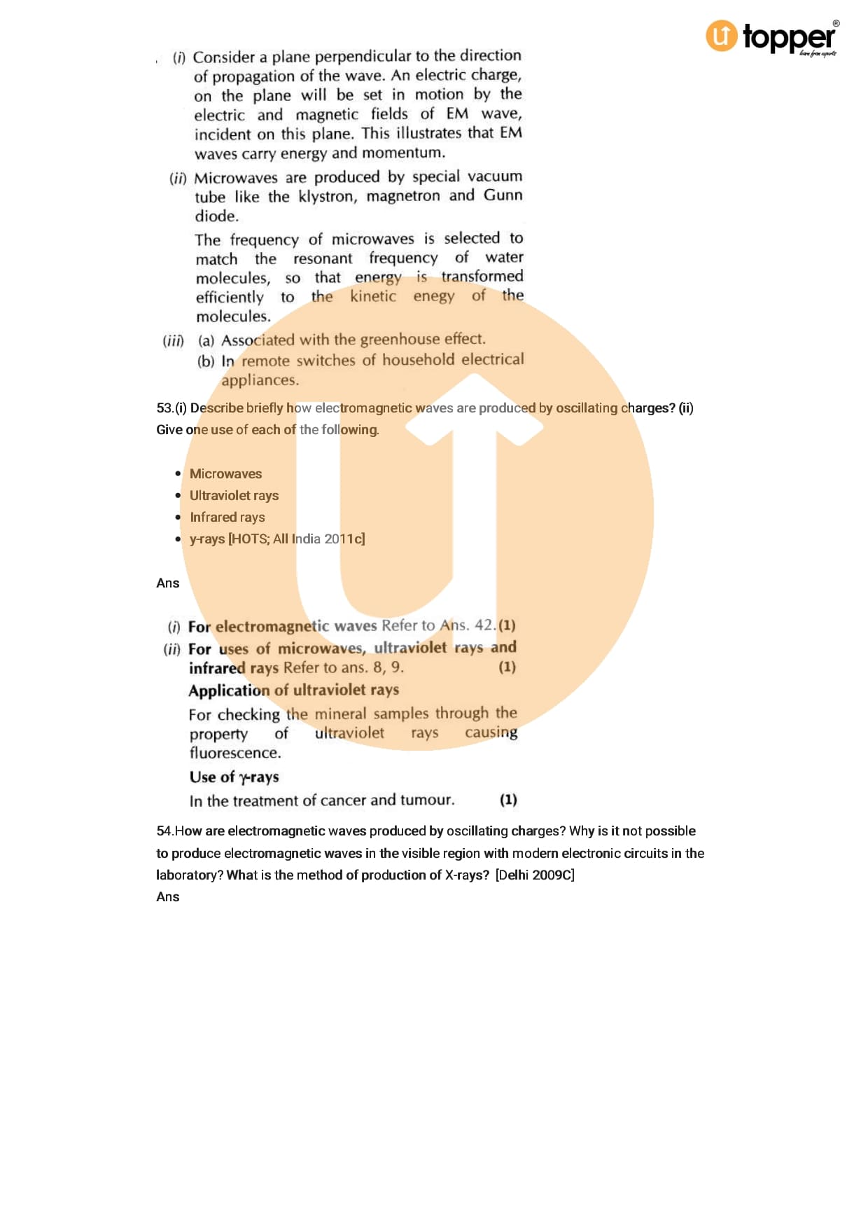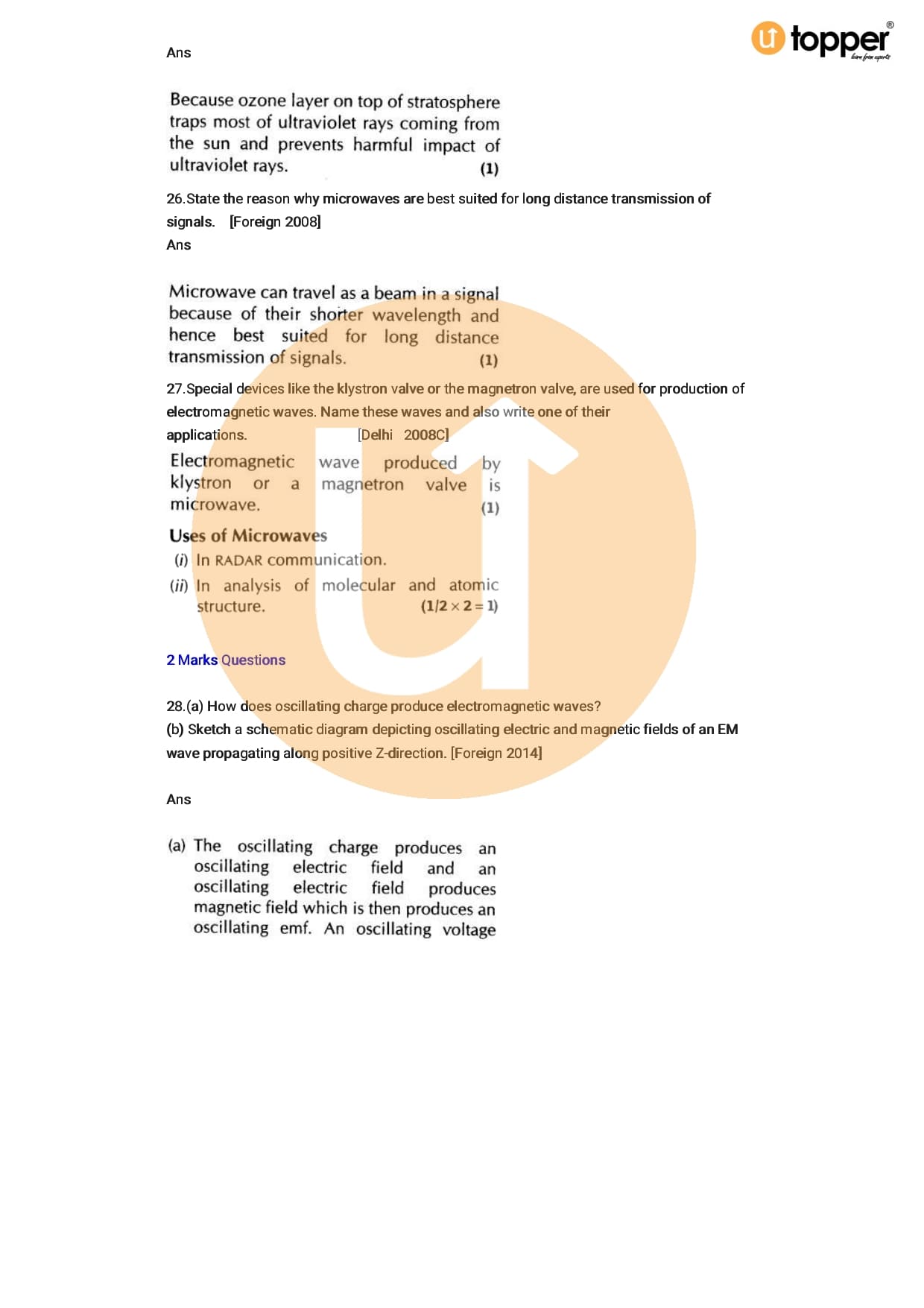 Class 12 Physics Important Question CBSE Chapter 8 – Electromagnetic Waves