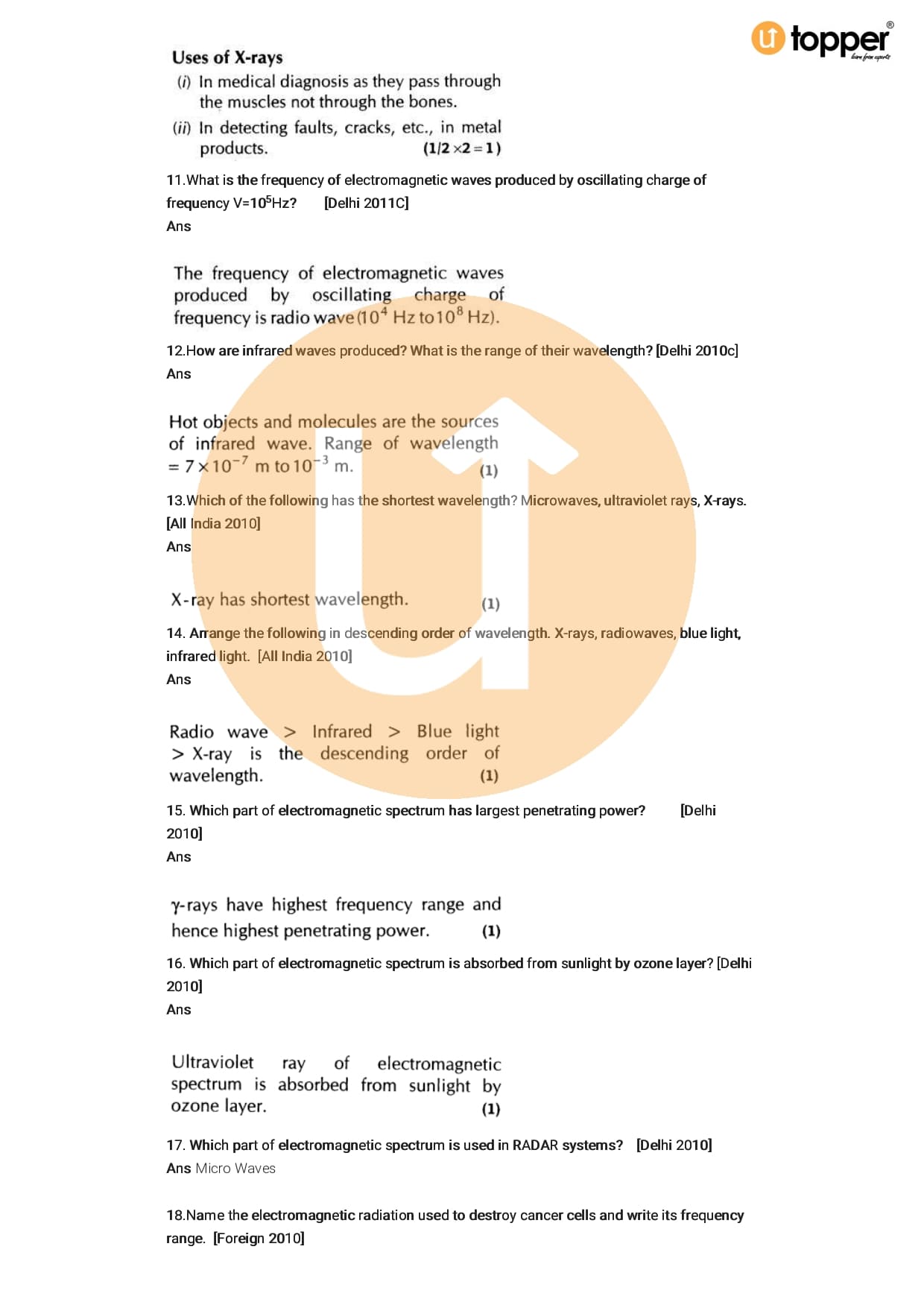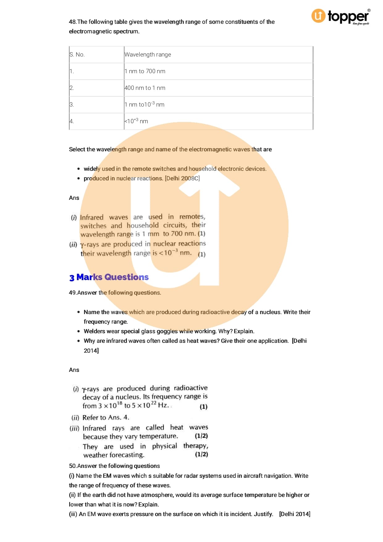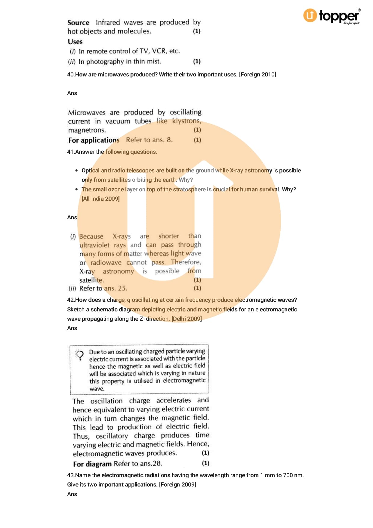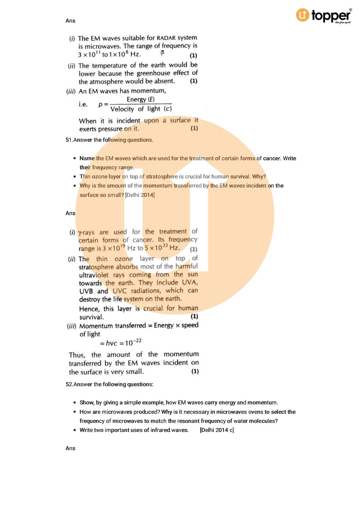 Class 12 Physics Important Question CBSE Chapter 8 – Electromagnetic Waves