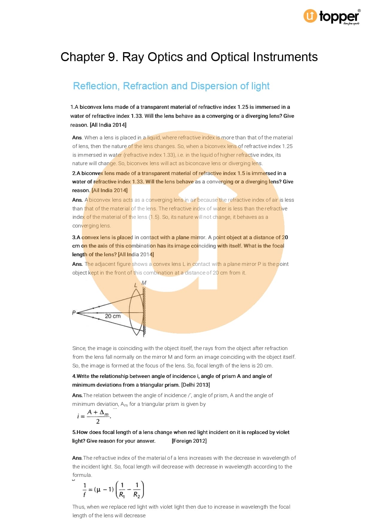 Class 12 Physics Important Questions Chapter 9 Pdf – Ray Optics and Optical Instruments