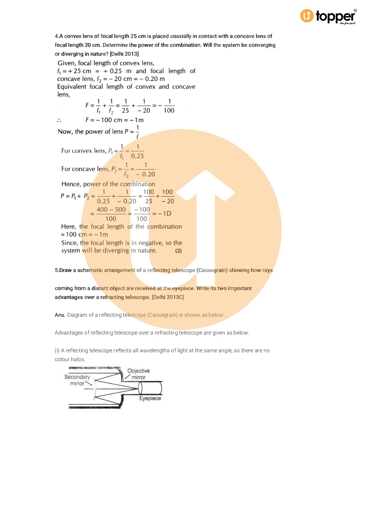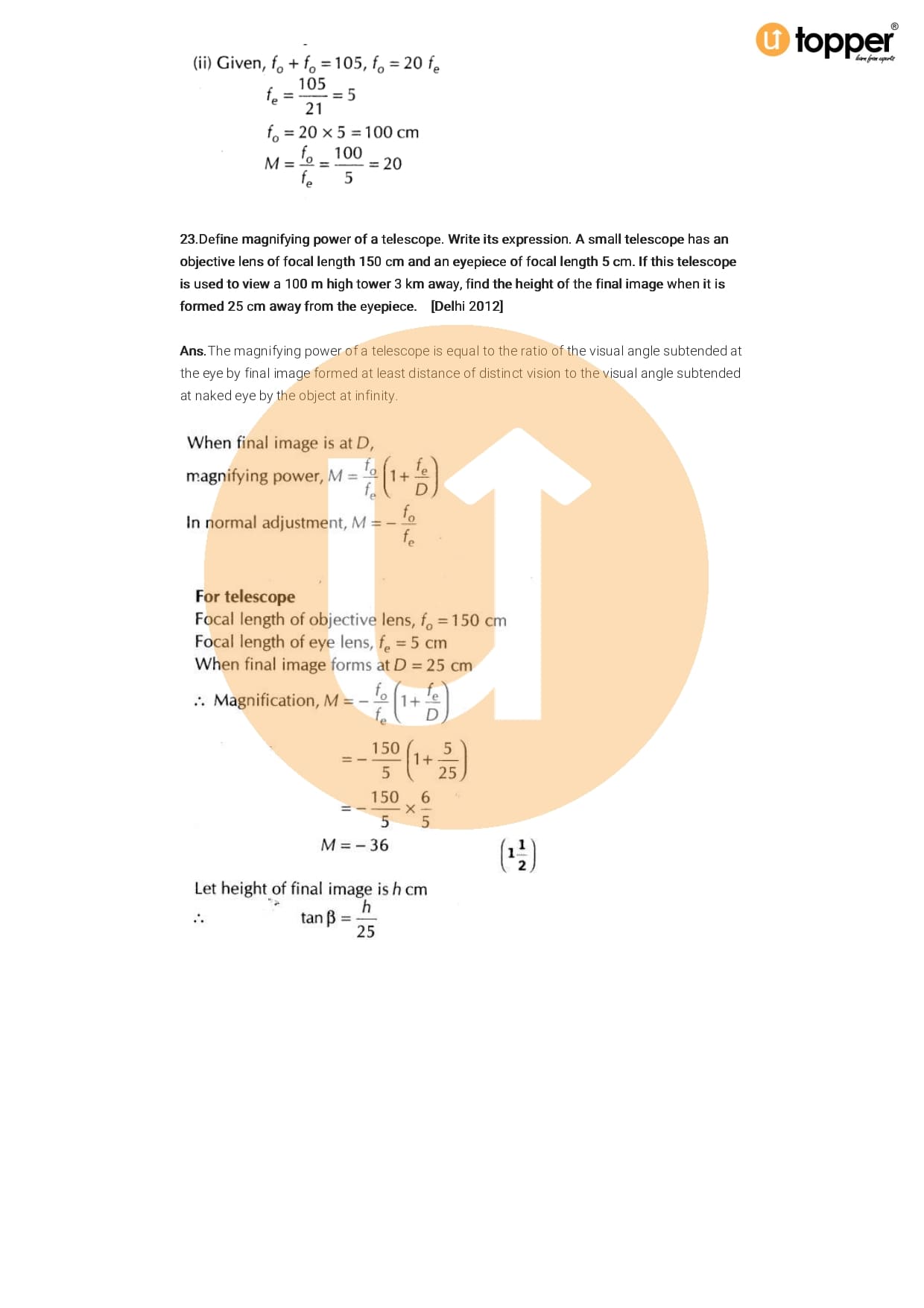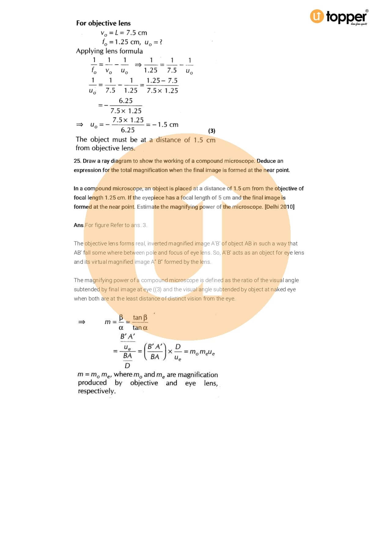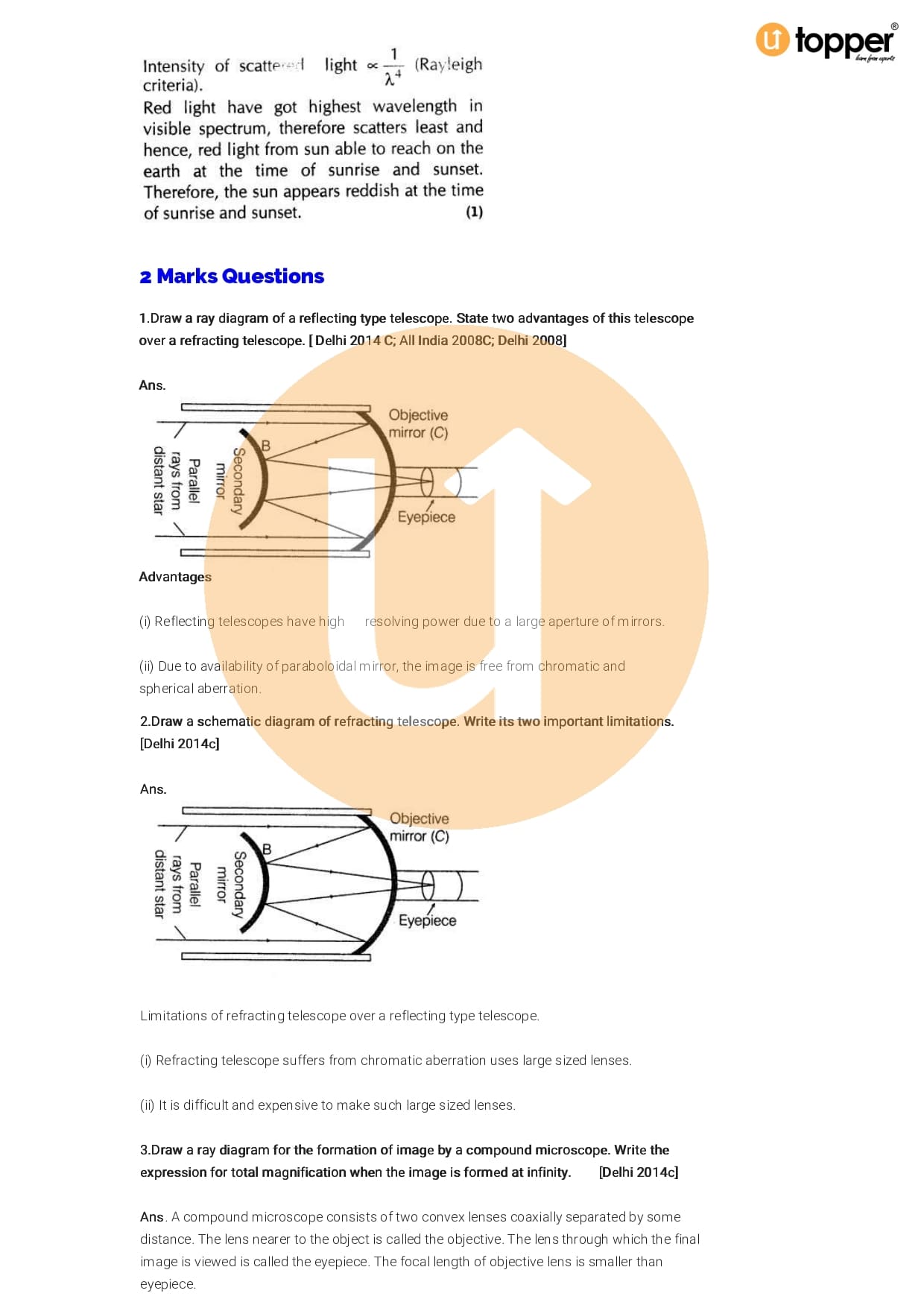 Class 12 Physics Important Question CBSE Chapter 9 – Ray Optics and Optical Instruments