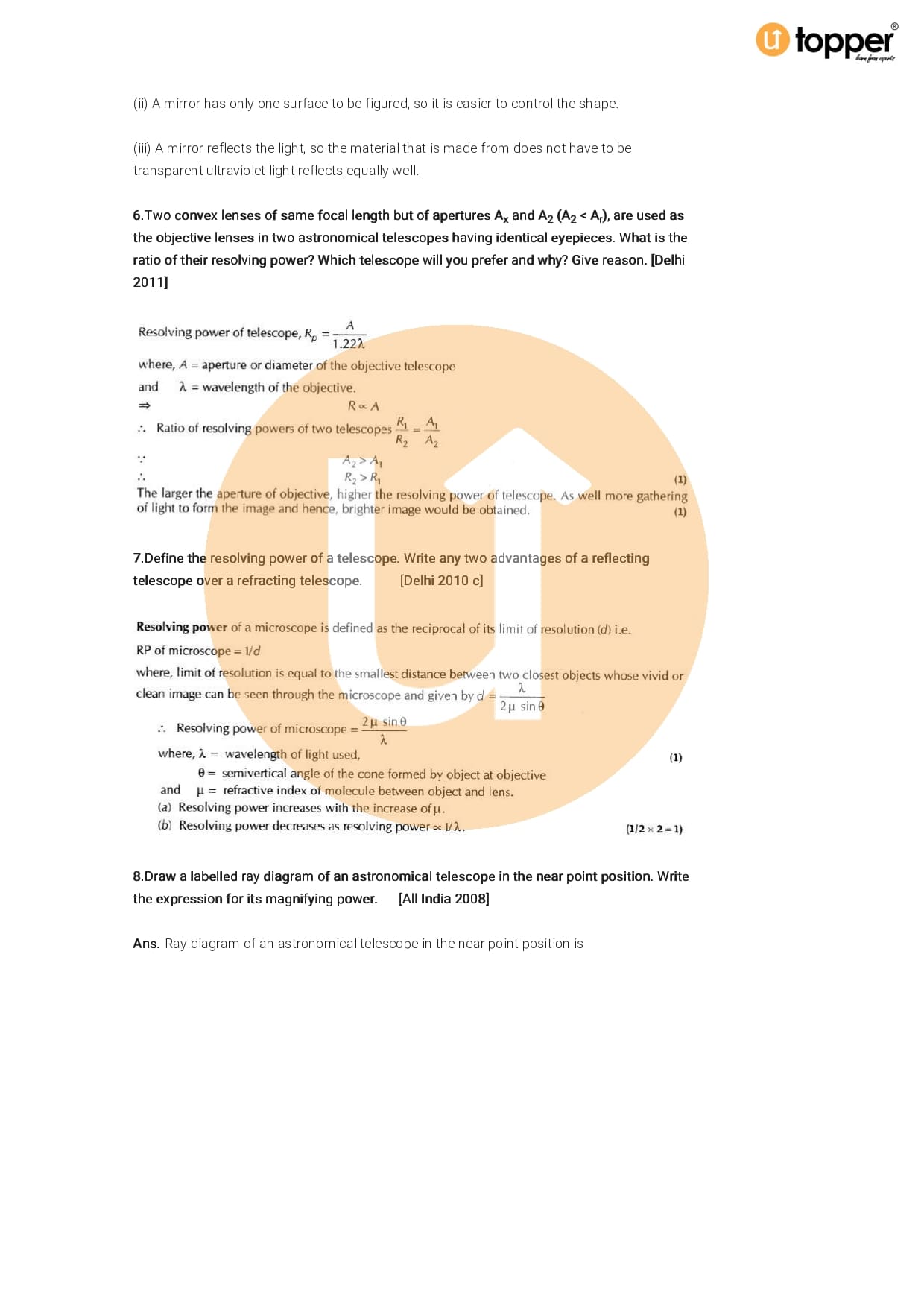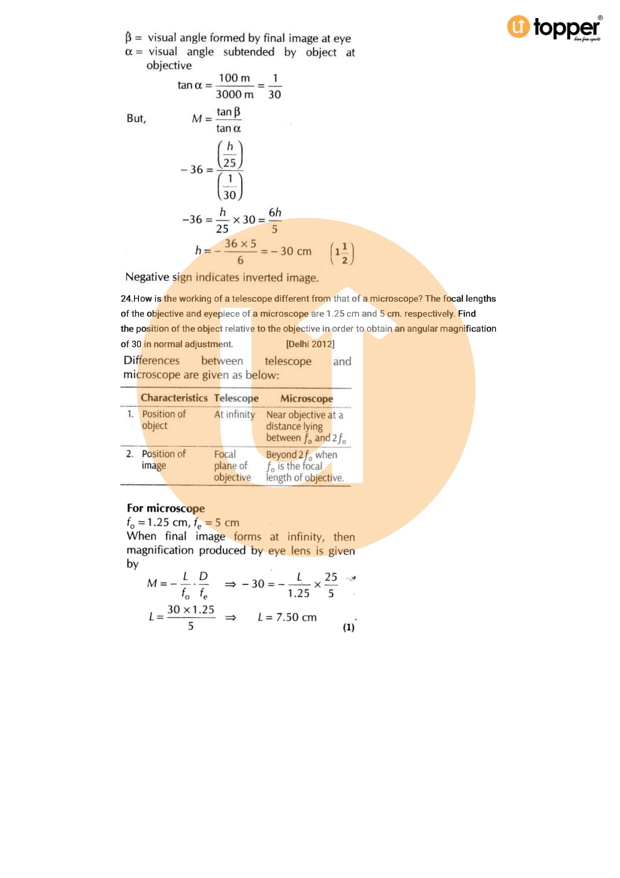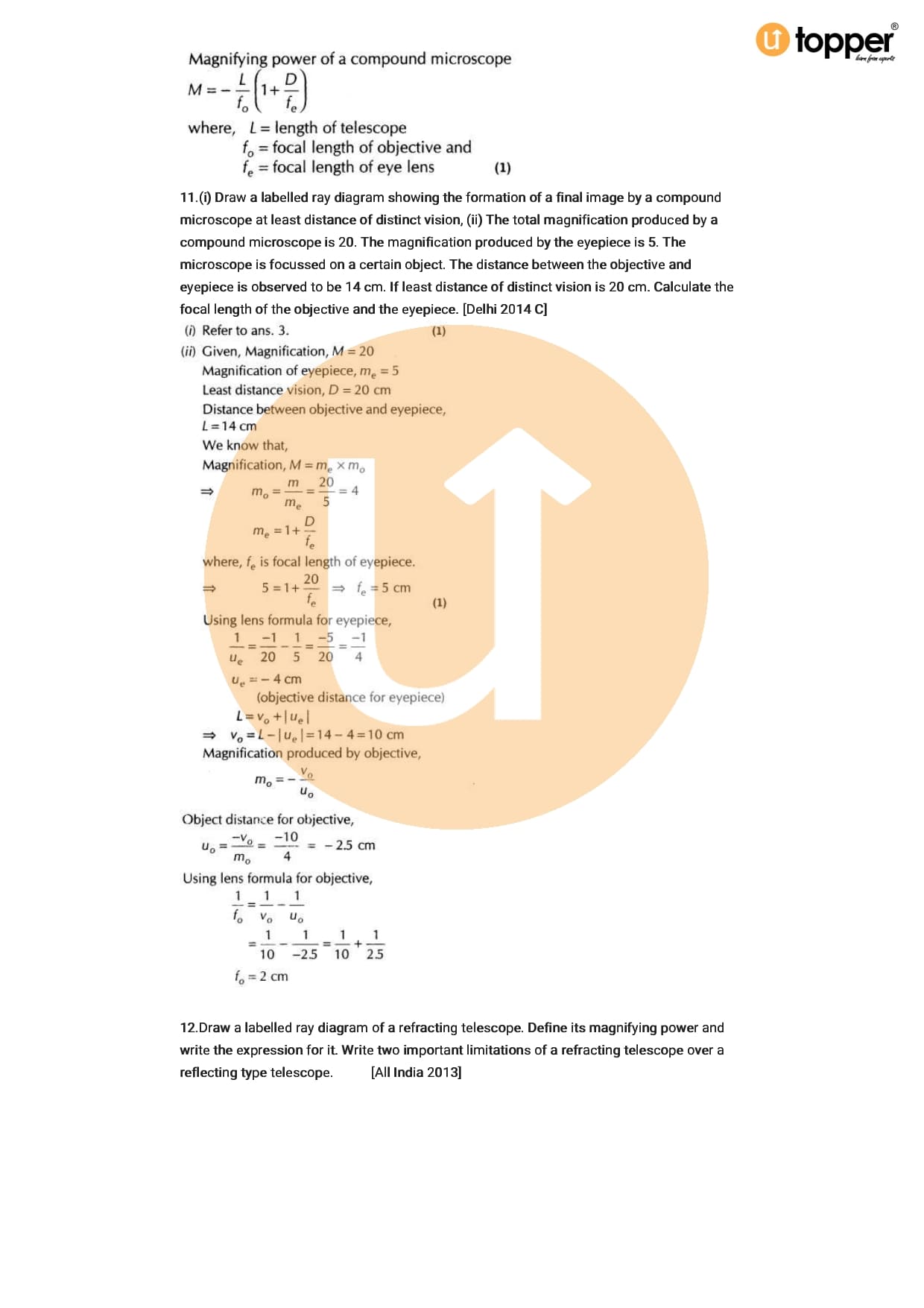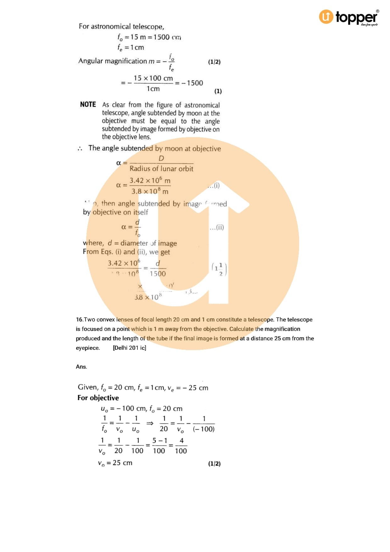 Class 12 Physics Important Question CBSE Chapter 9 – Ray Optics and Optical Instruments