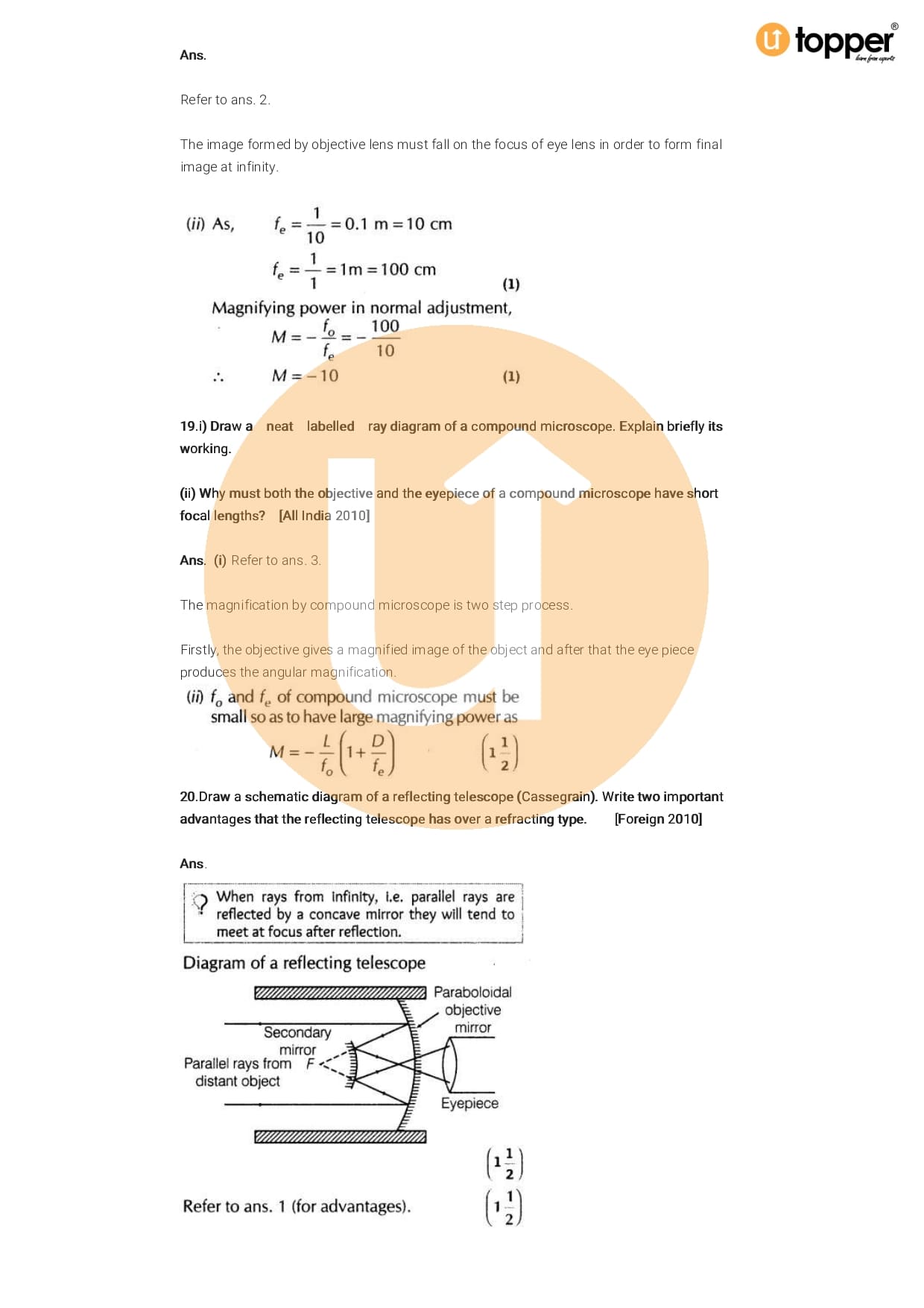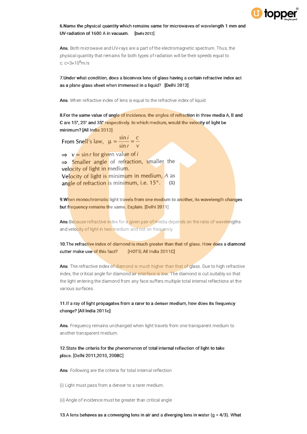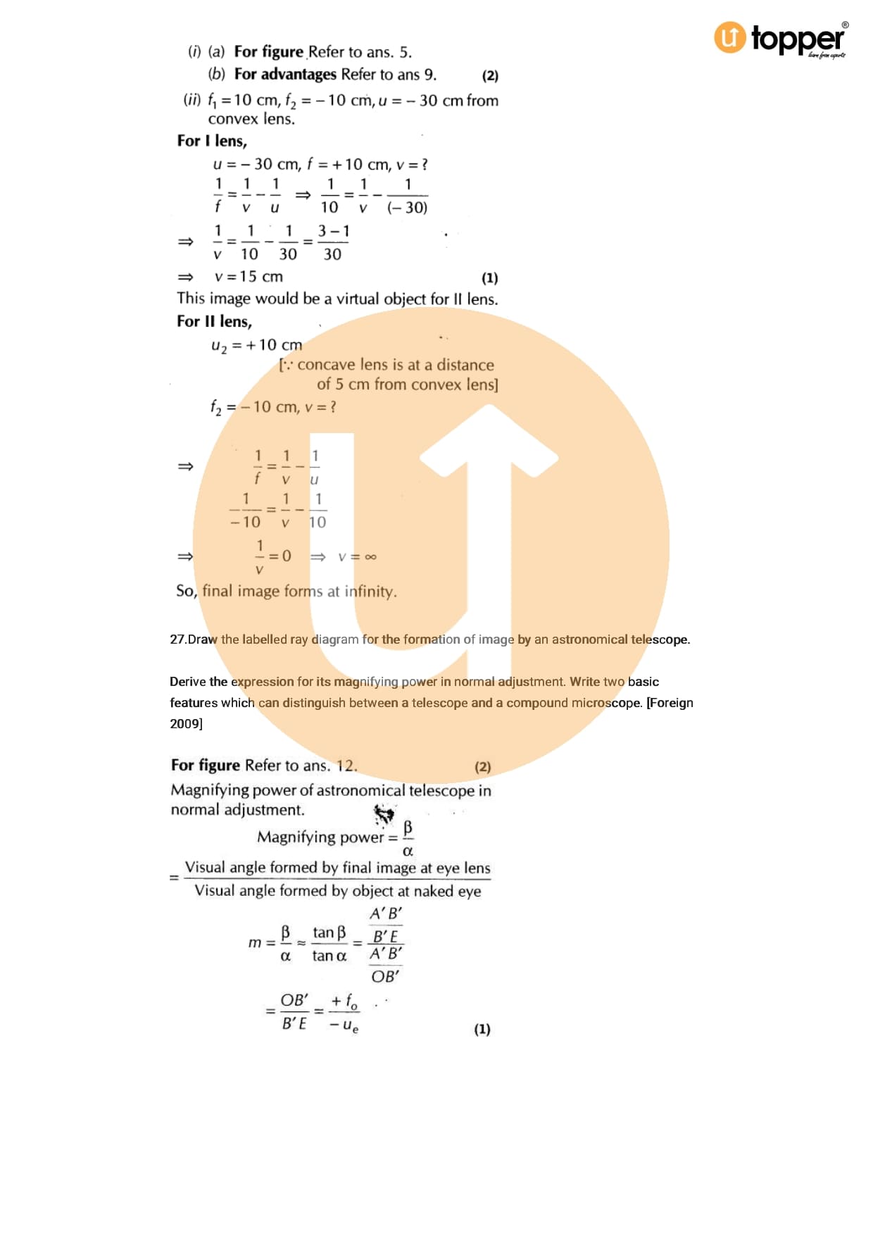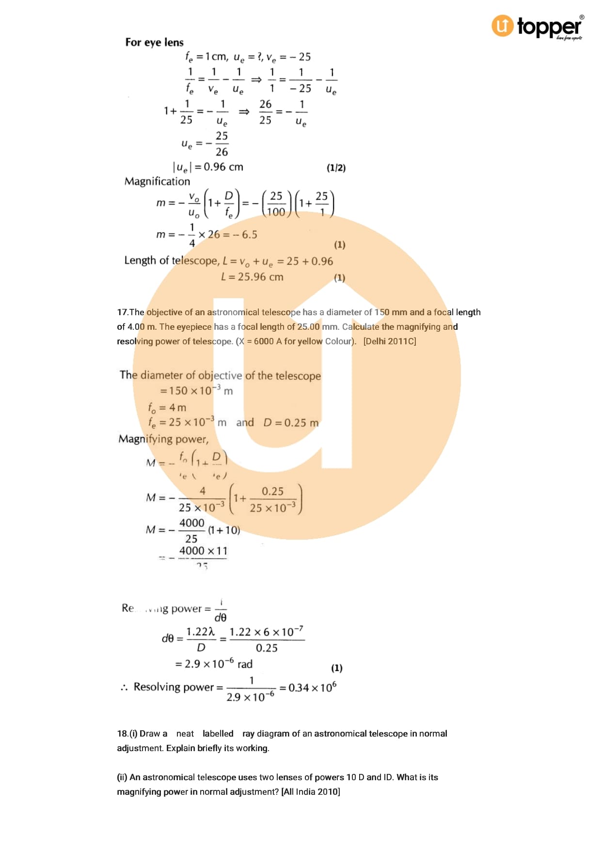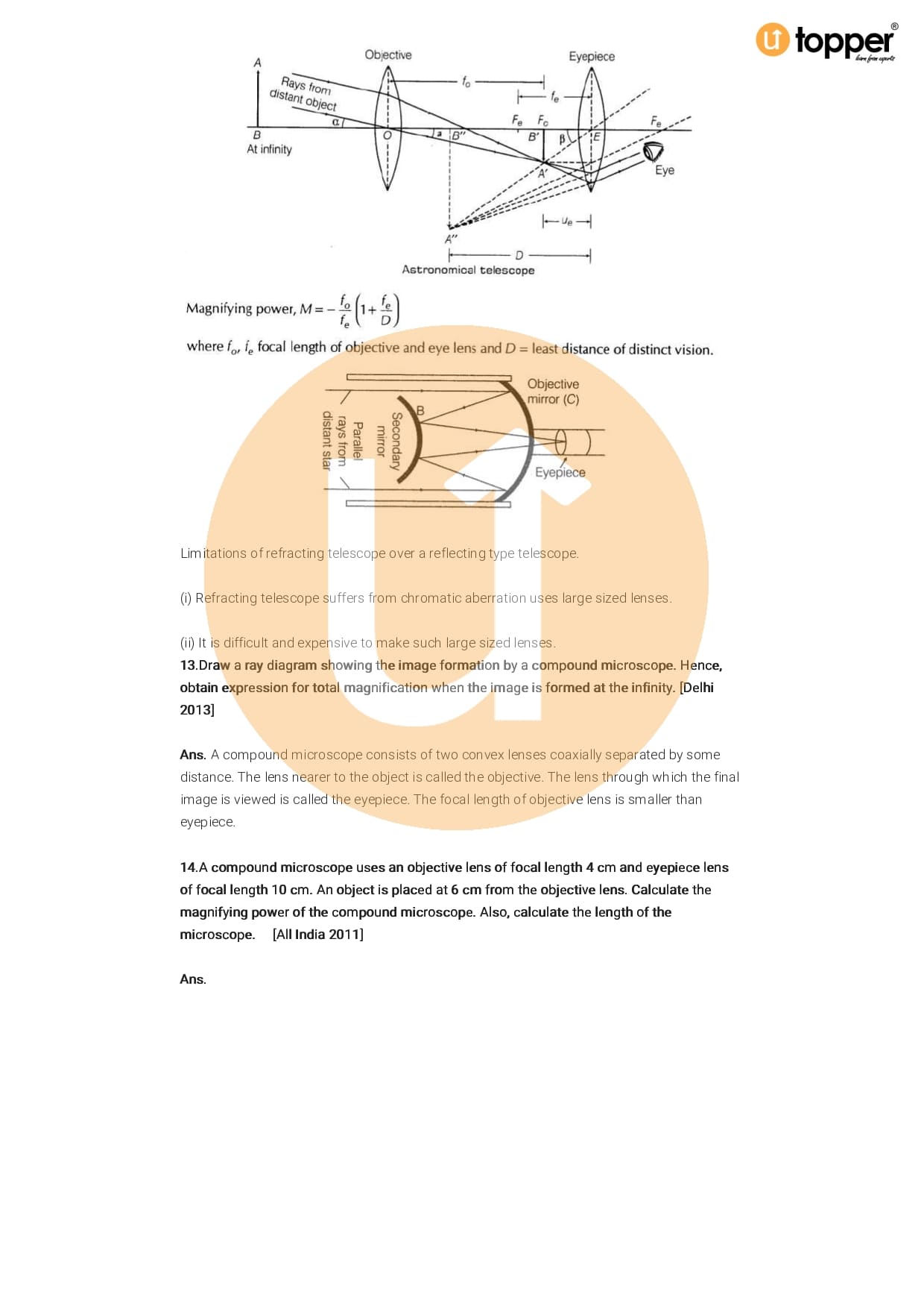 Class 12 Physics Important Question CBSE Chapter 9 – Ray Optics and Optical Instruments