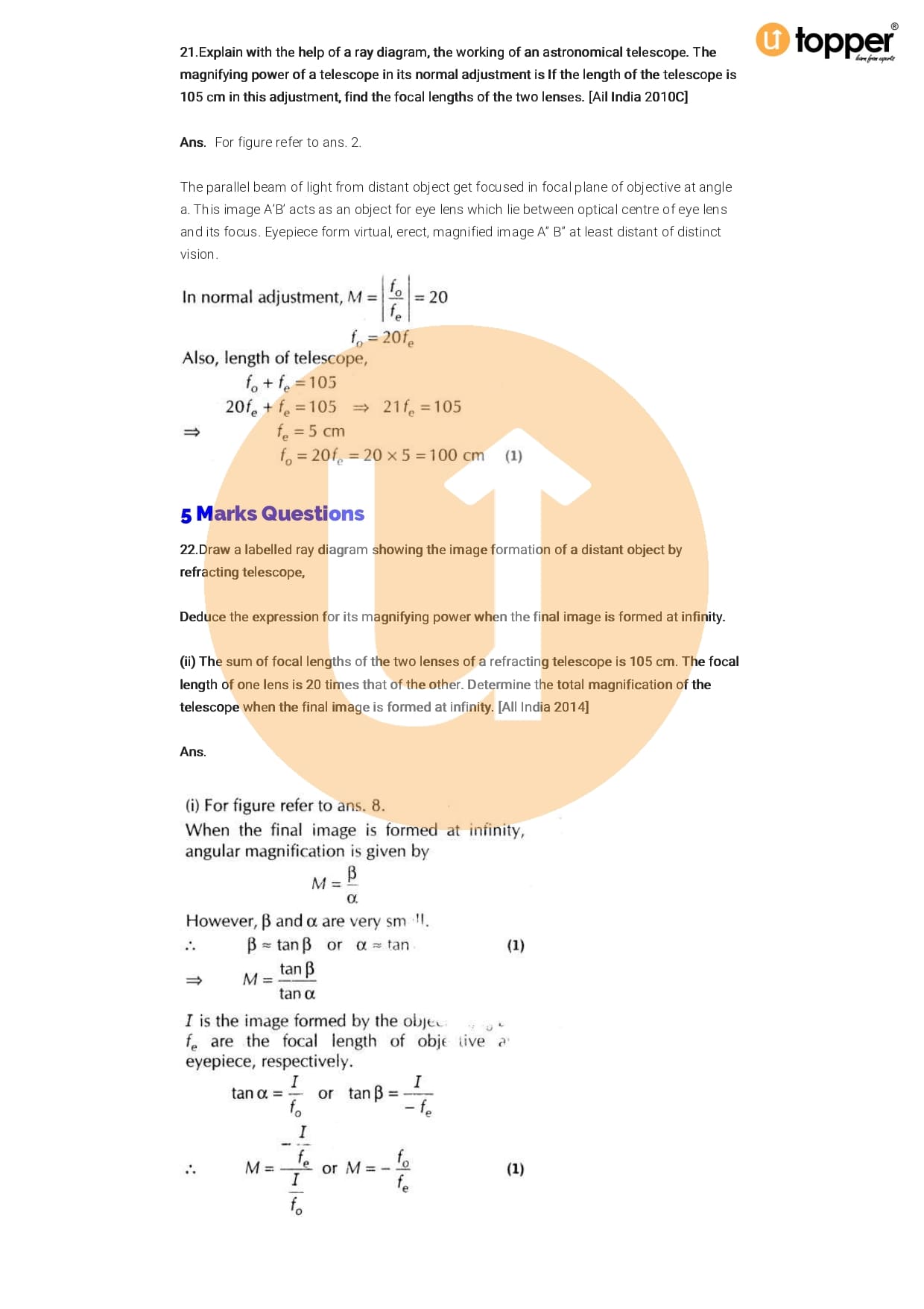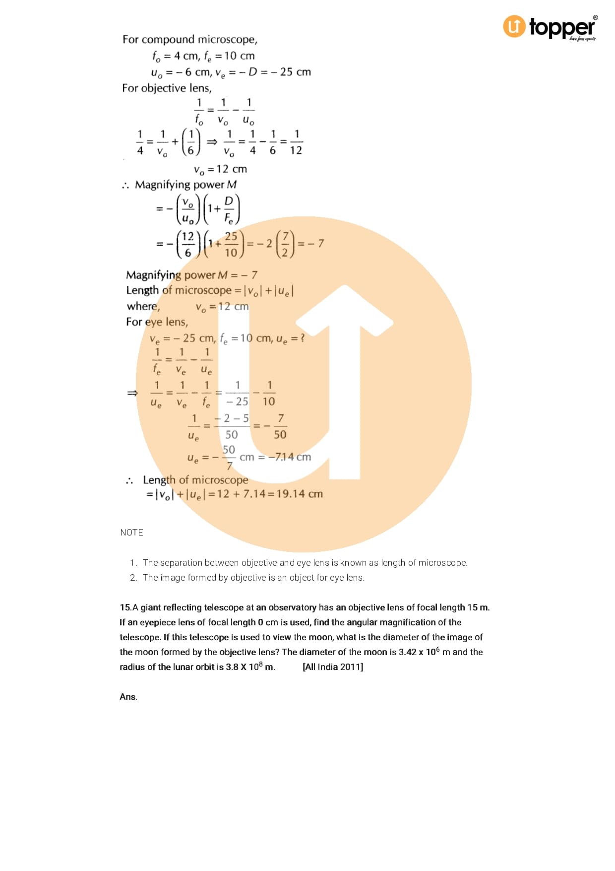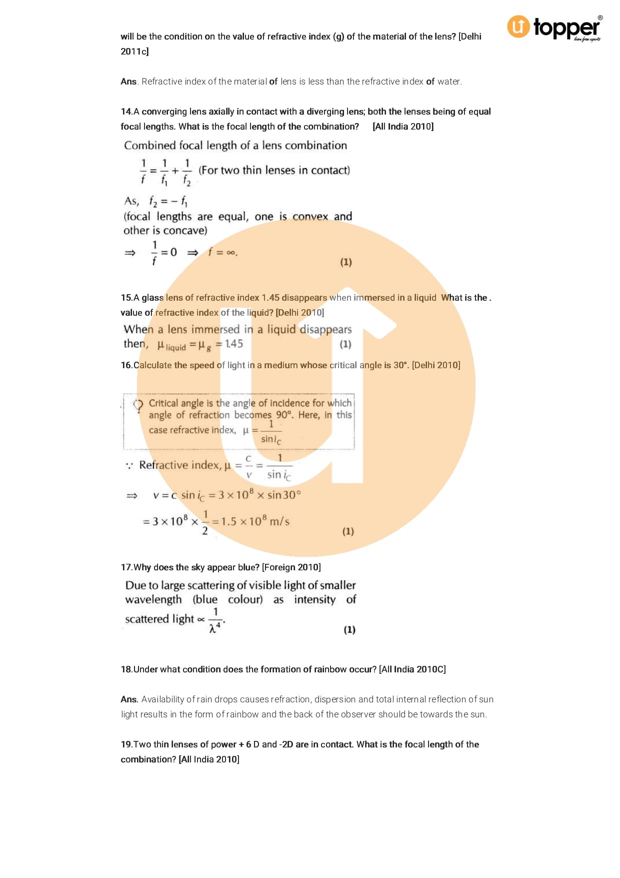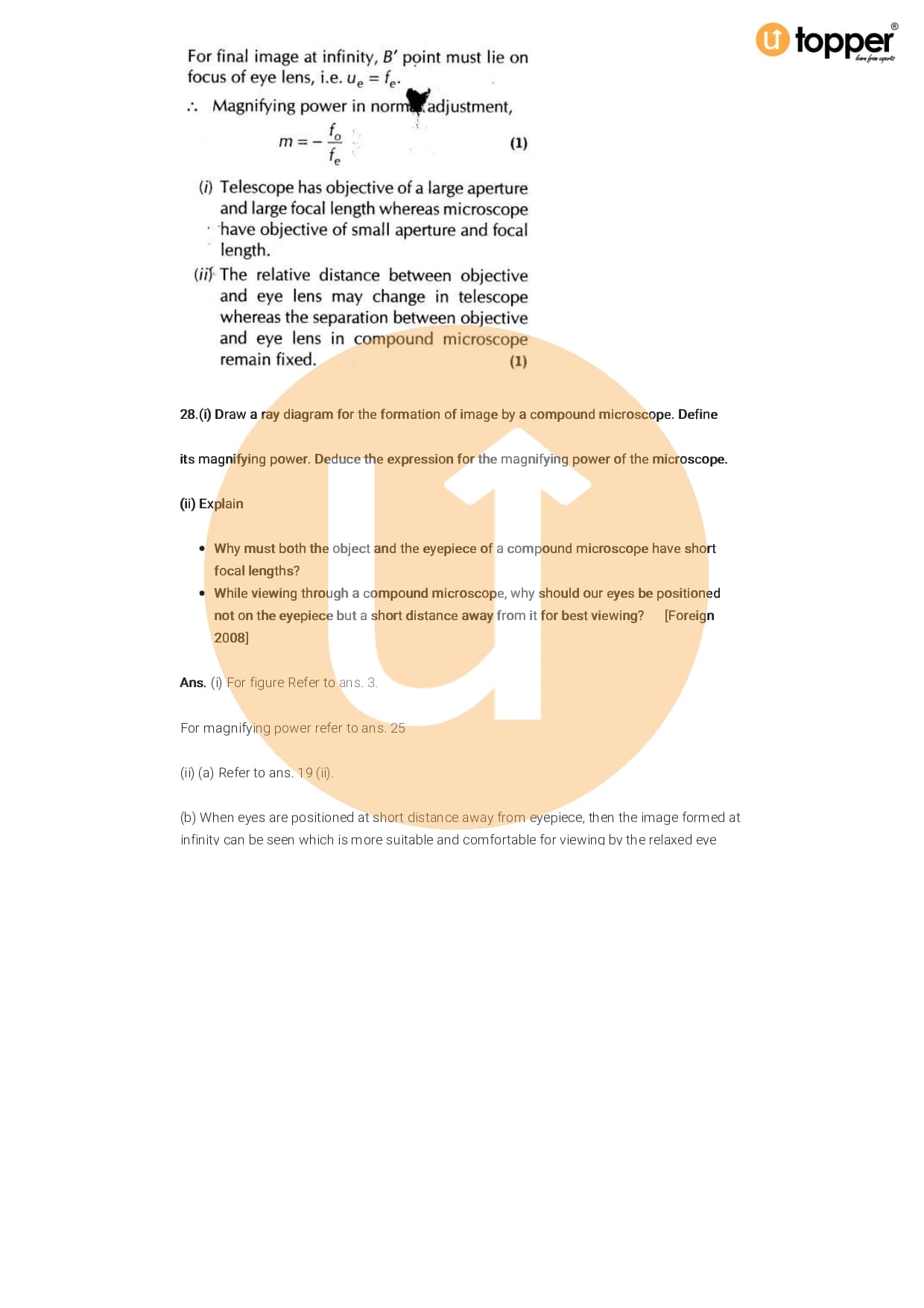 Class 12 Physics Important Question CBSE Chapter 9 – Ray Optics and Optical Instruments