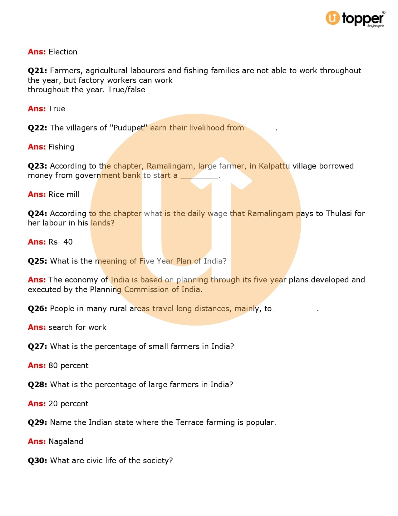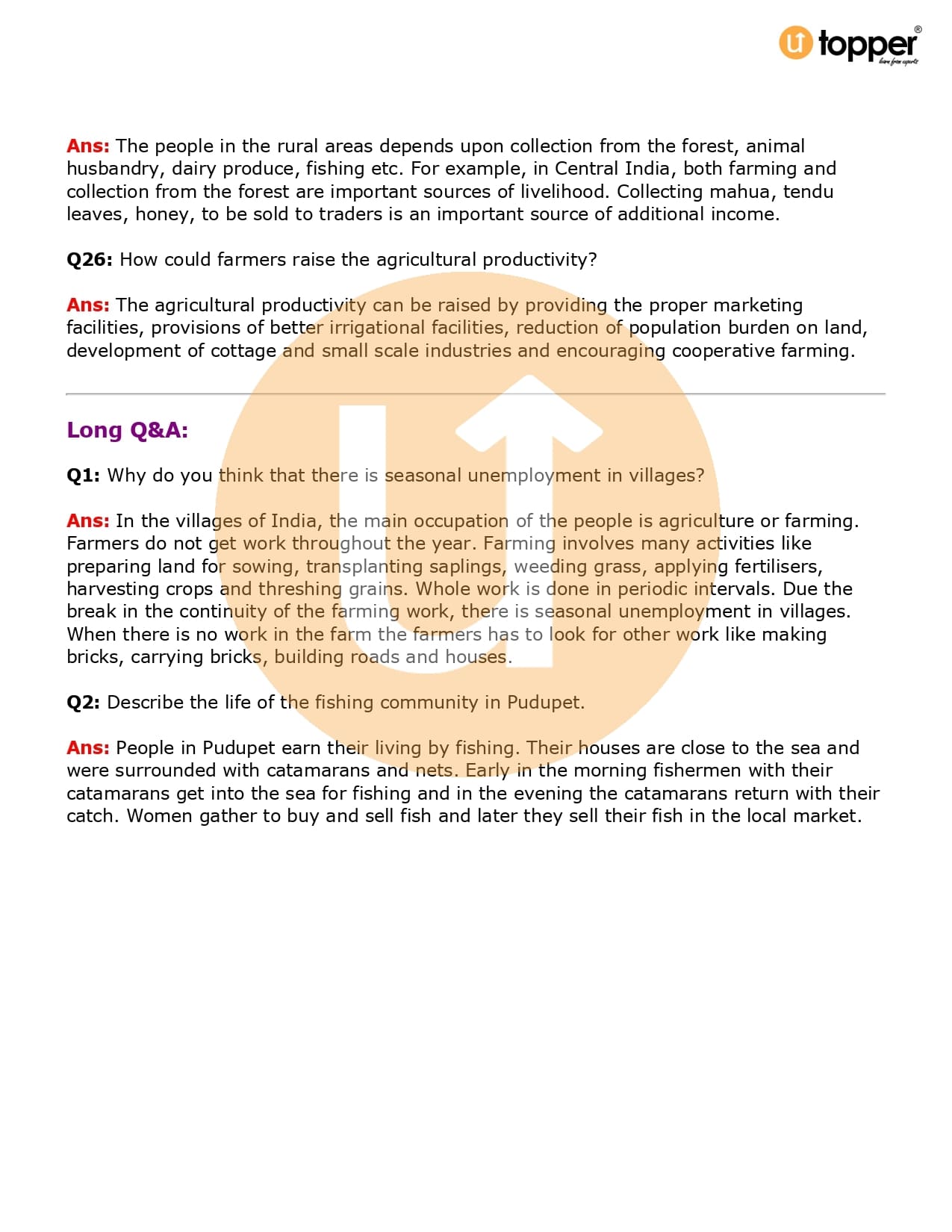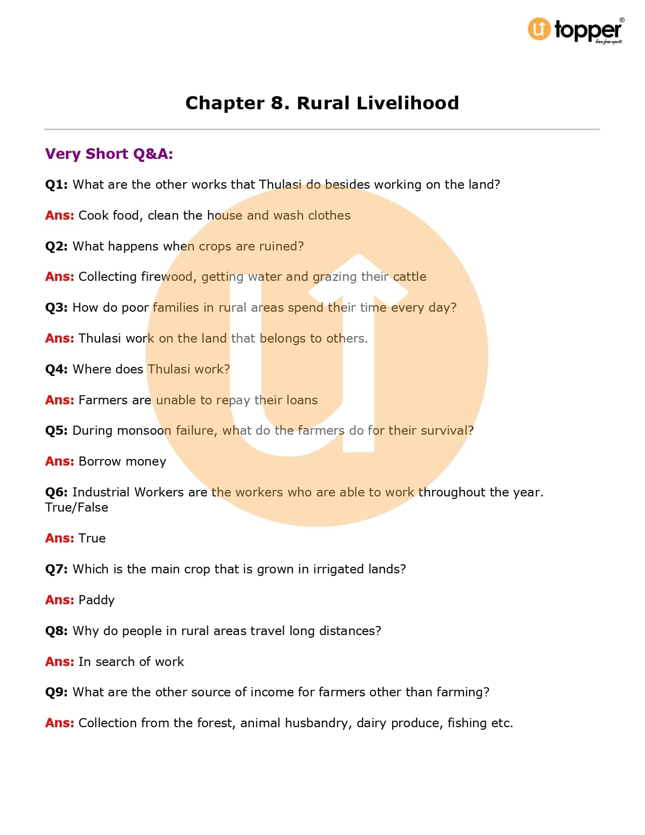 Class 6 Civics Important Questions Chapter 8 Pdf – Rural Livelihoods