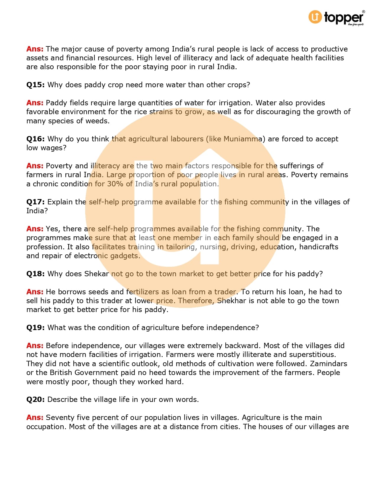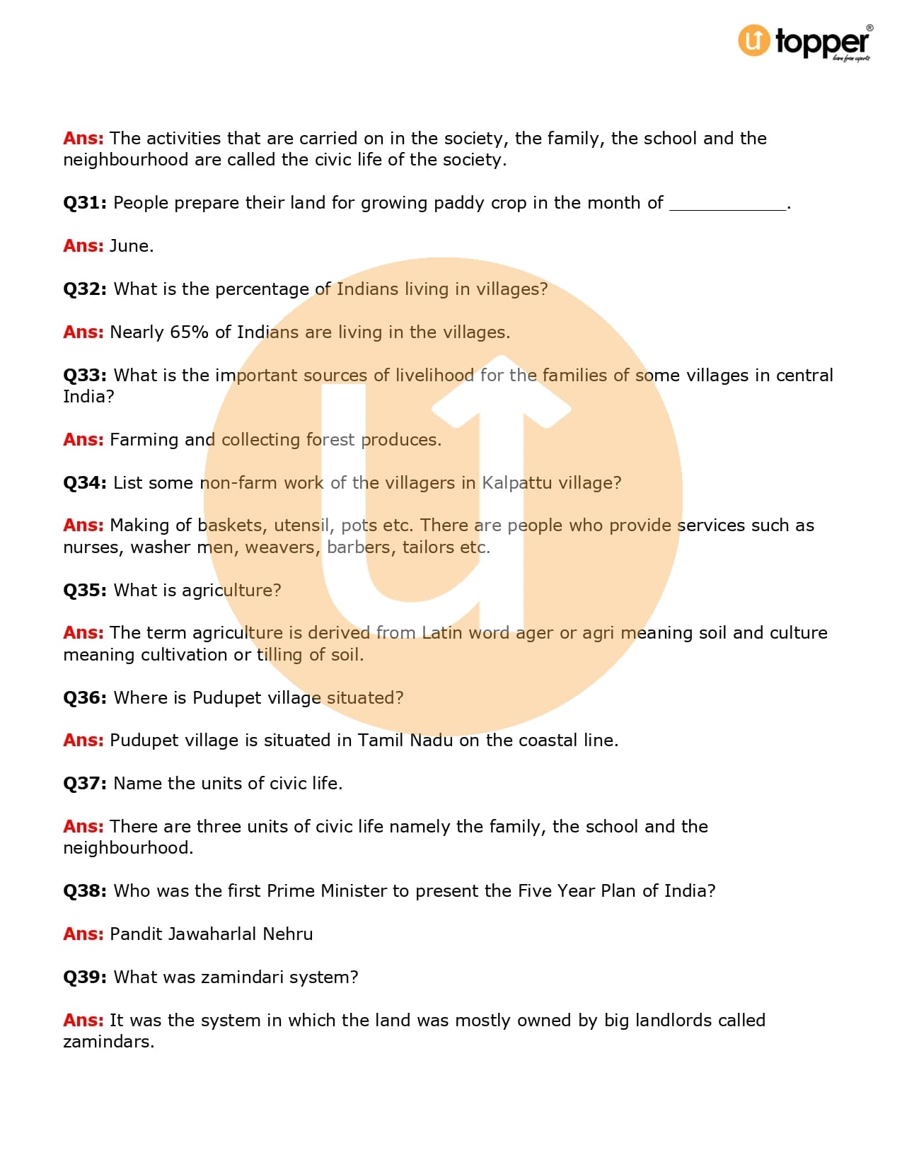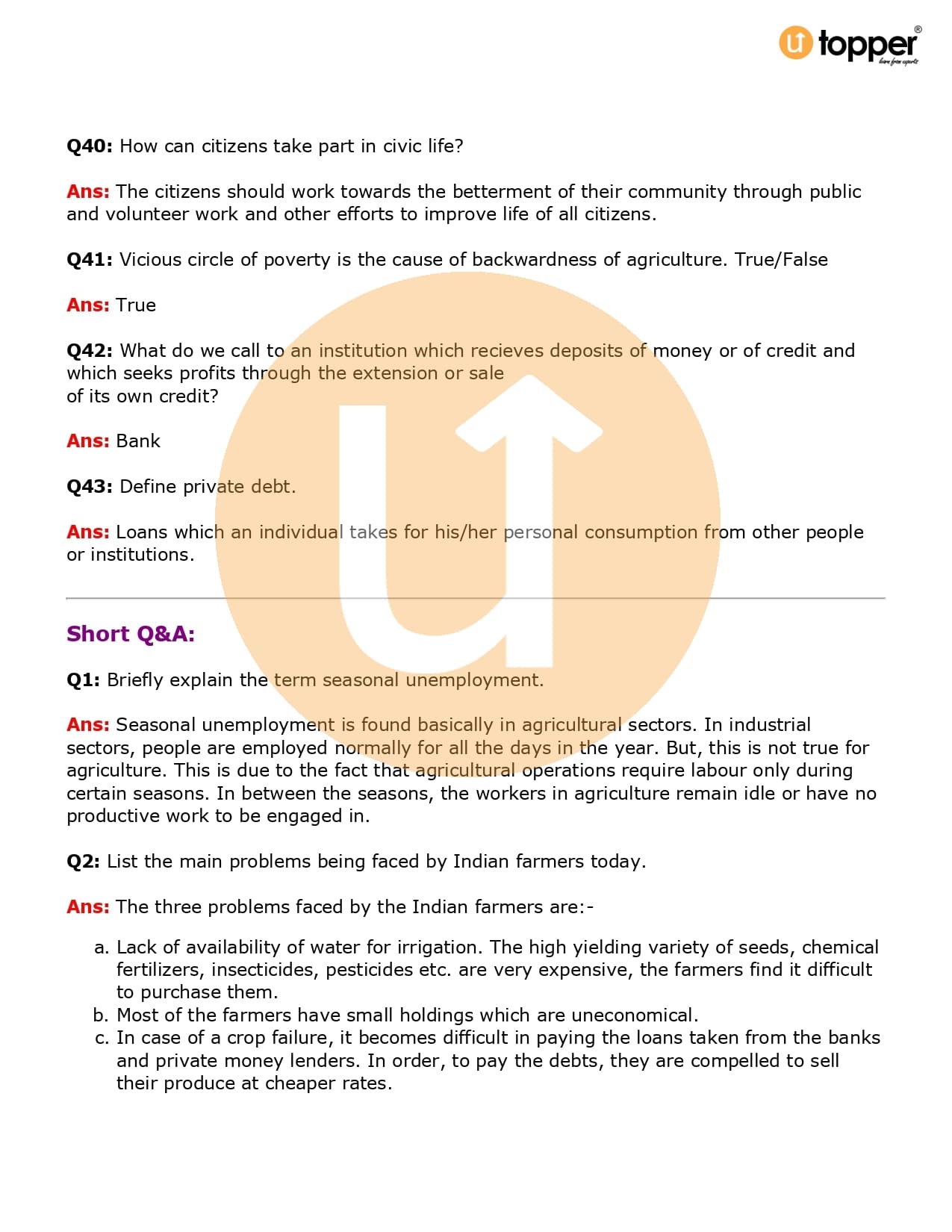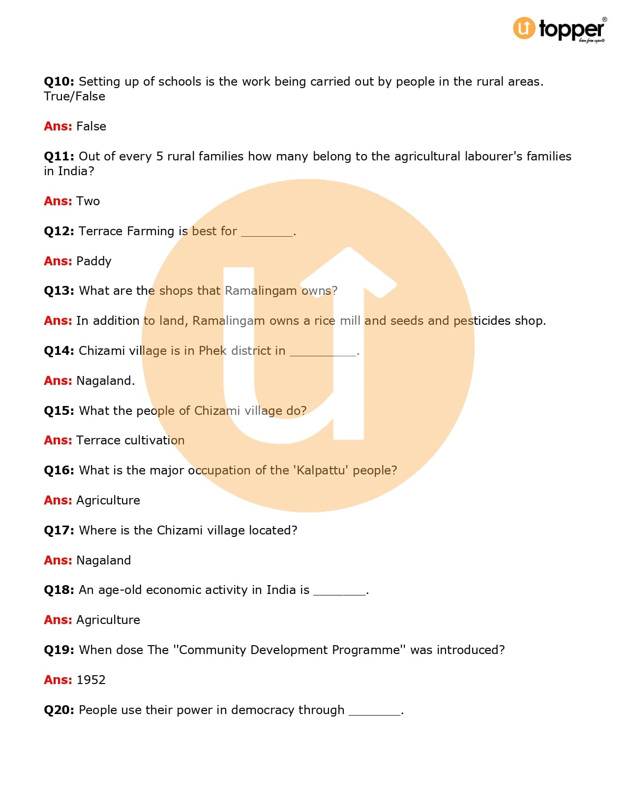 Class 6 Civics Important Questions Chapter 8 Pdf – Rural Livelihoods