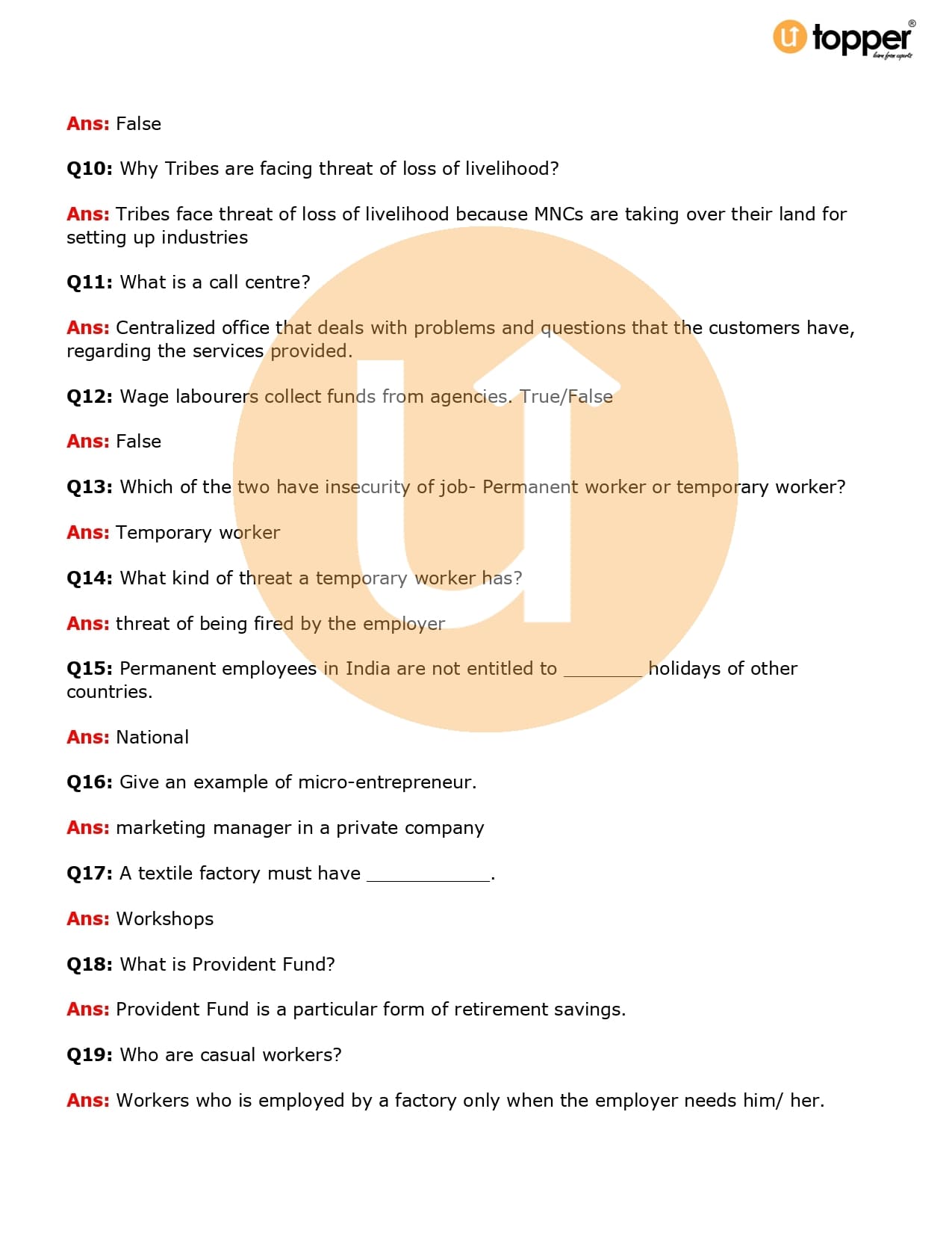 Class 6 Civics Important Questions Chapter 9 Pdf – Urban Livelihoods