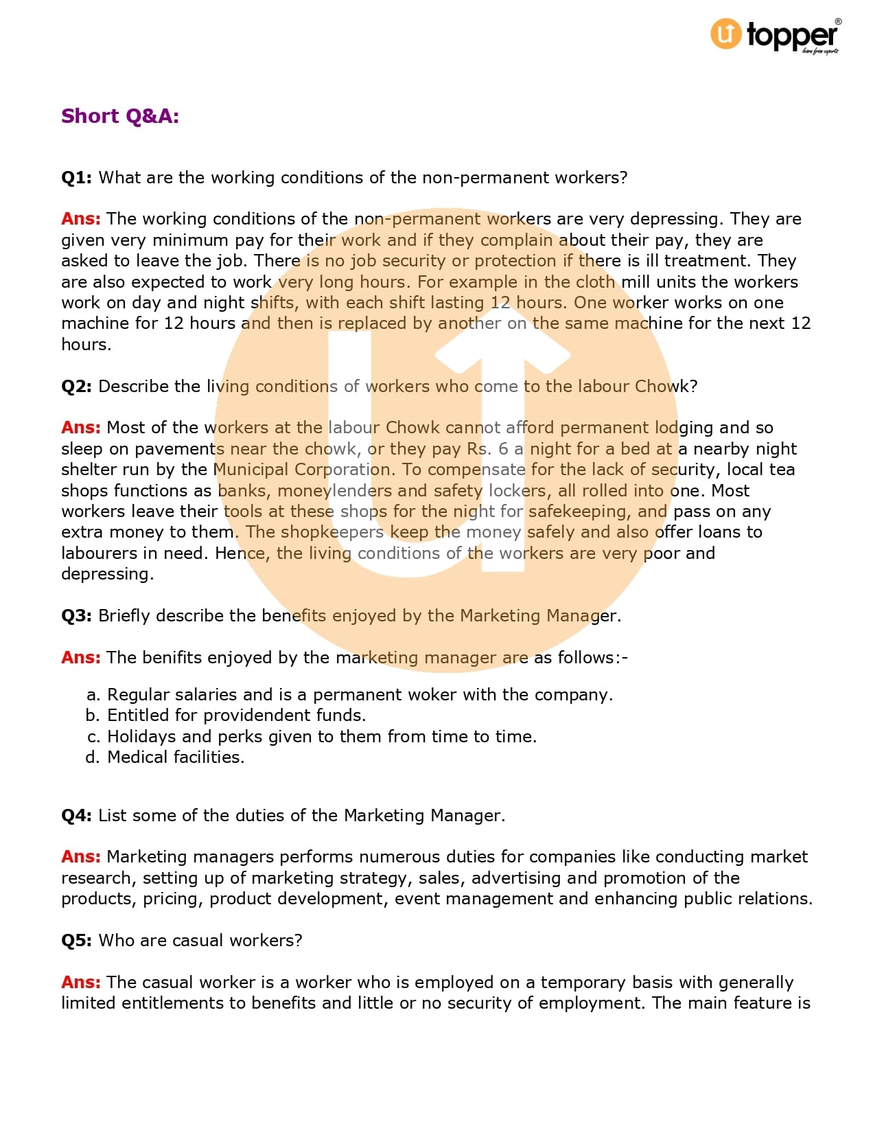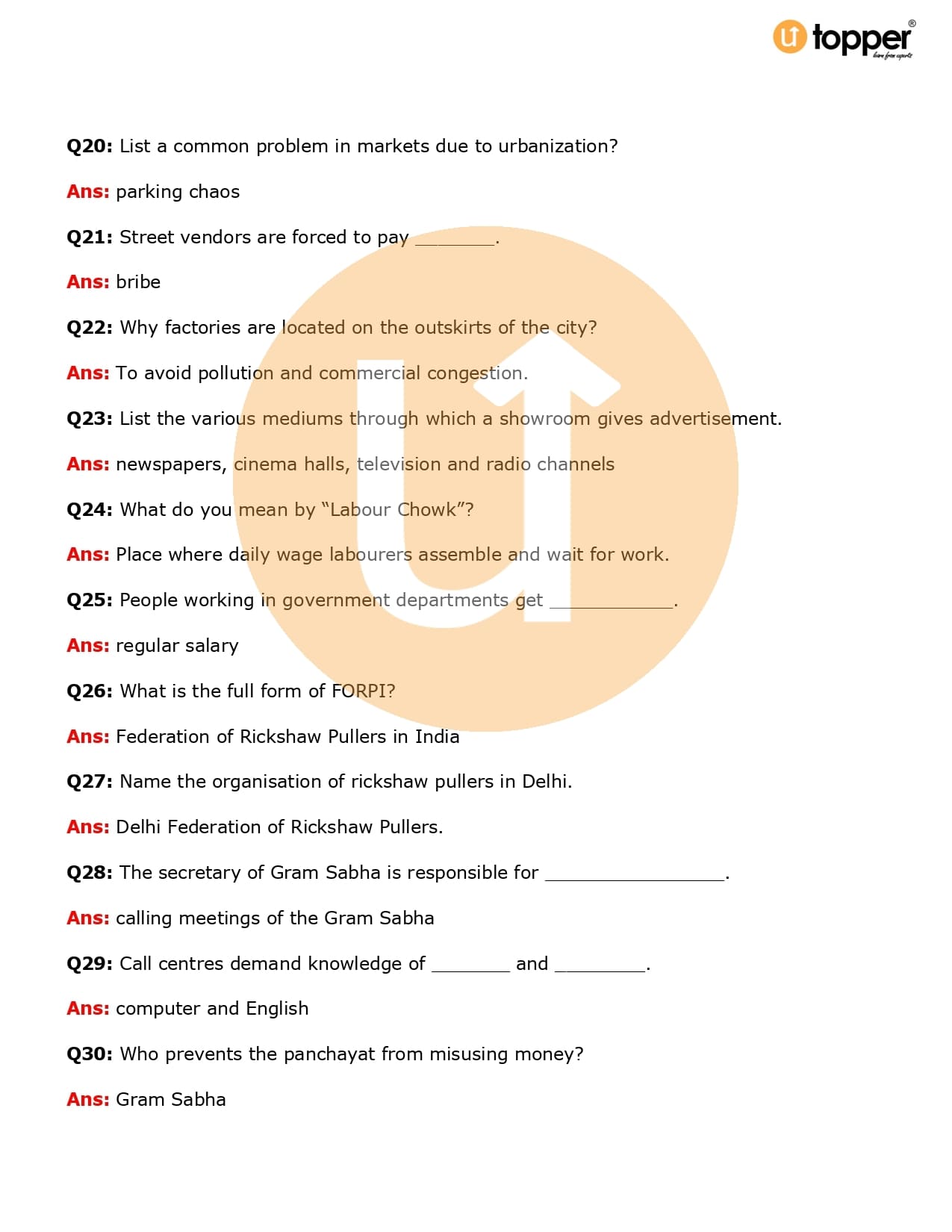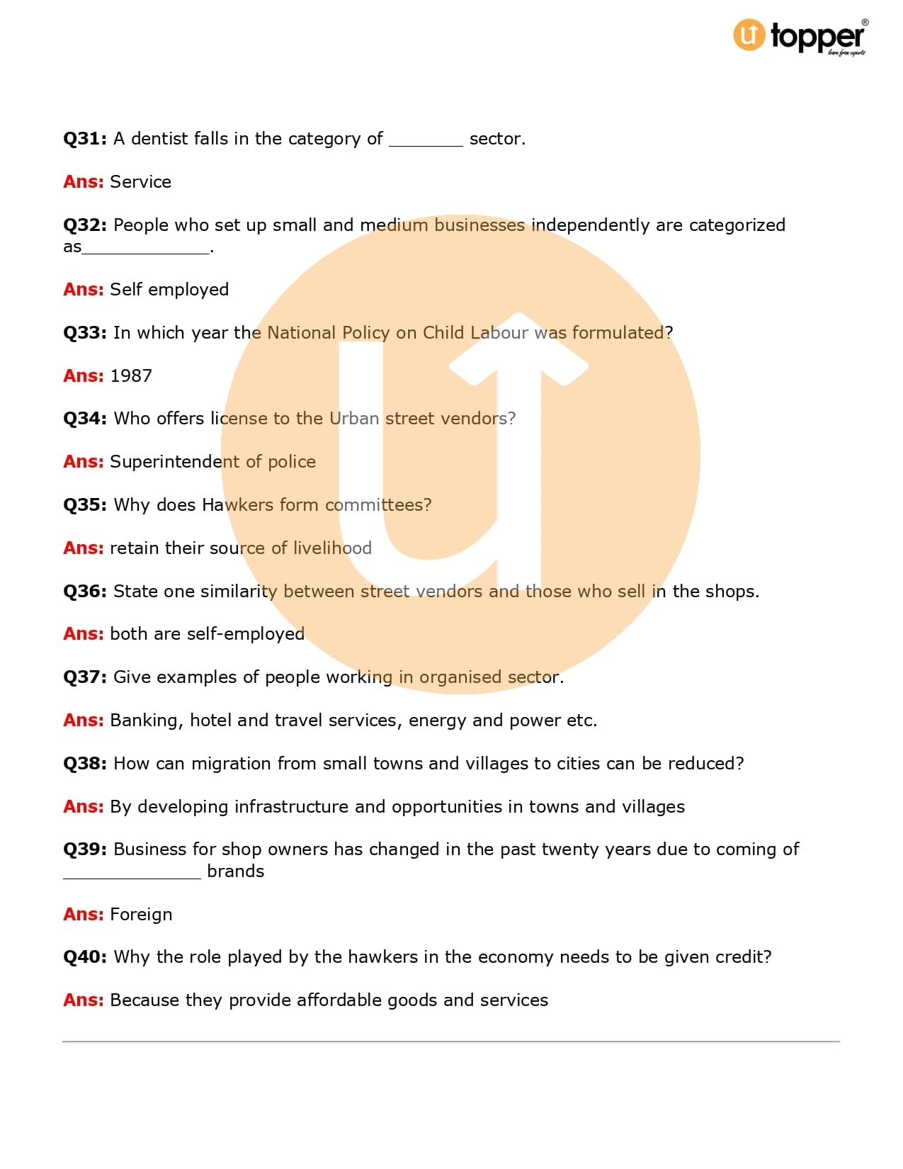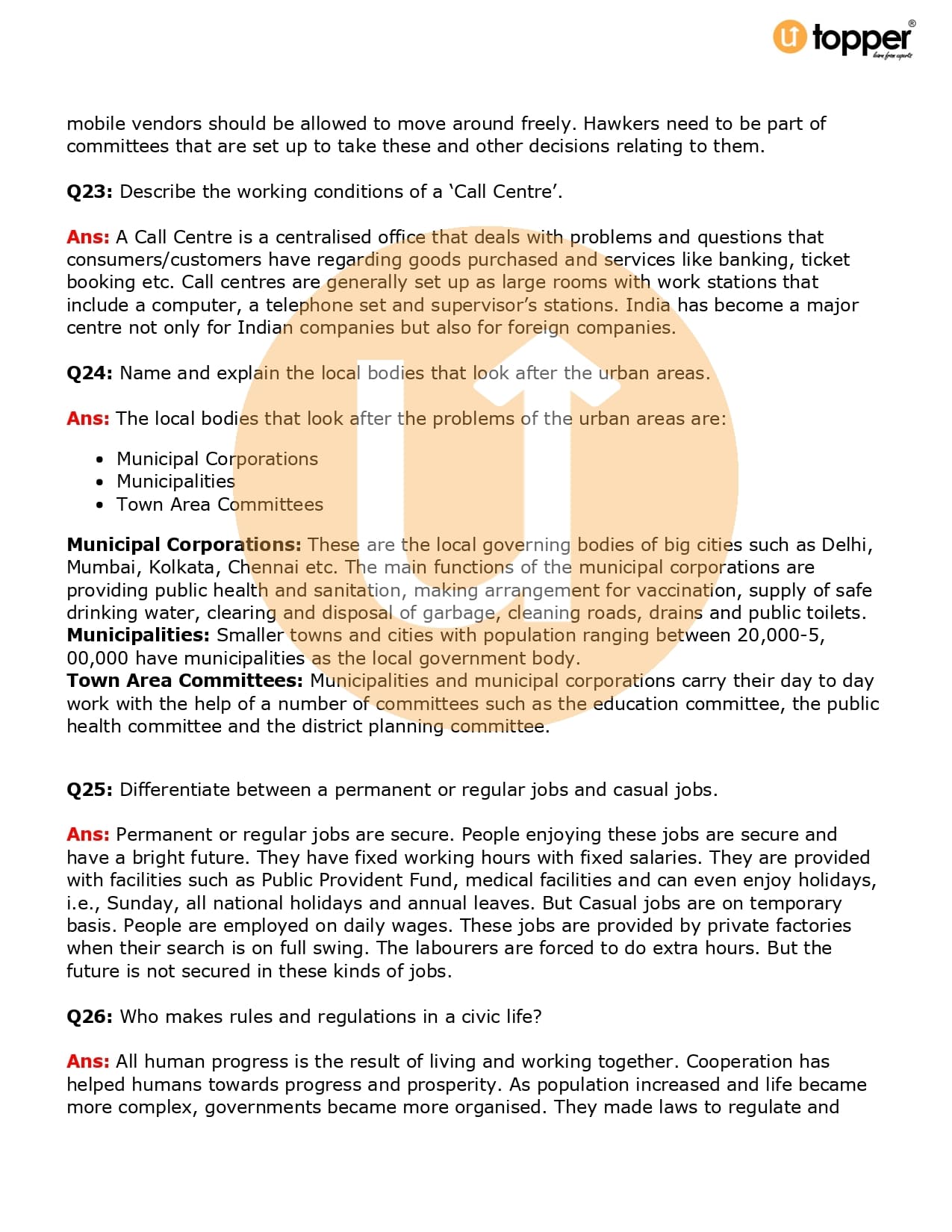 Class 6 Civics Important Question CBSE Chapter 9 – Urban Livelihoods
