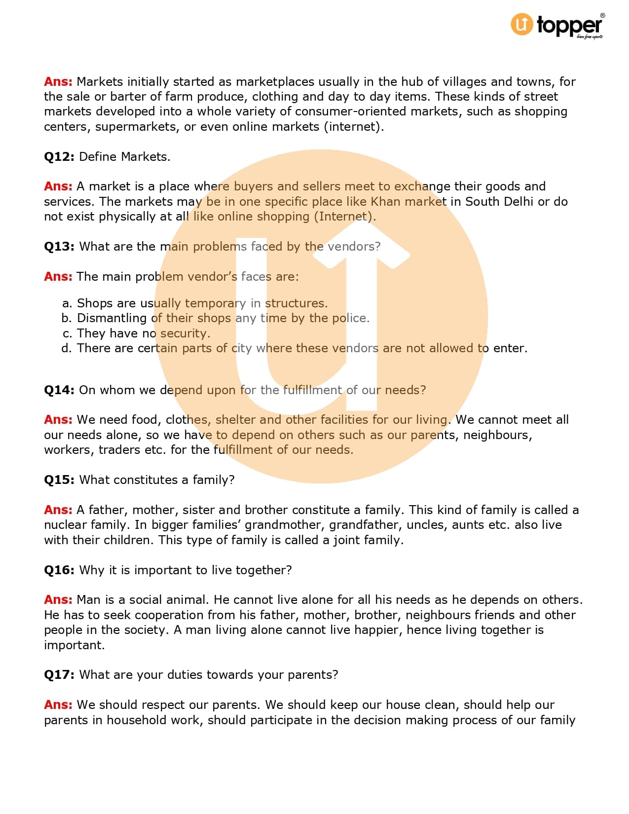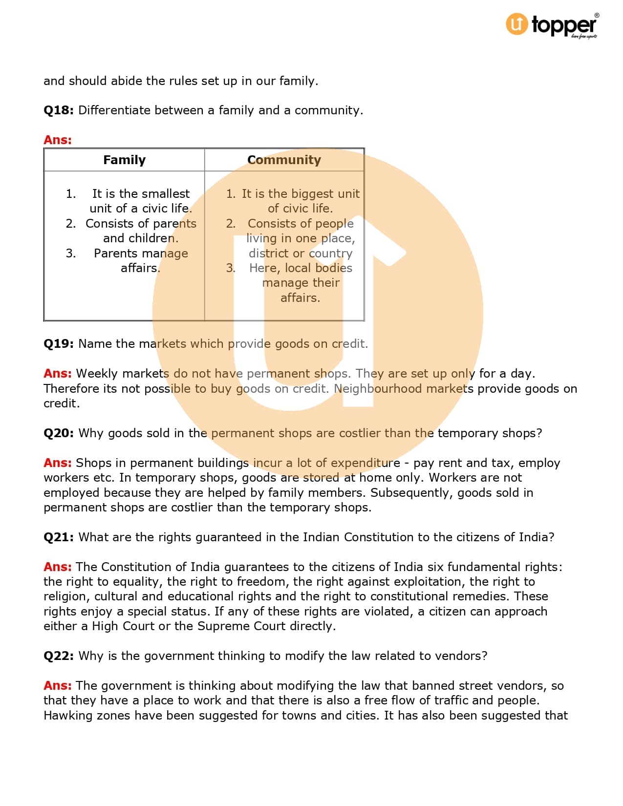Important Question Class 6 Civics Chapter 9