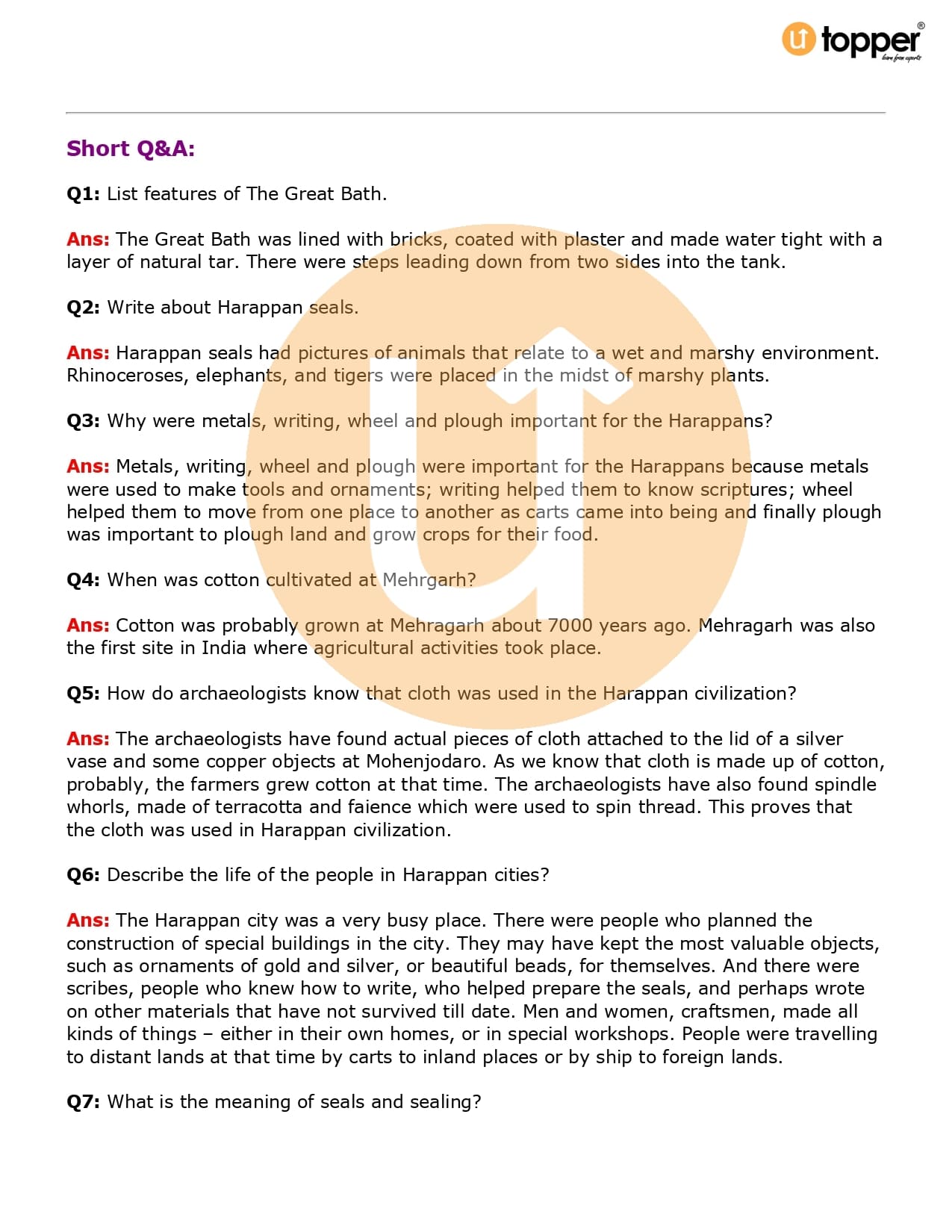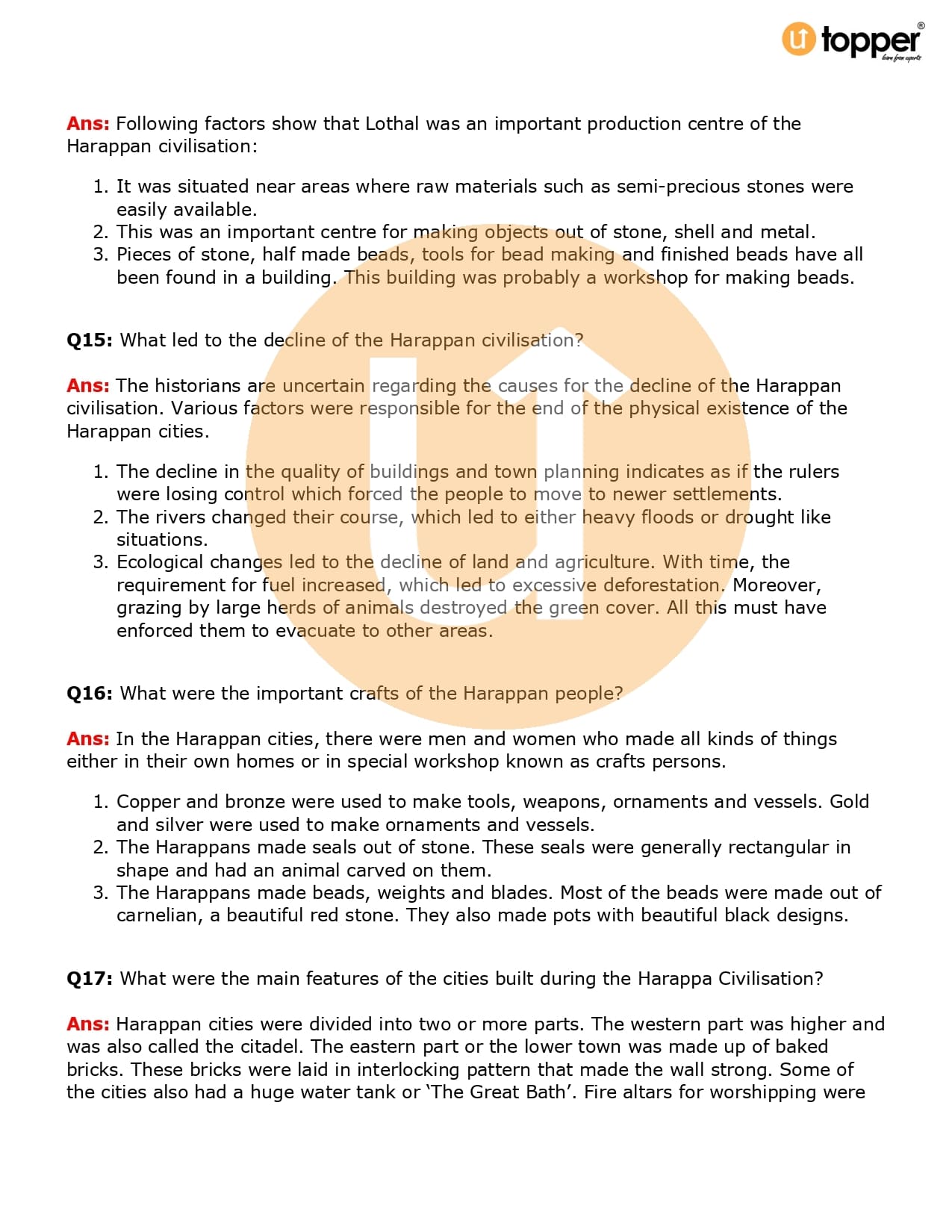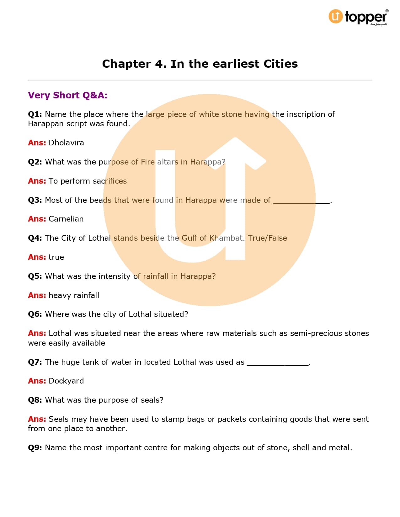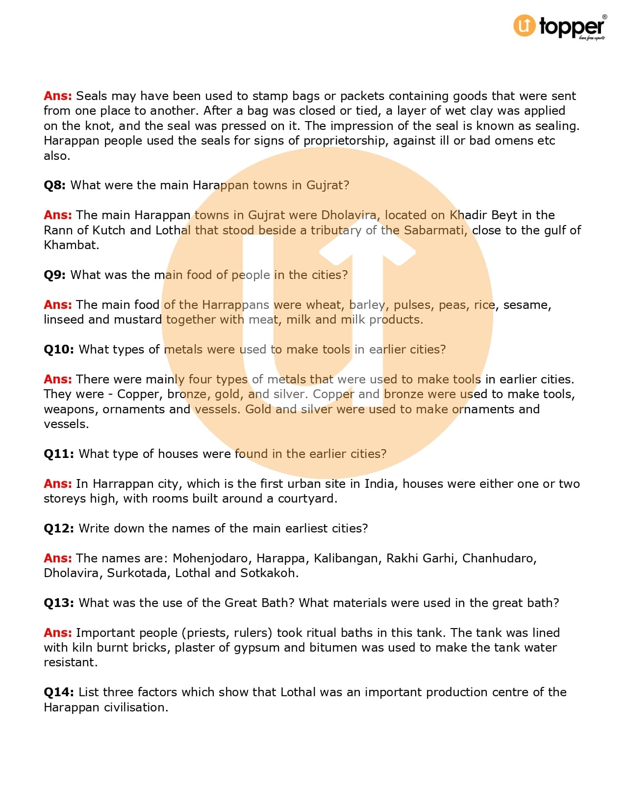 Class 6 History Important Questions Chapter 4 Pdf – In the Earliest Cities