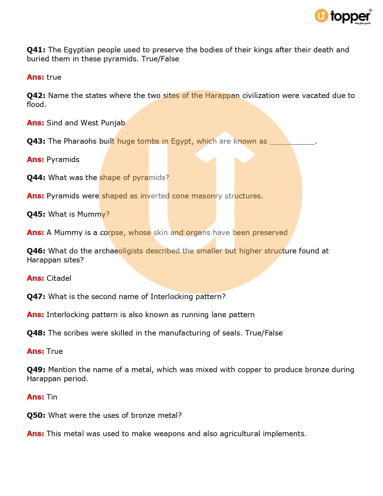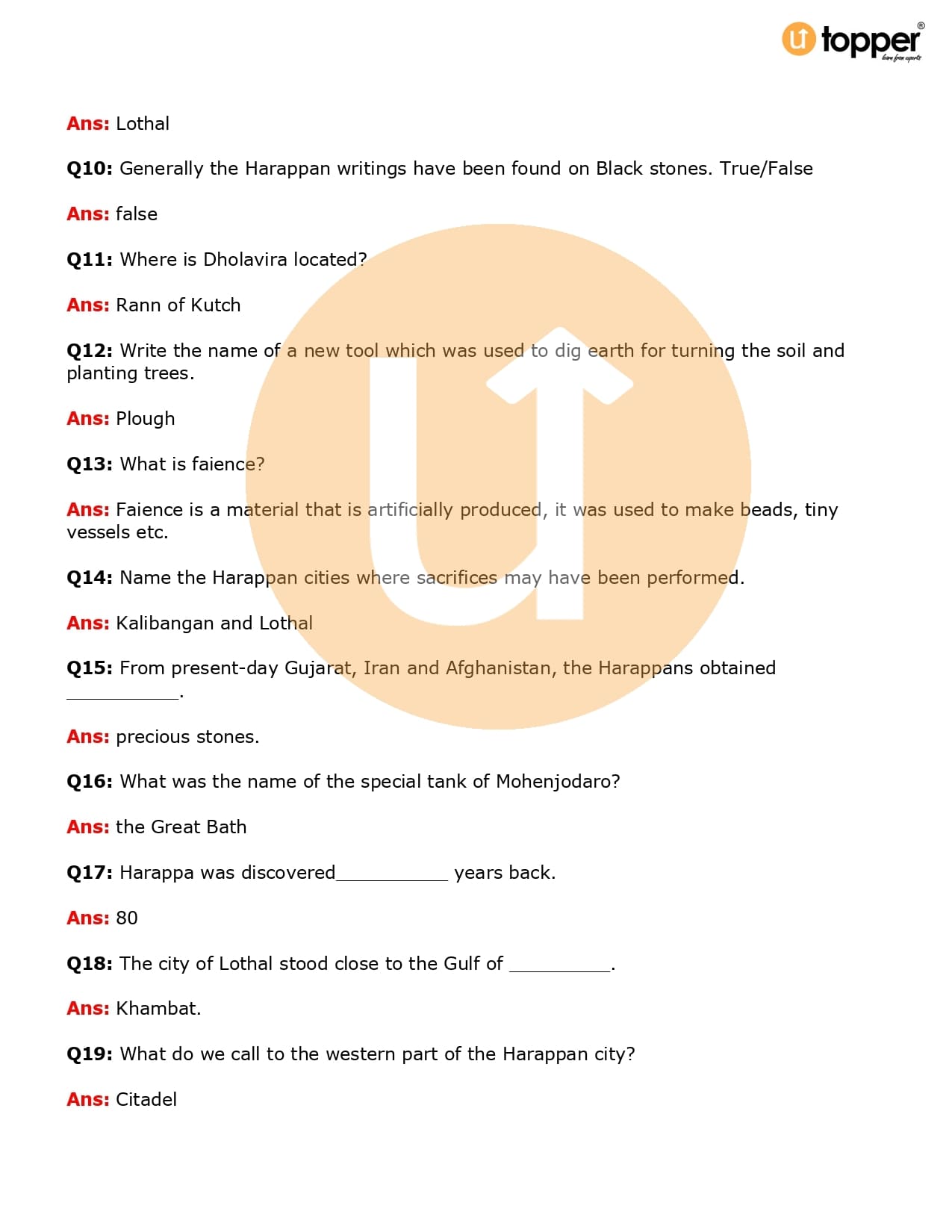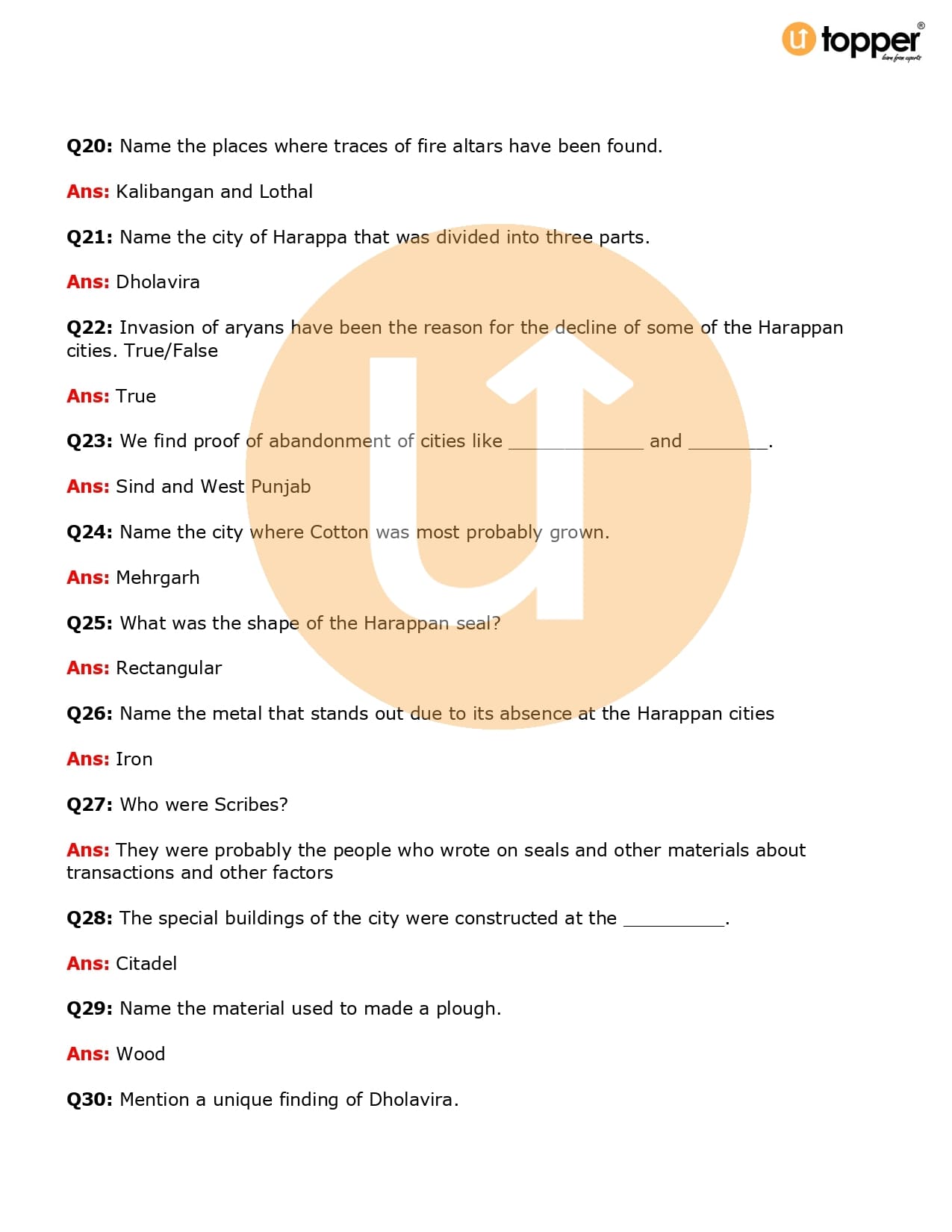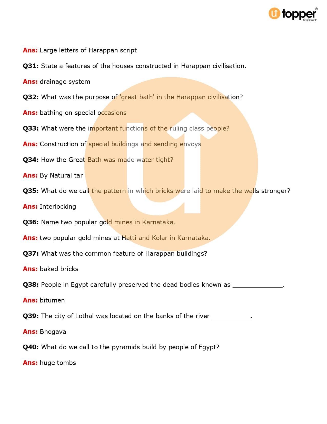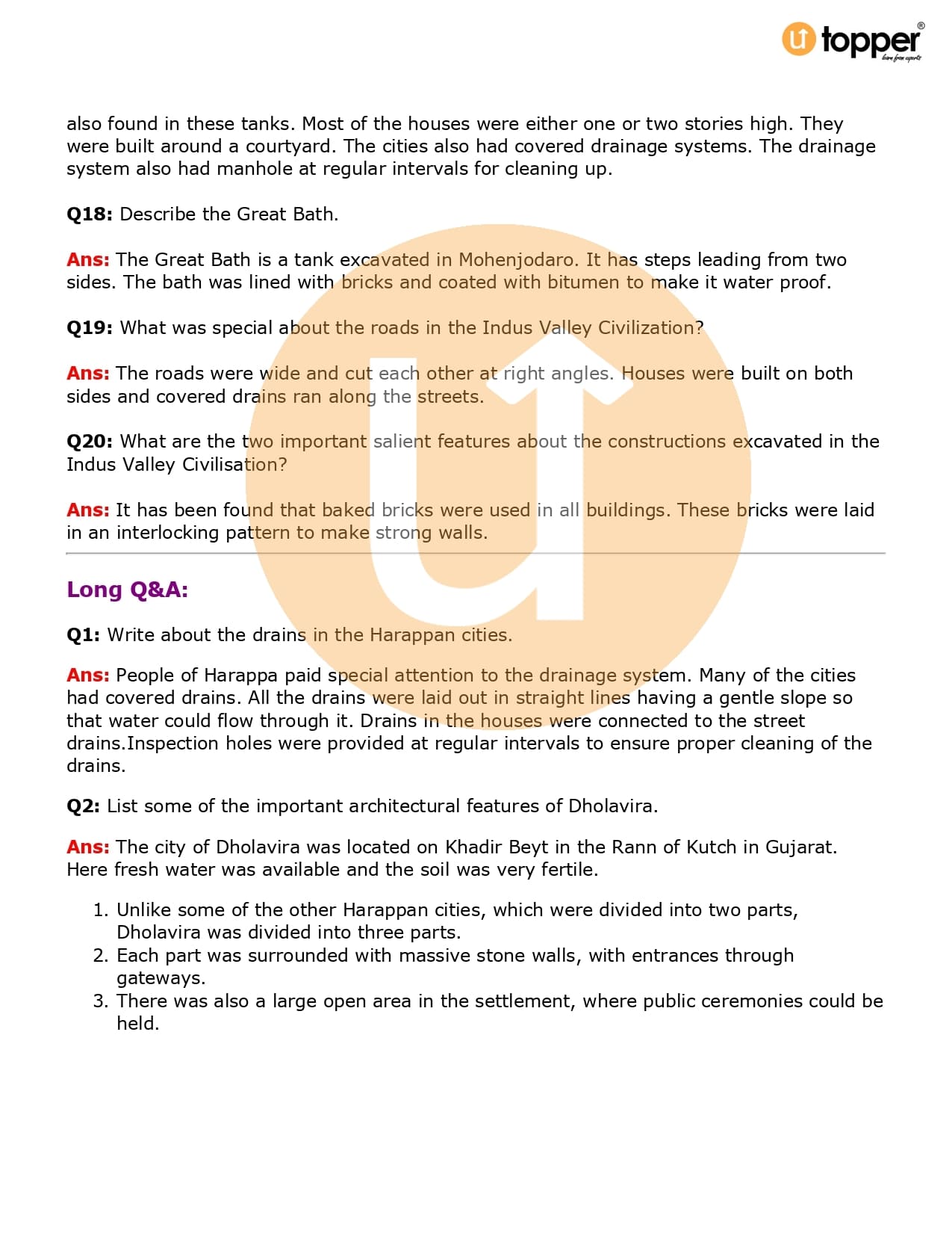 Class 6 History Important Questions Chapter 4 Pdf – In the Earliest Cities