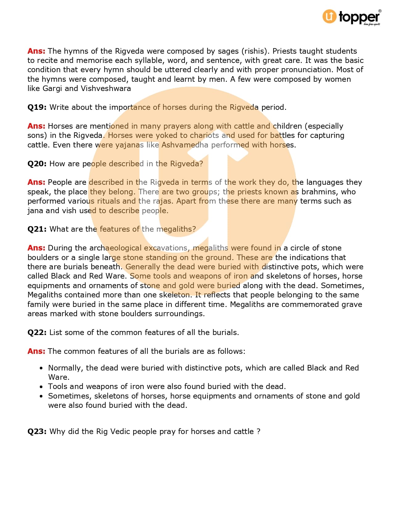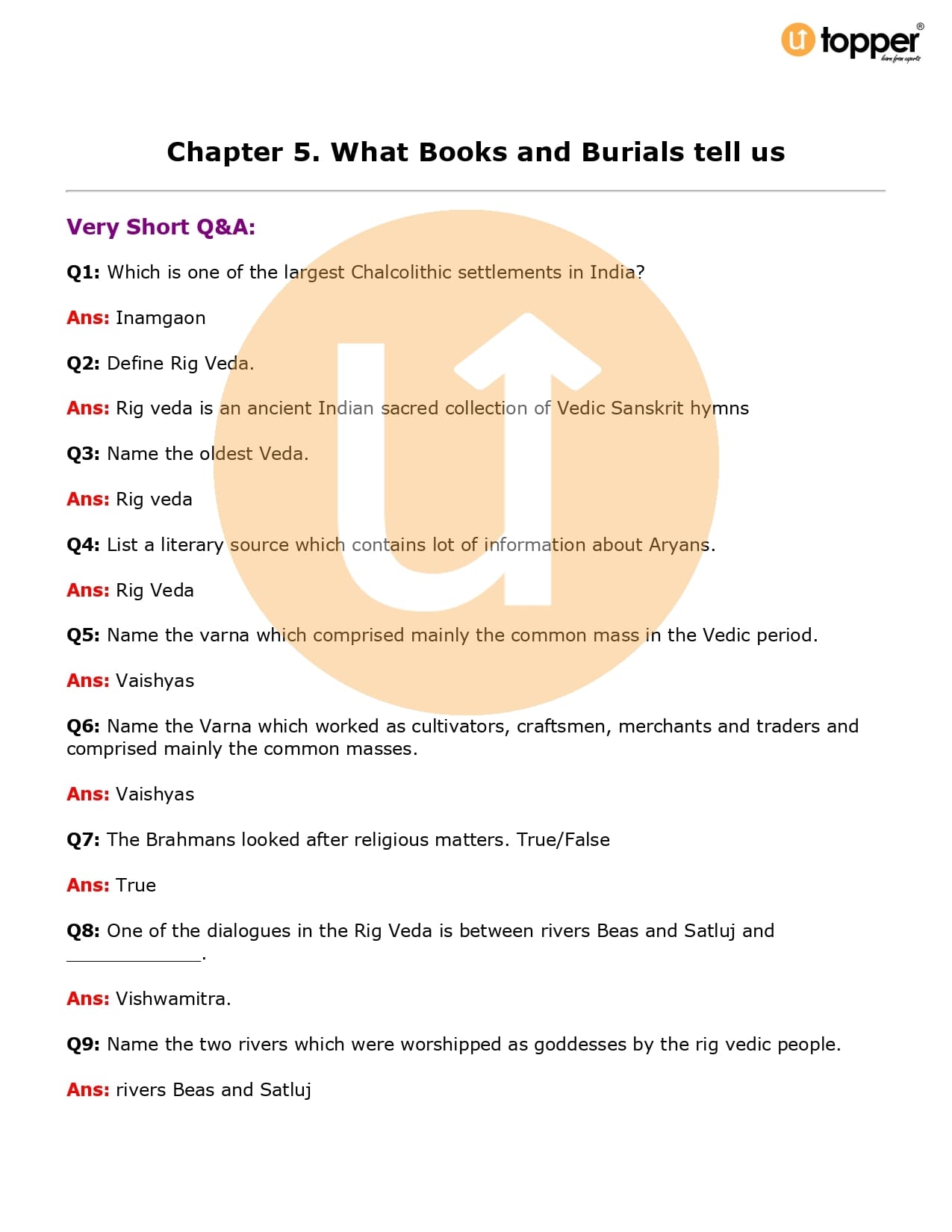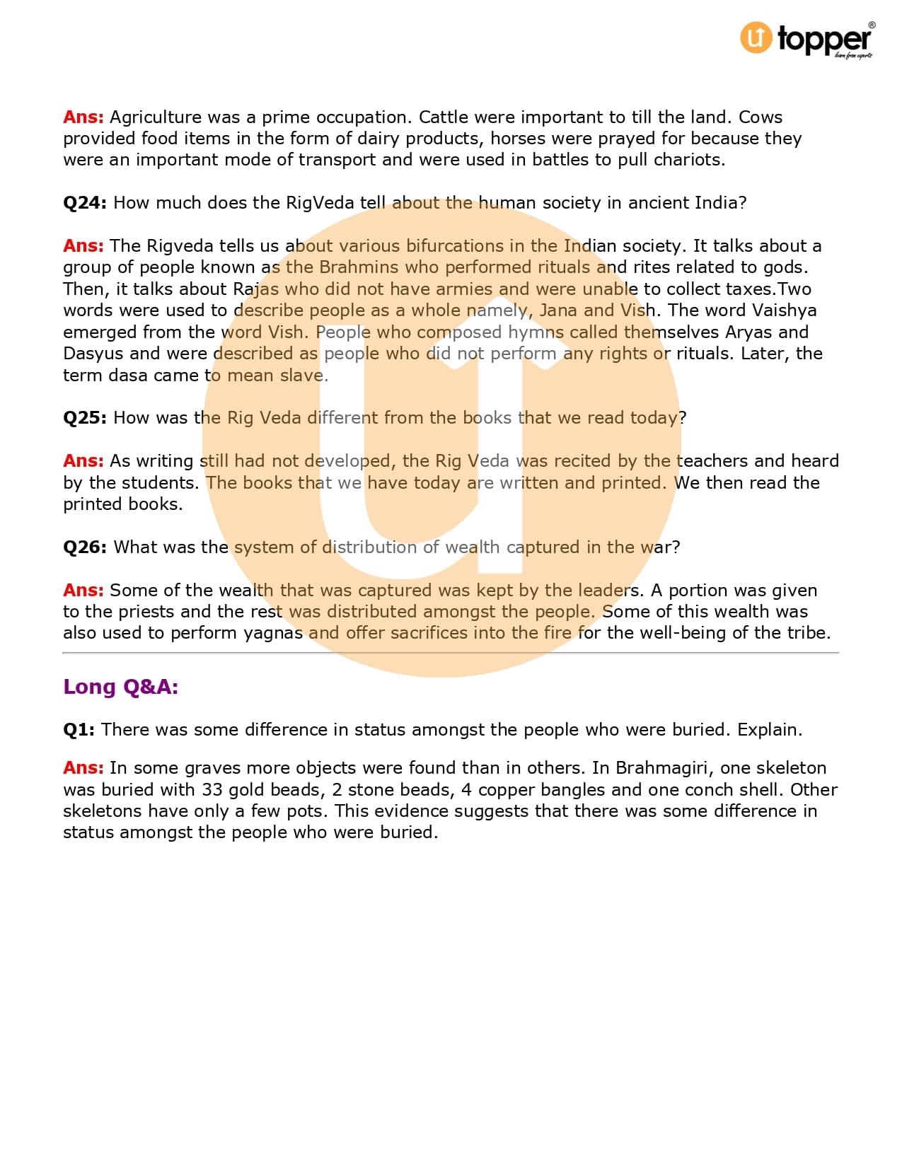 Class 6 History Important Question CBSE Chapter 5 – What Books and Burials Tell Us