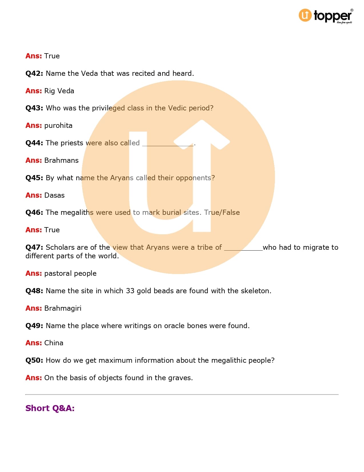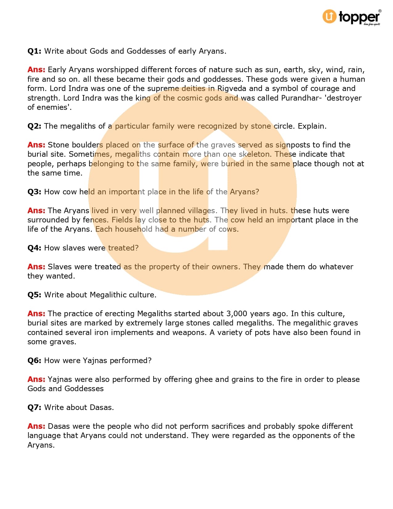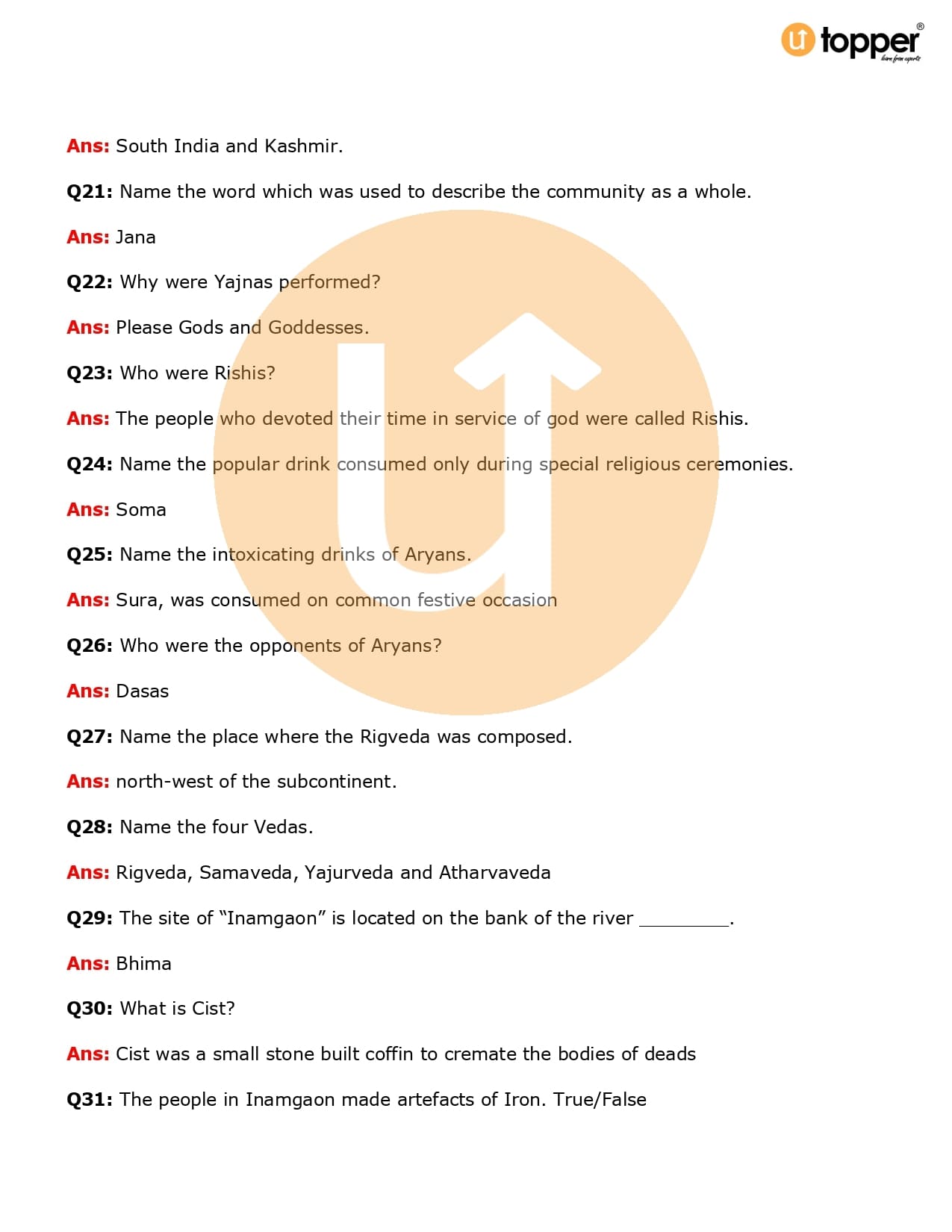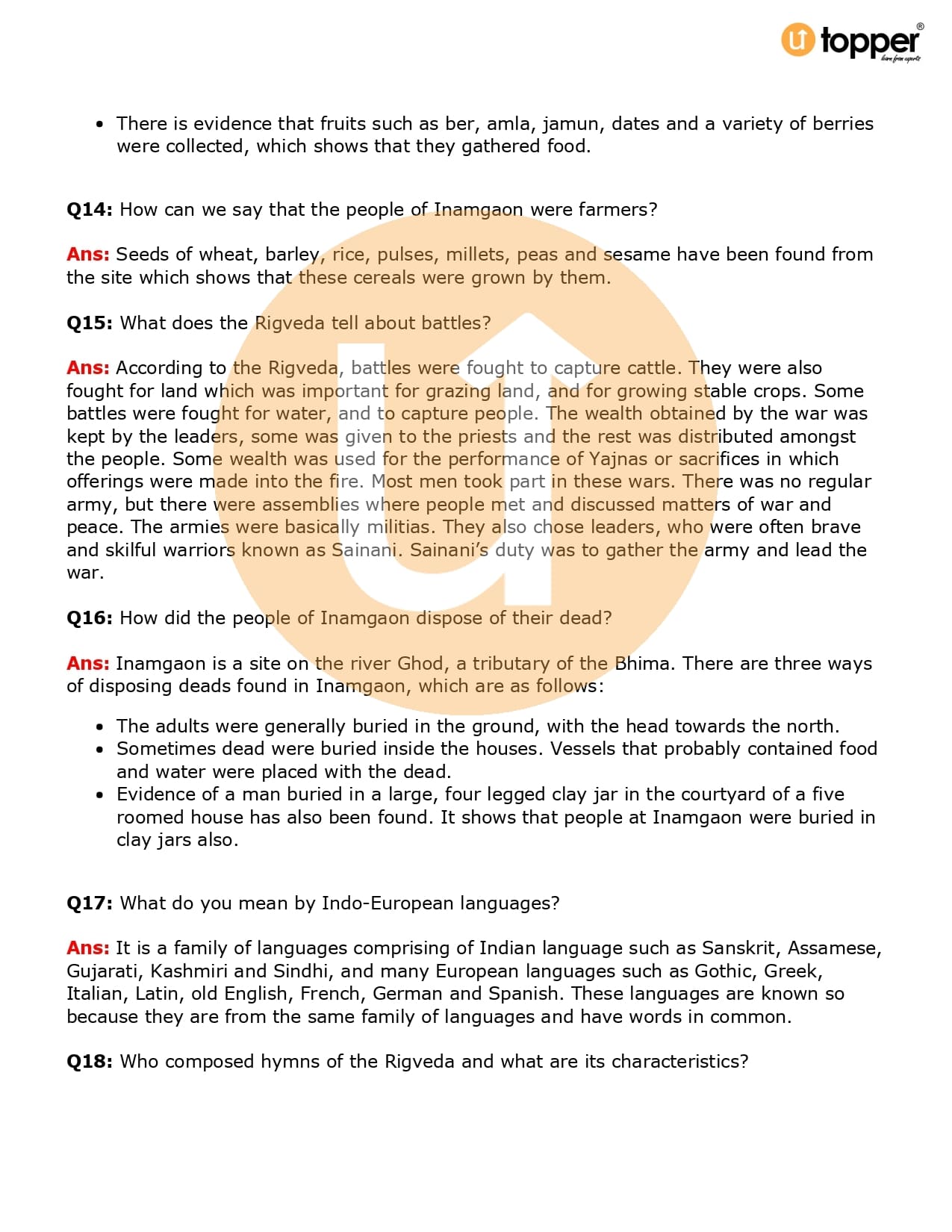 Class 6 History Important Question CBSE Chapter 5 – What Books and Burials Tell Us