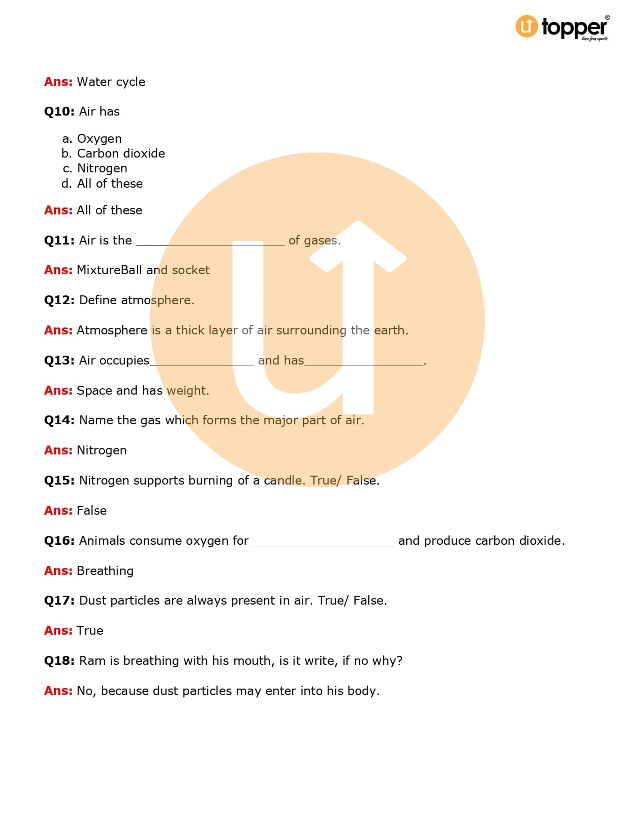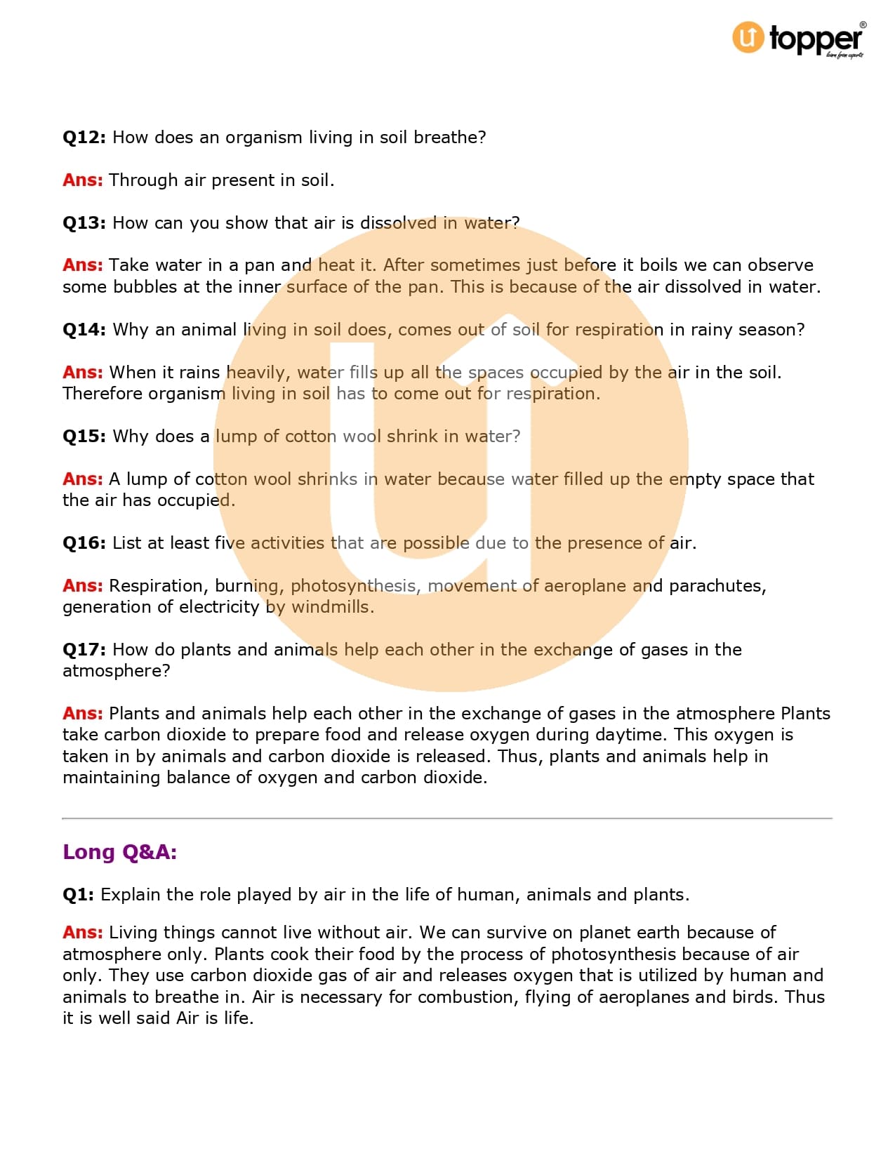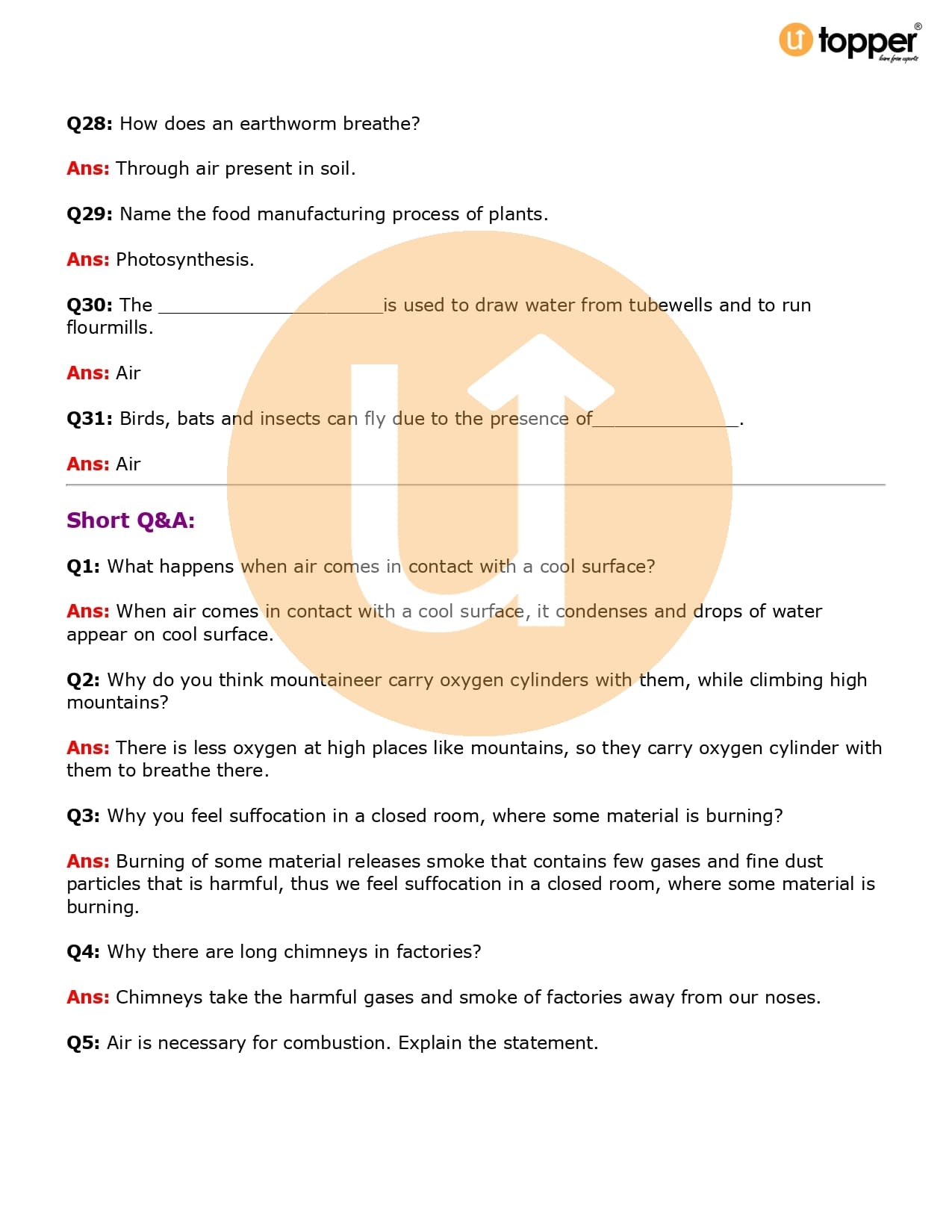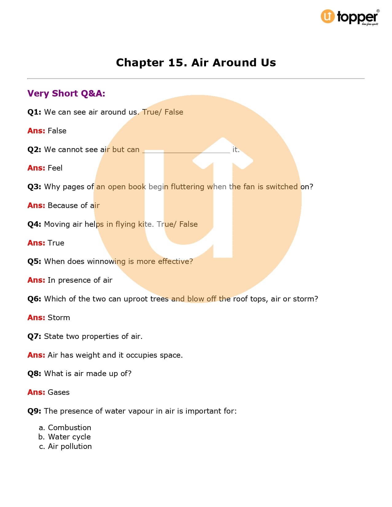 Class 6 Science Important Question CBSE Chapter 15 – Air Around Us