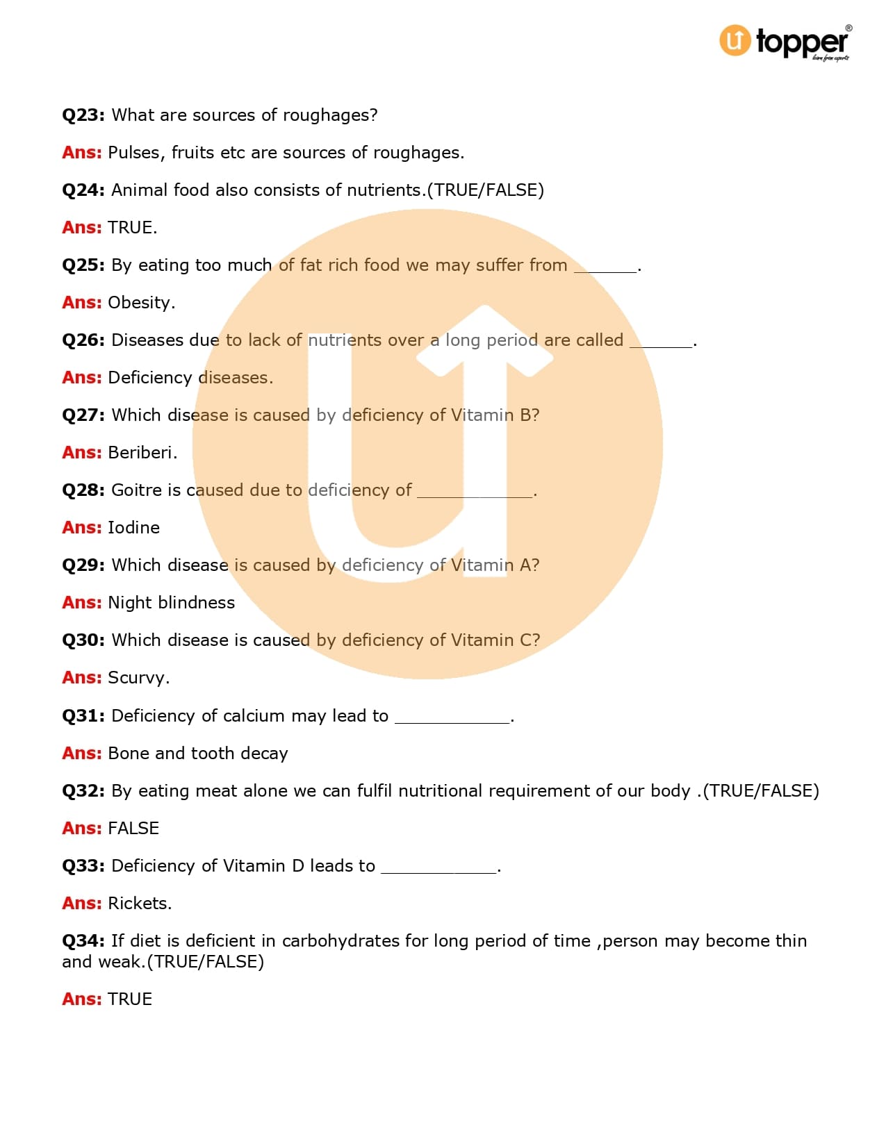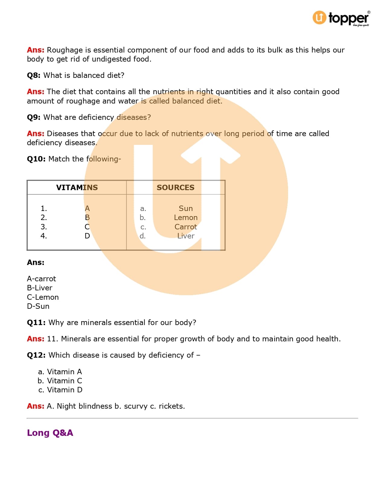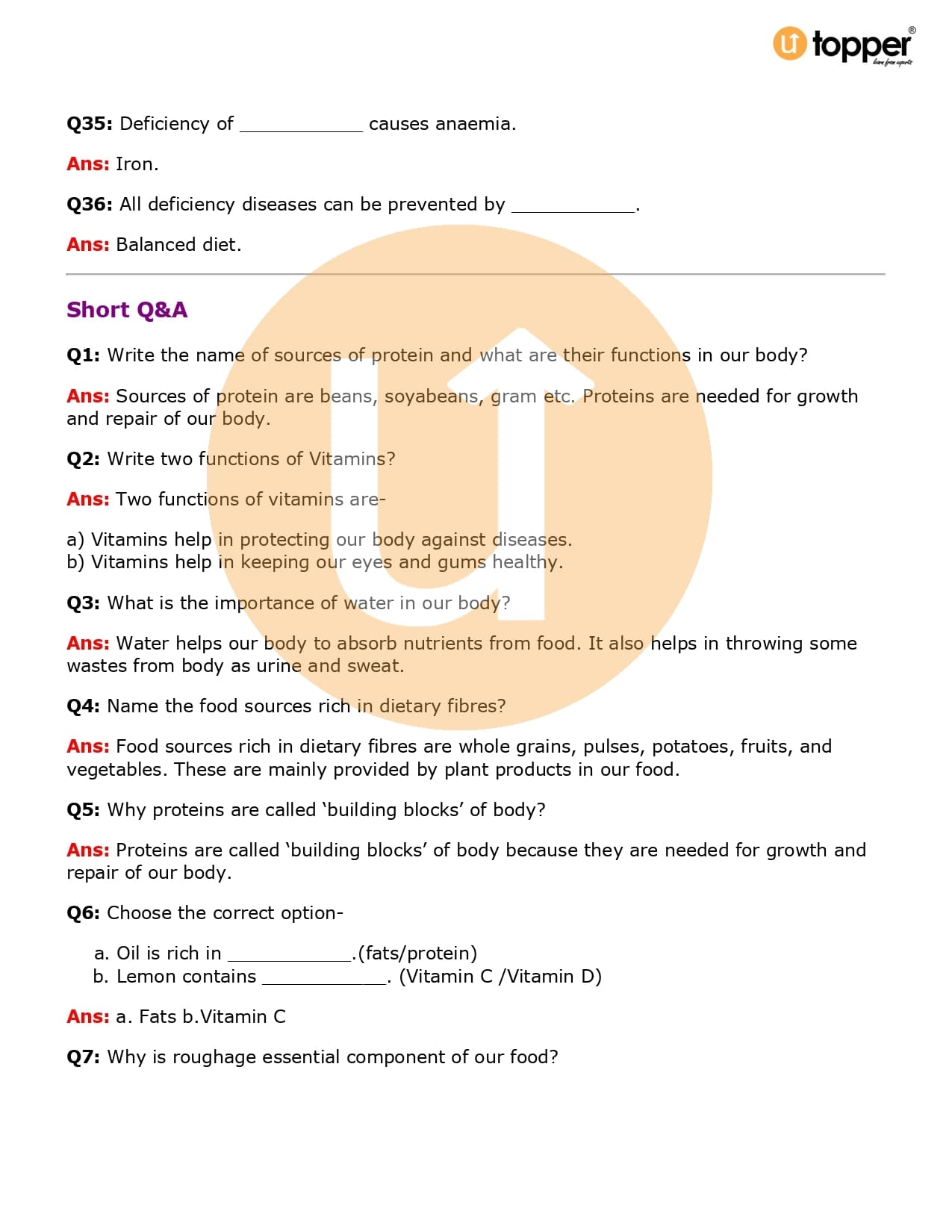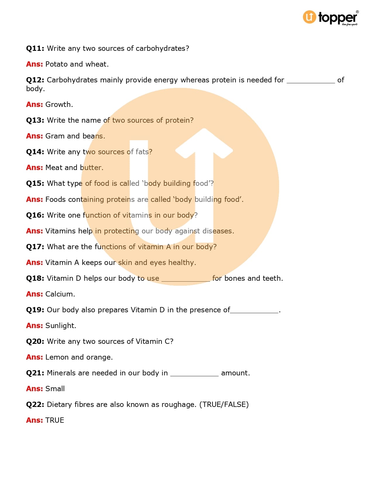 Class 6 Science Important Question CBSE Chapter 2 – Components of Food