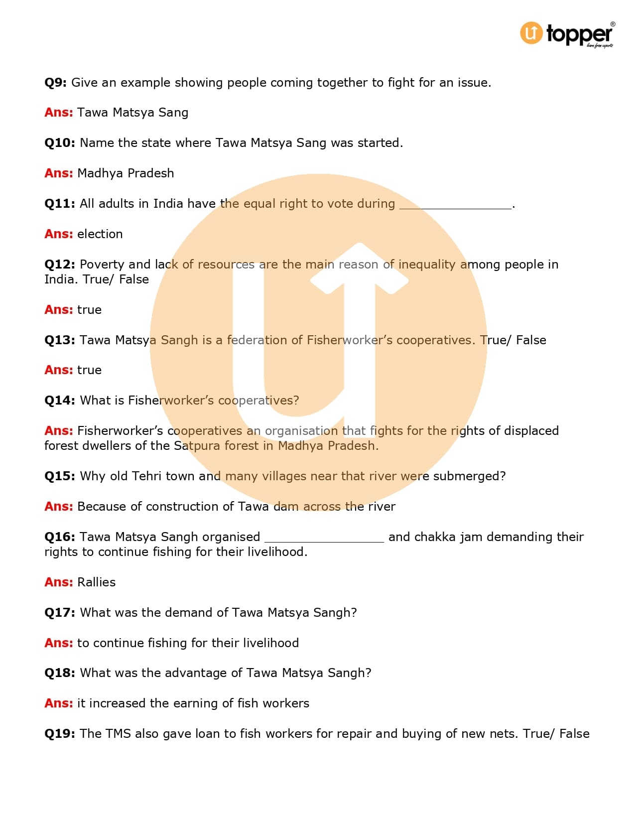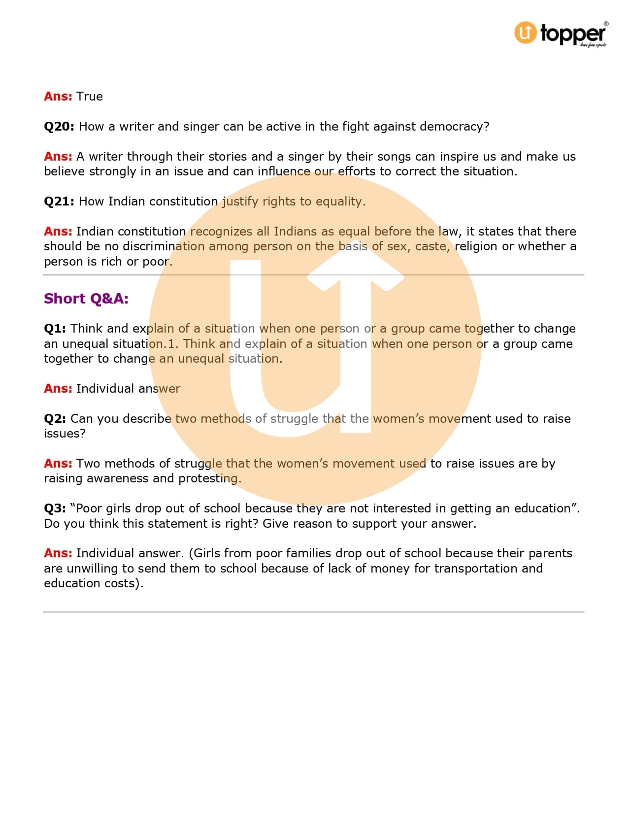 Class 7 Civics Important Question CBSE Chapter 10 – Struggles for Equality