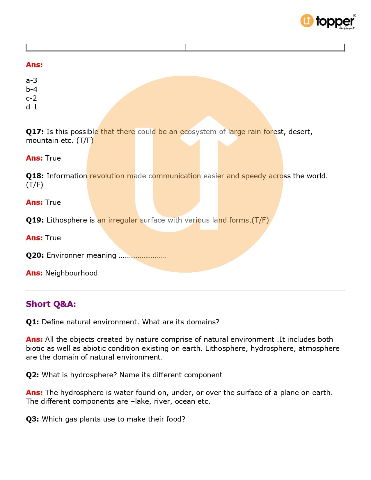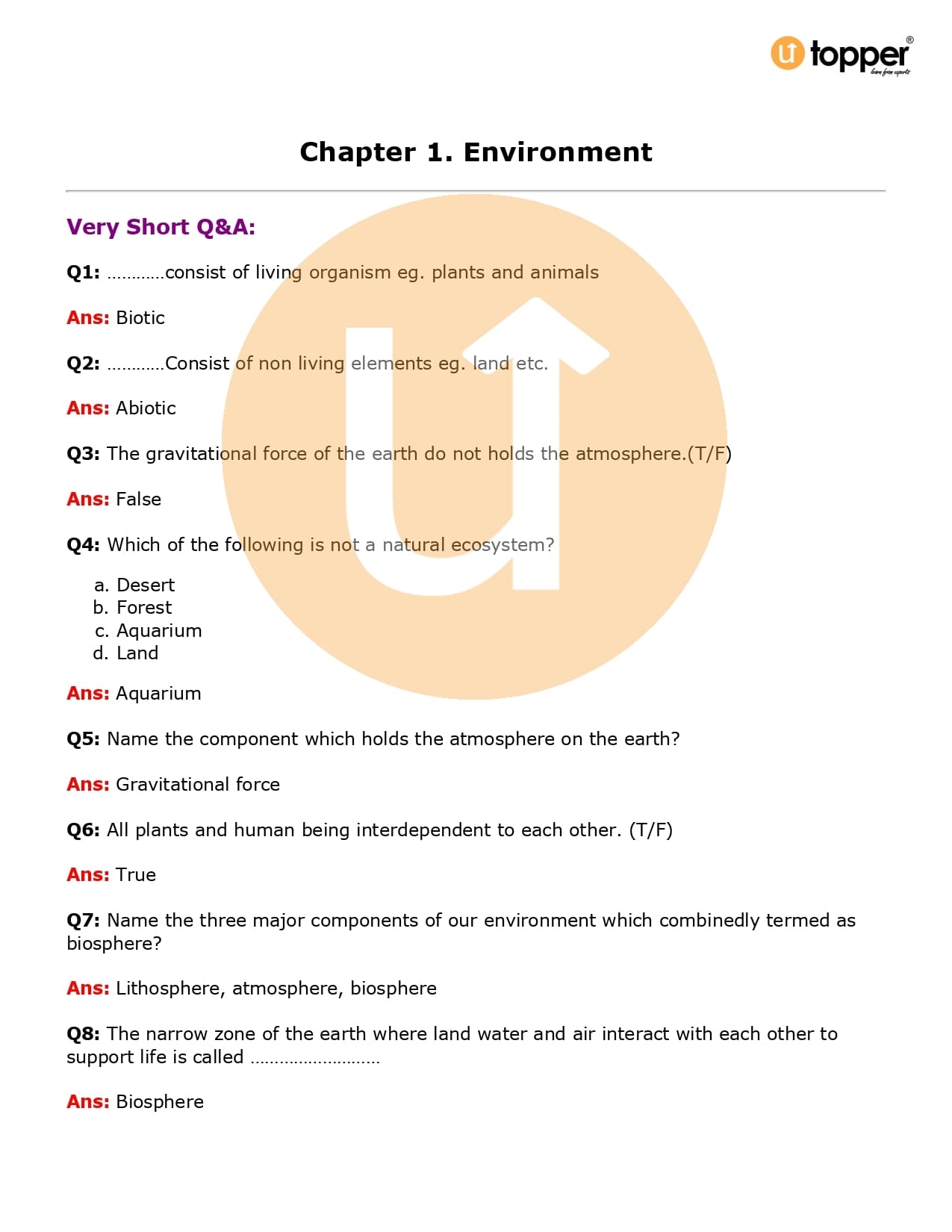 Class 7 Geography Important Questions Chapter 1 Pdf – Environment