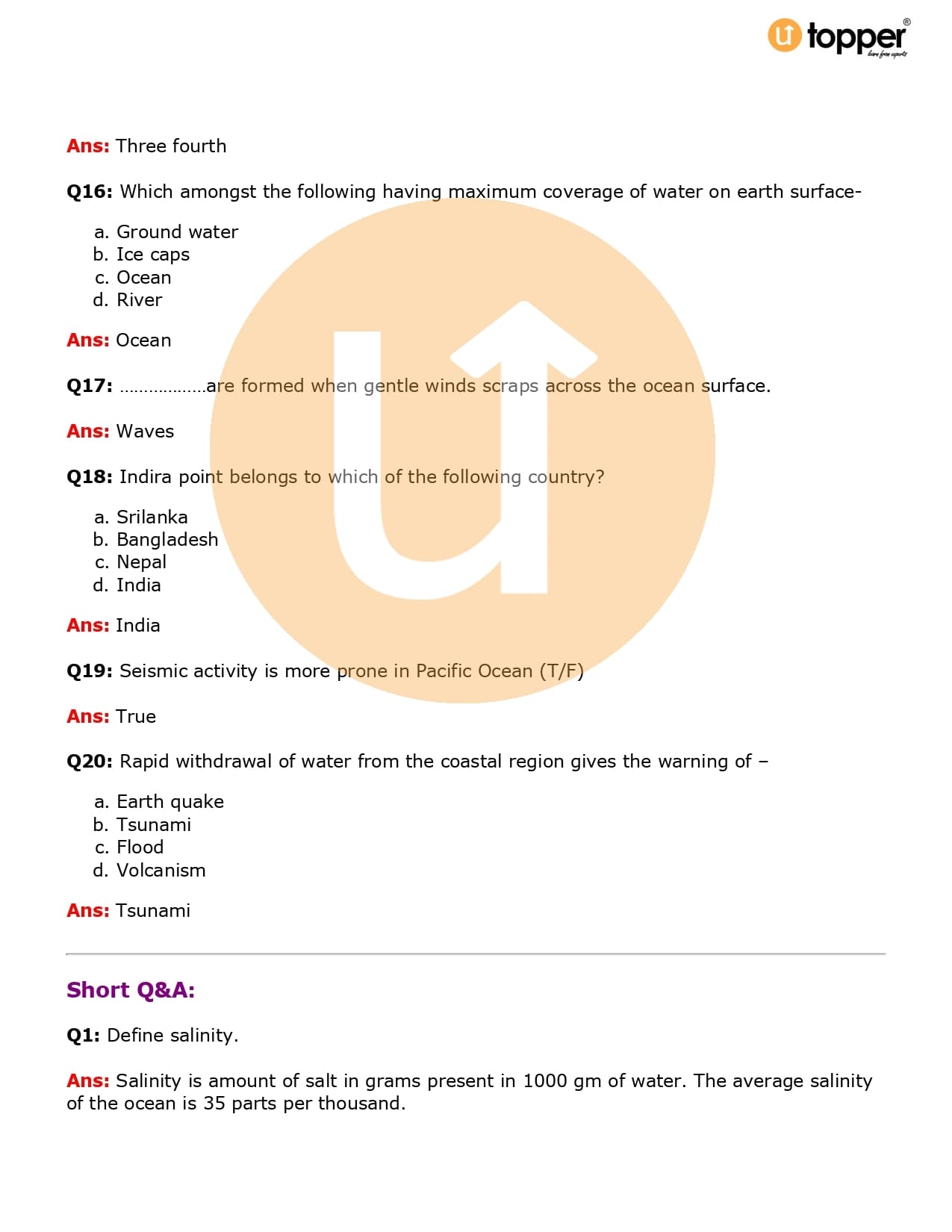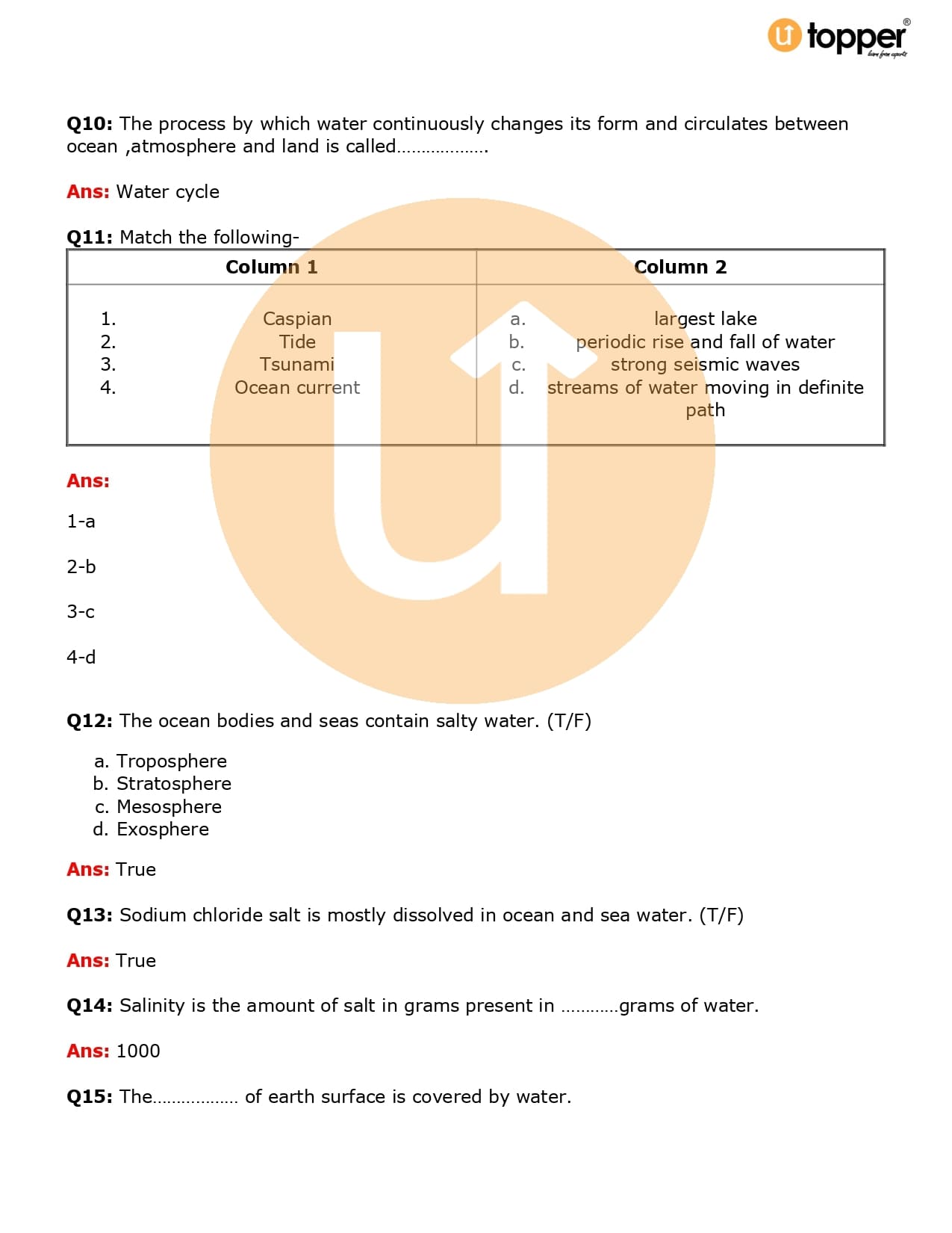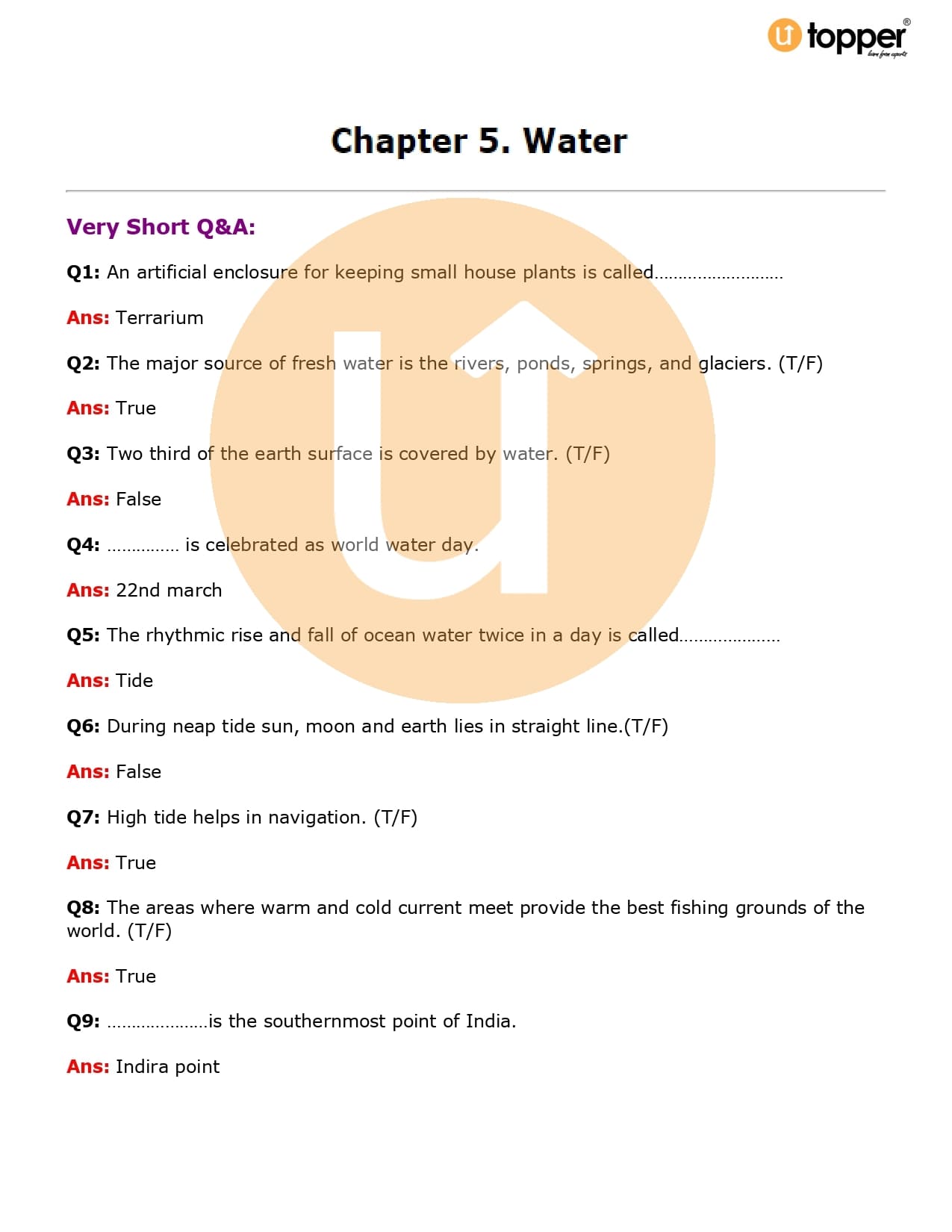 Class 7 Geography Important Questions Chapter 5 Pdf – Water