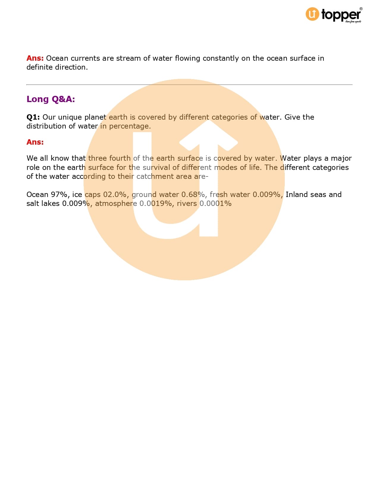 Class 7 Geography Important Question CBSE Chapter 5 – Water