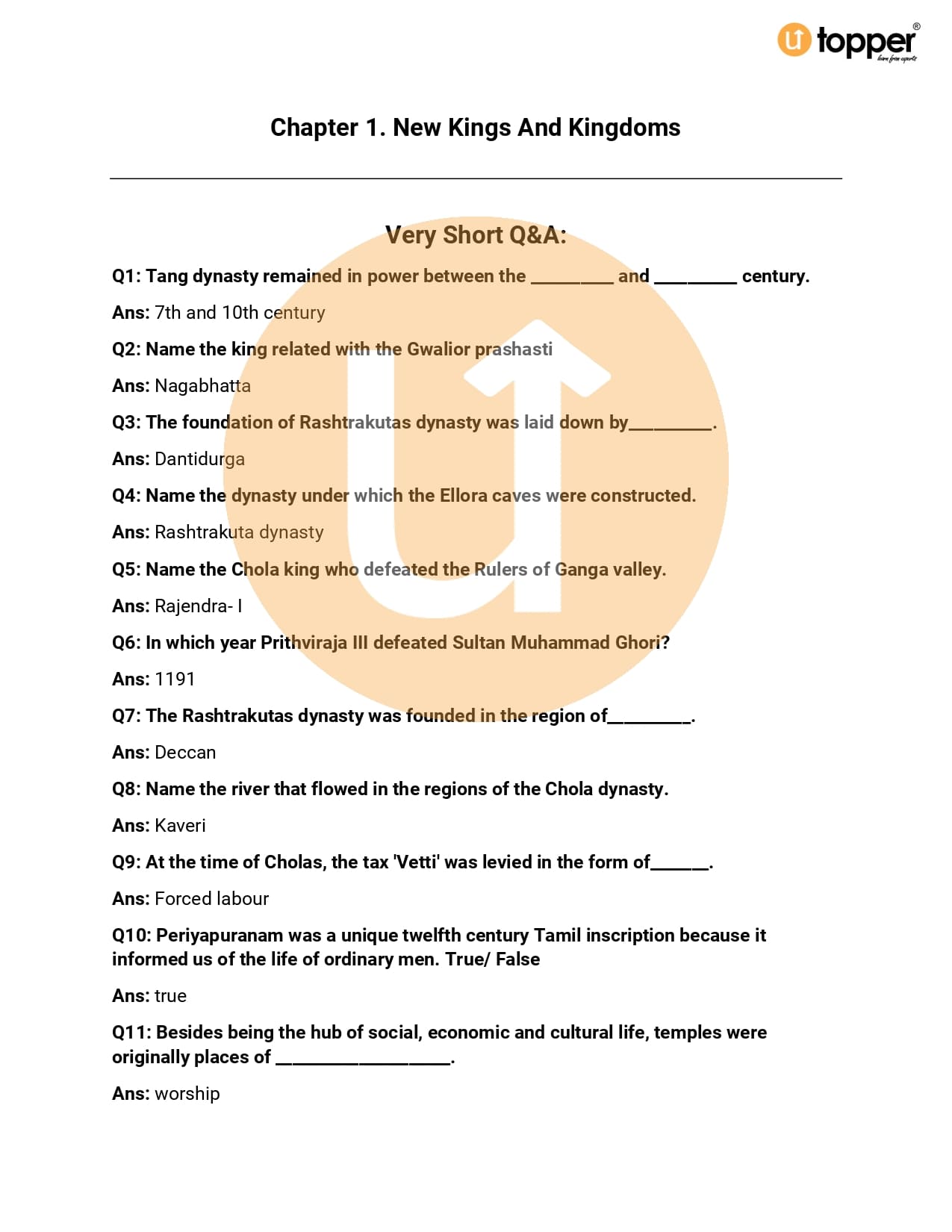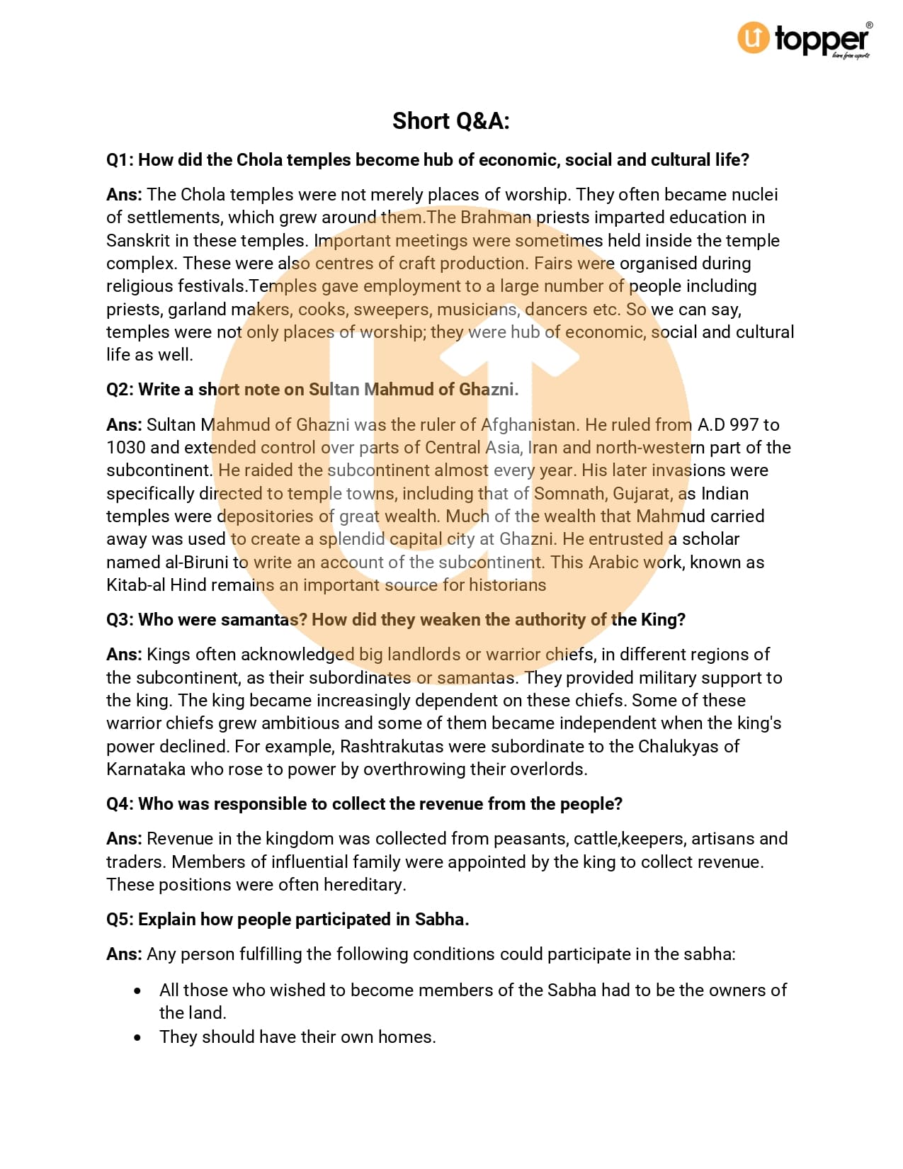 CBSE Class 7 Social Science (History) Important Questions Chapterwise PDf