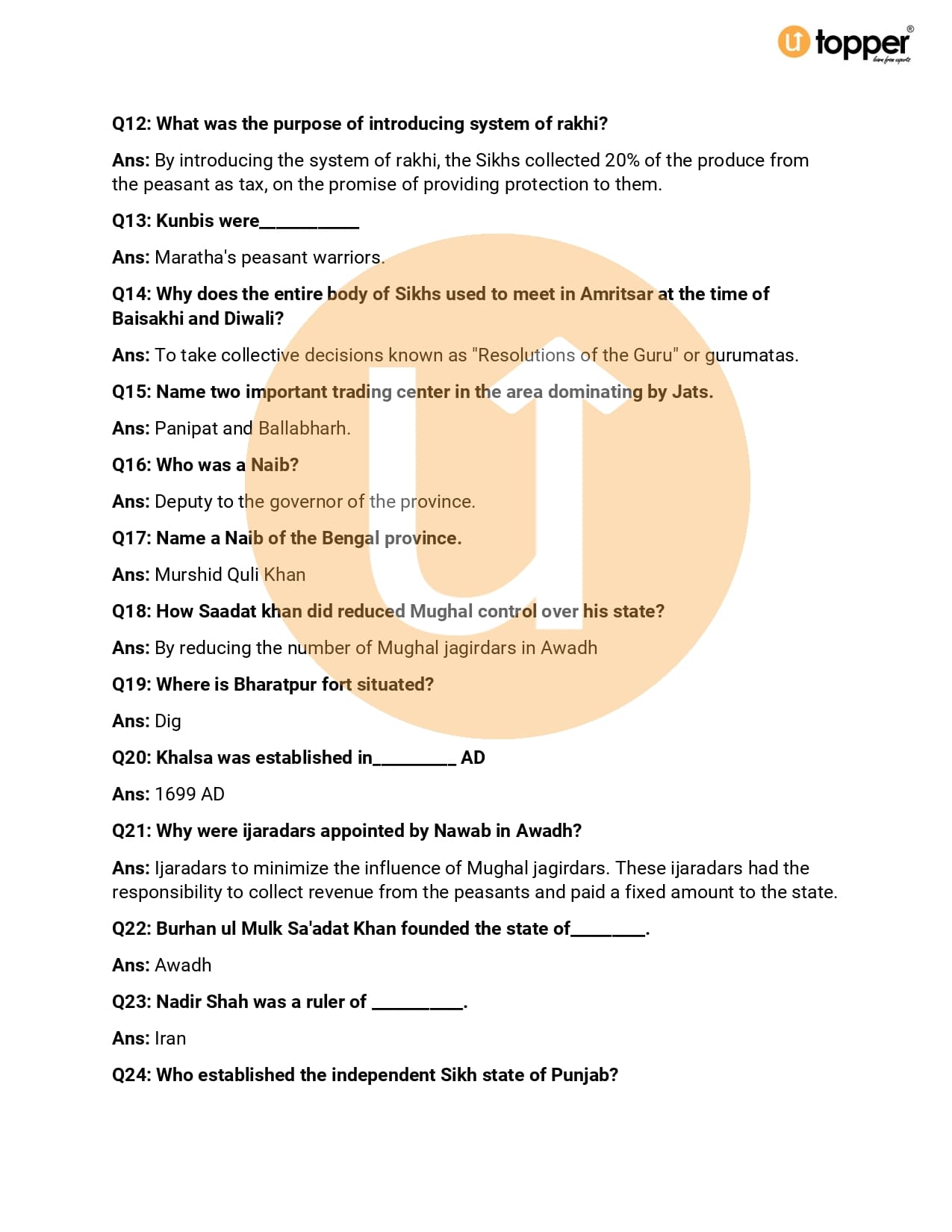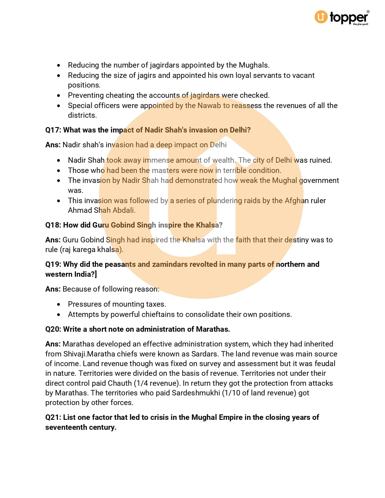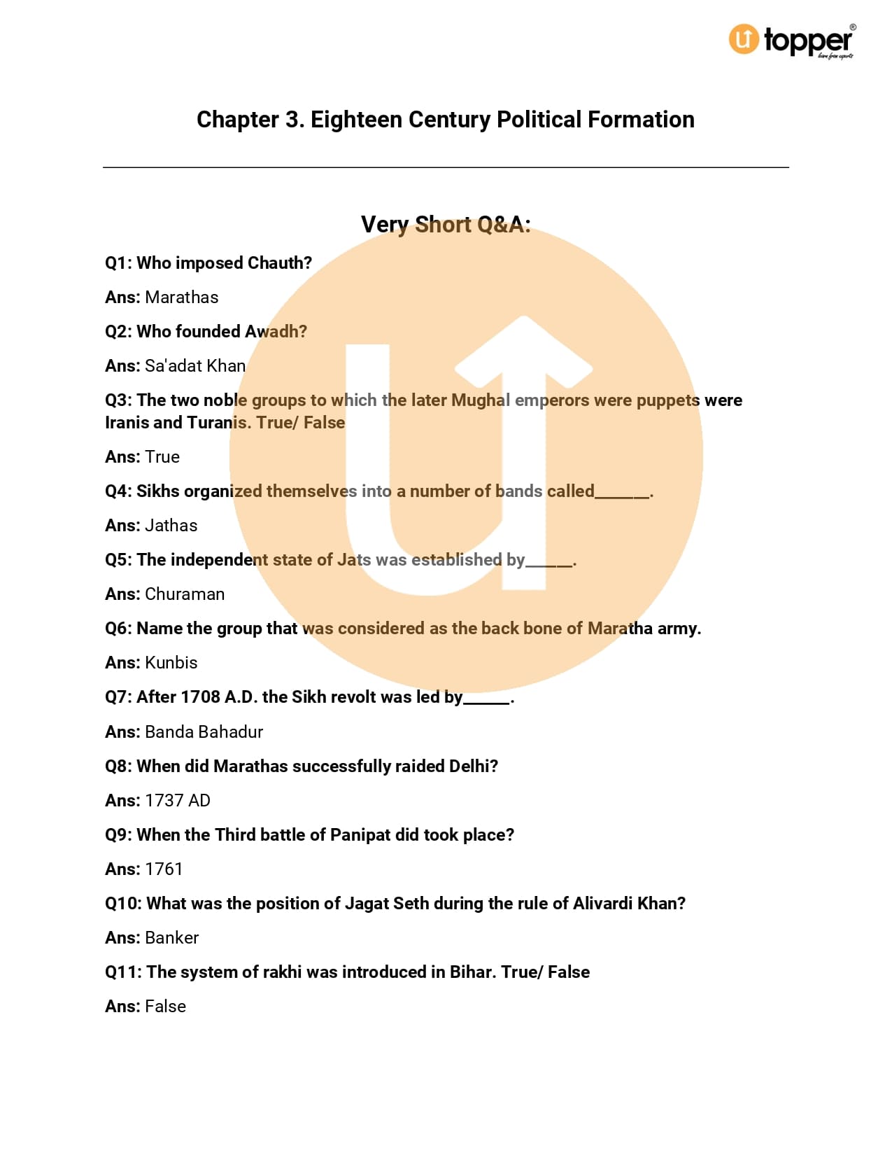 Important Question Class 7 History Chapter 3