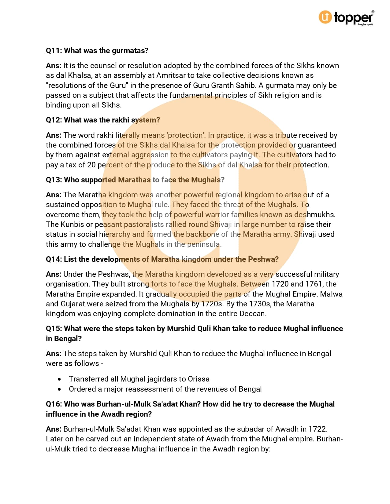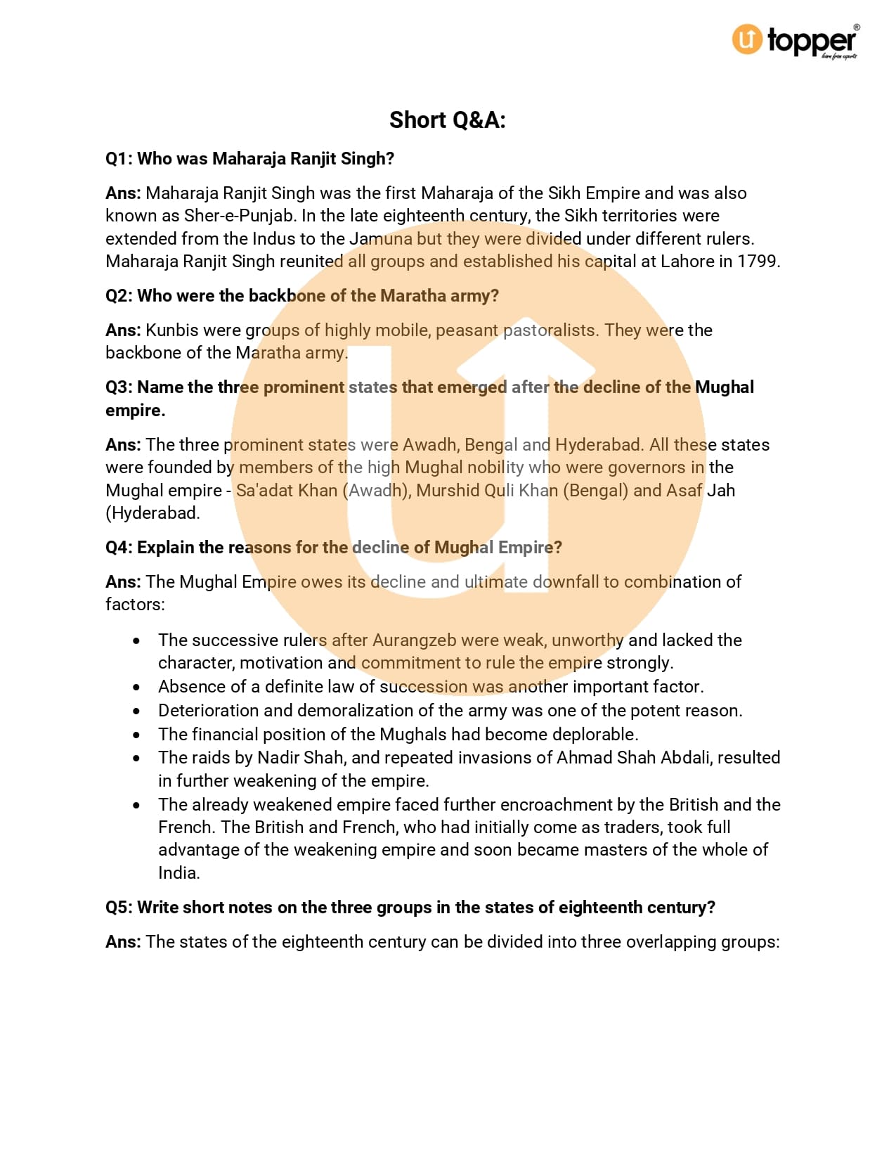 CBSE Class 7 Social Science (History) Important Questions Chapterwise PDf