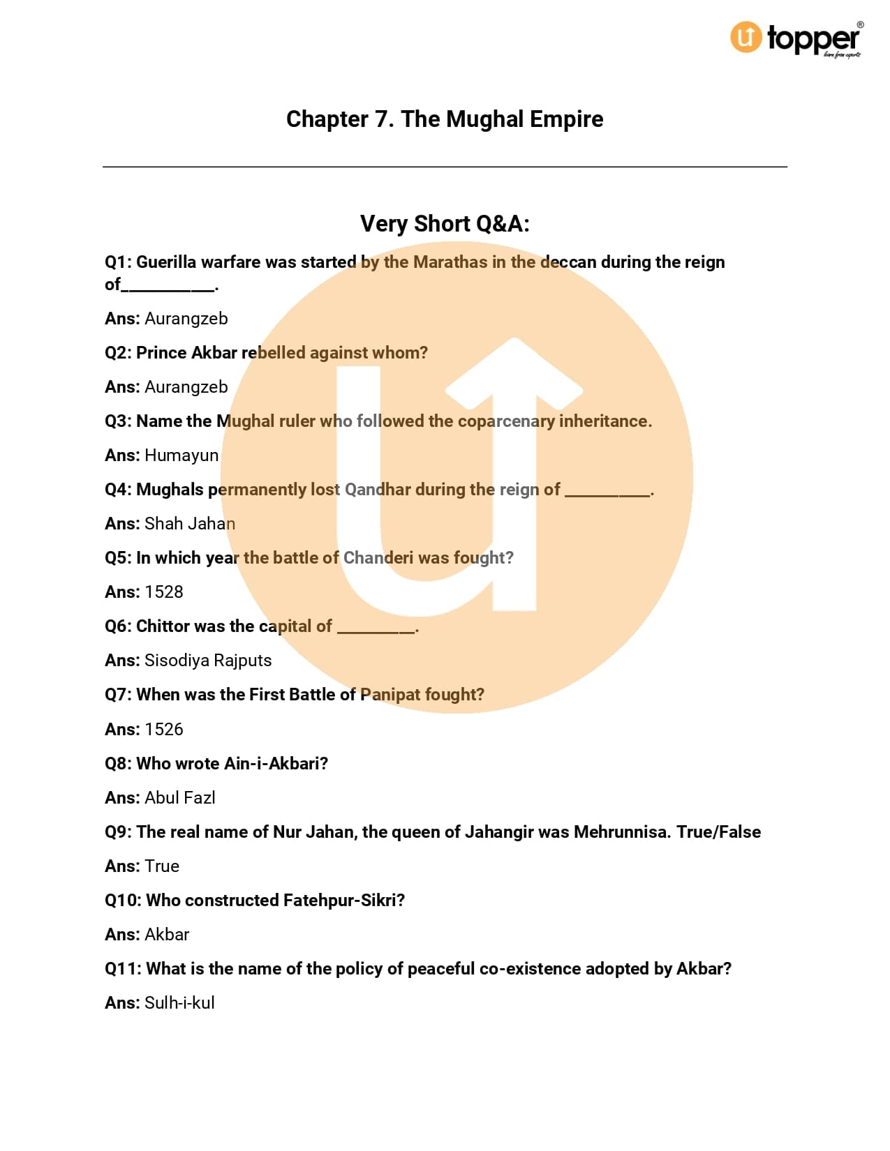 CBSE Class 7 Social Science (History) Important Questions Chapterwise PDf