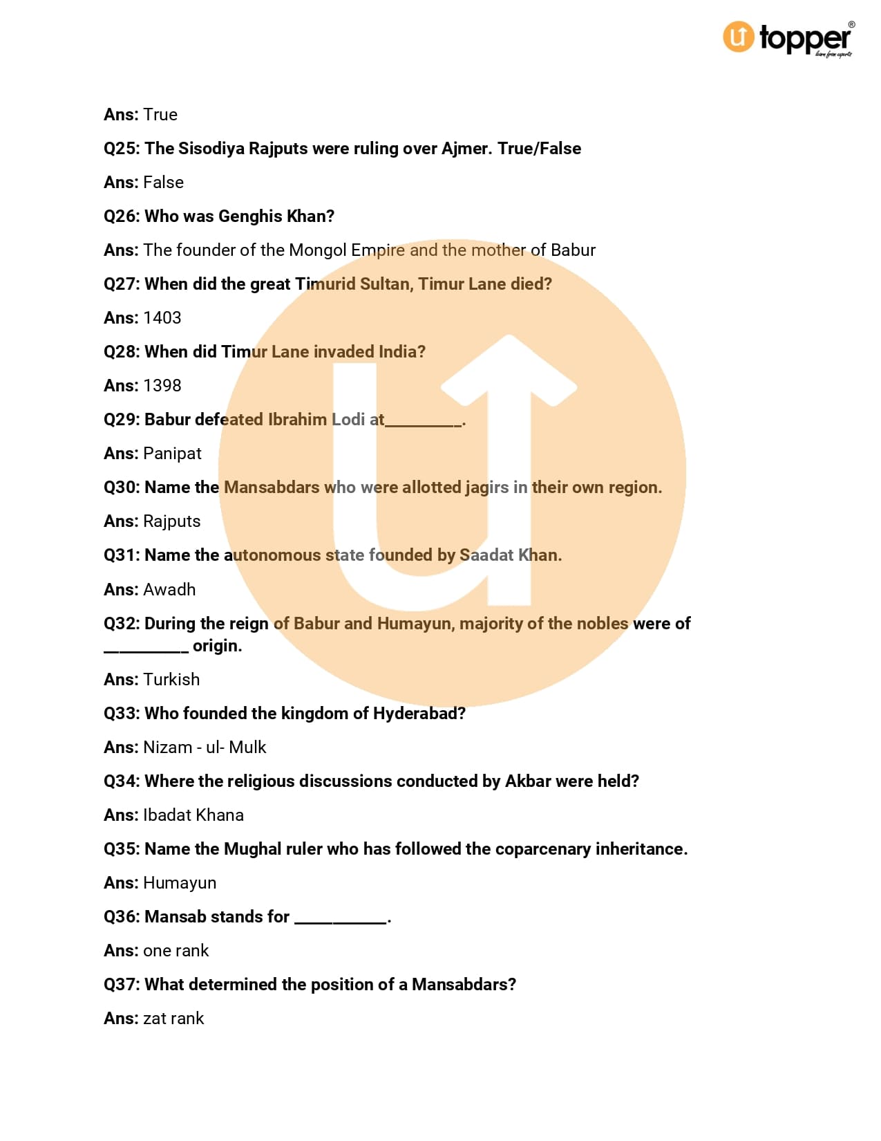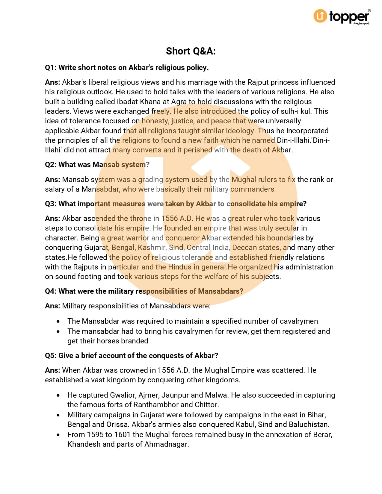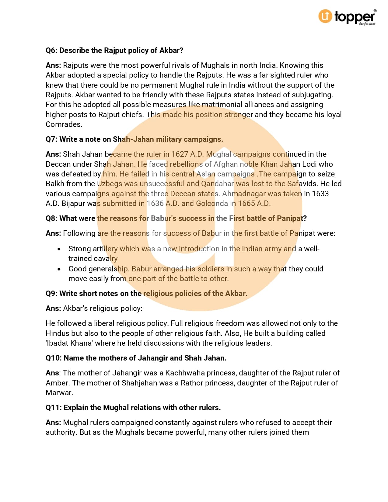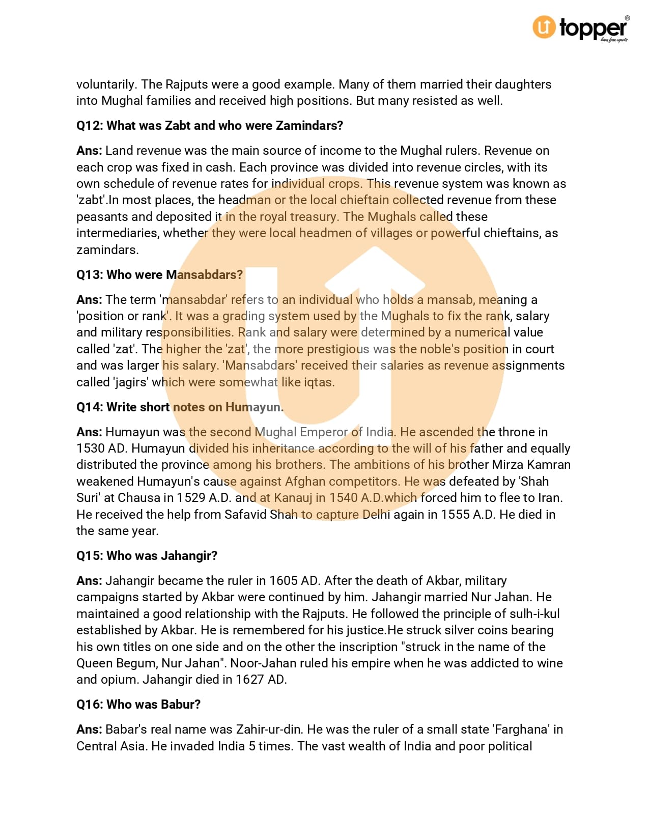Important Question Class 7 History Chapter 7
