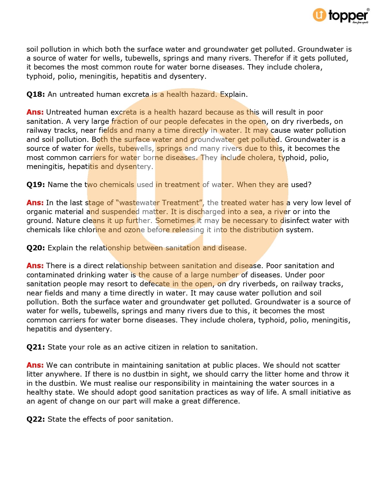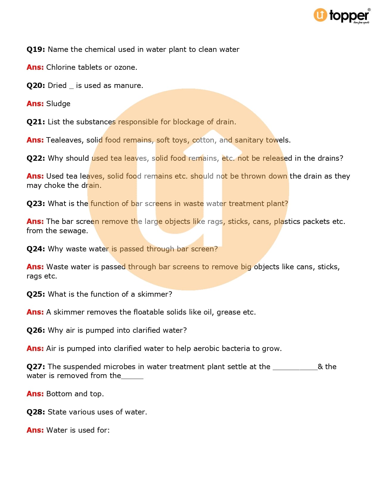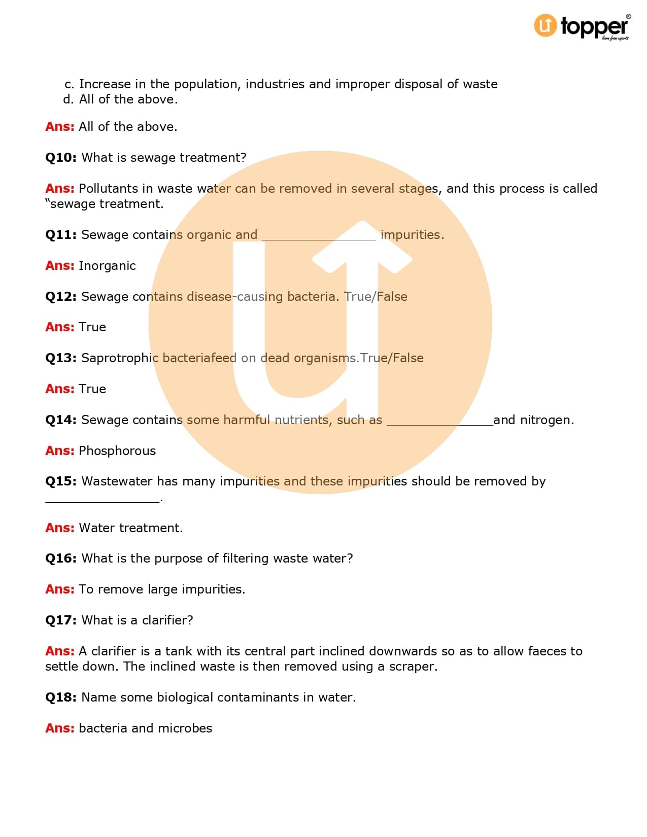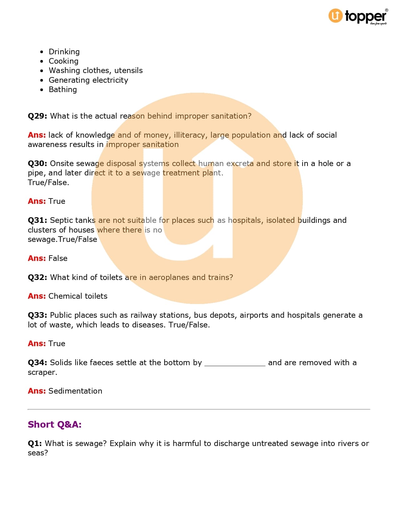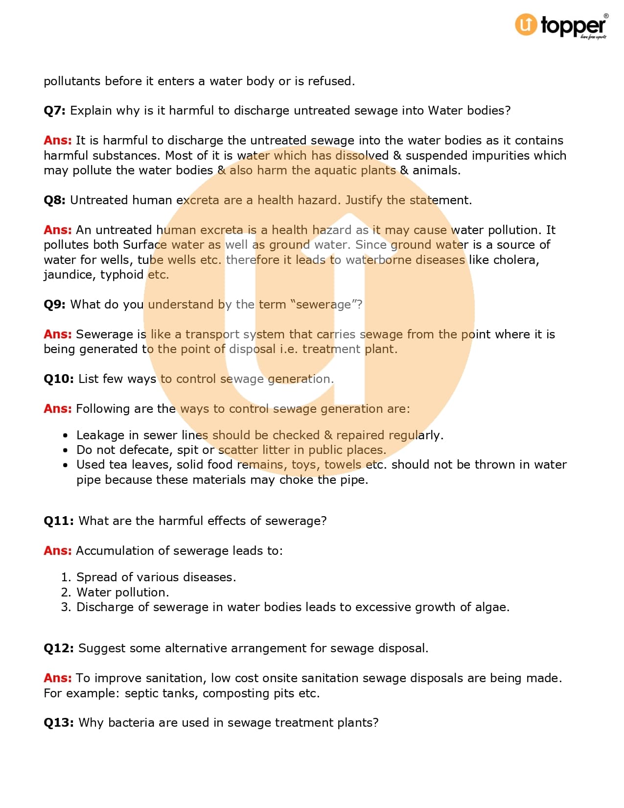 Class 7 Science Important Question CBSE Chapter 18 – Wastewater Story