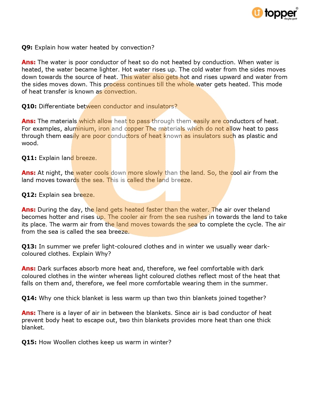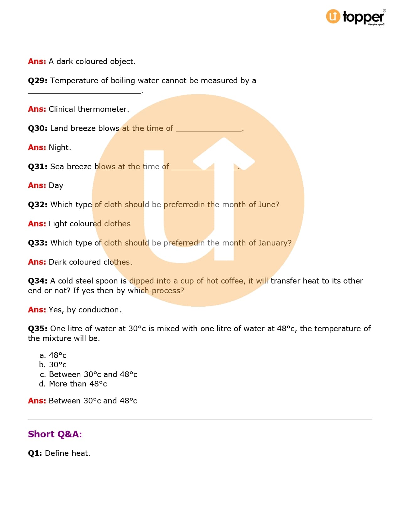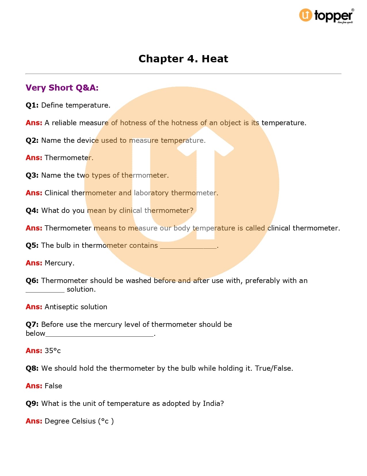 Class 7 Science Important Question CBSE Chapter 4 – Heat