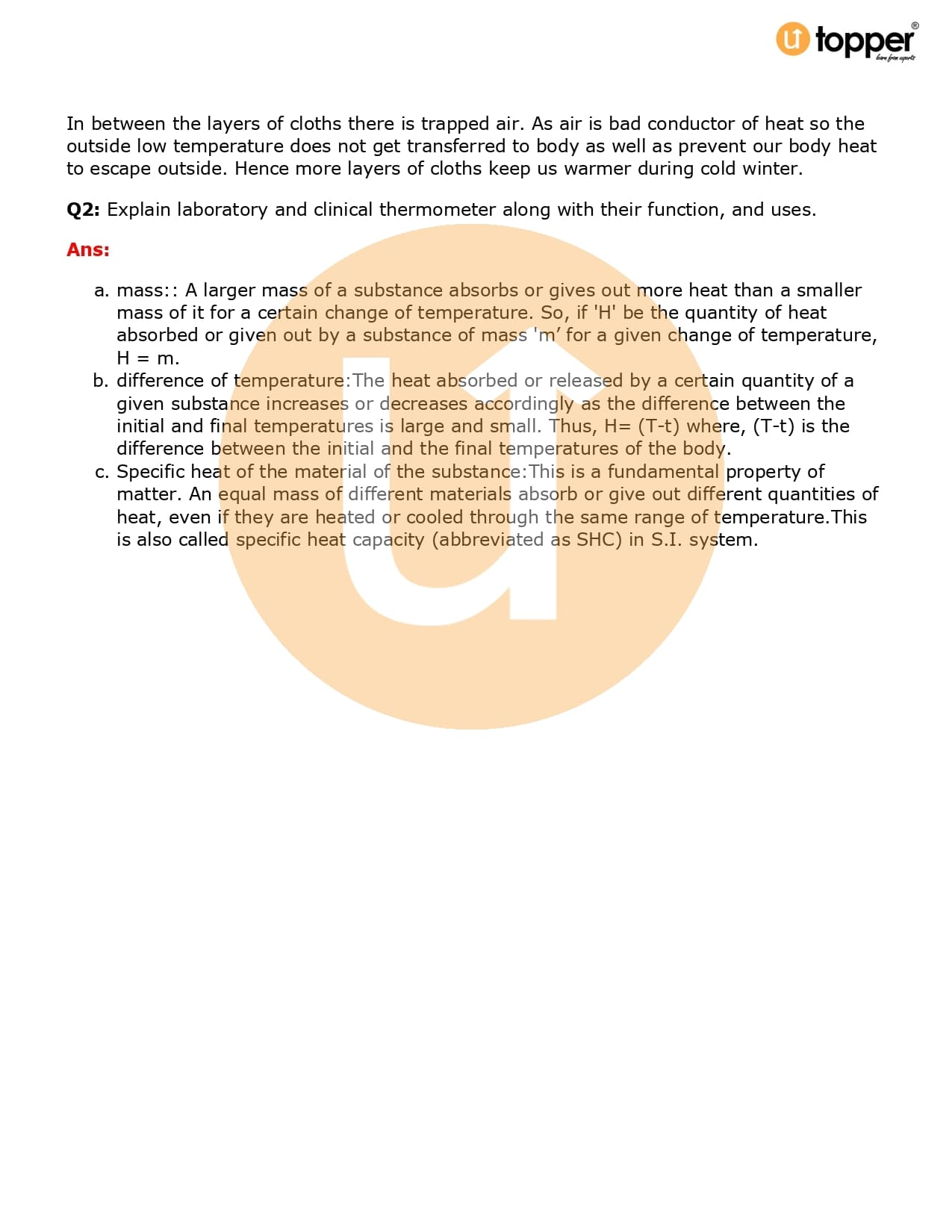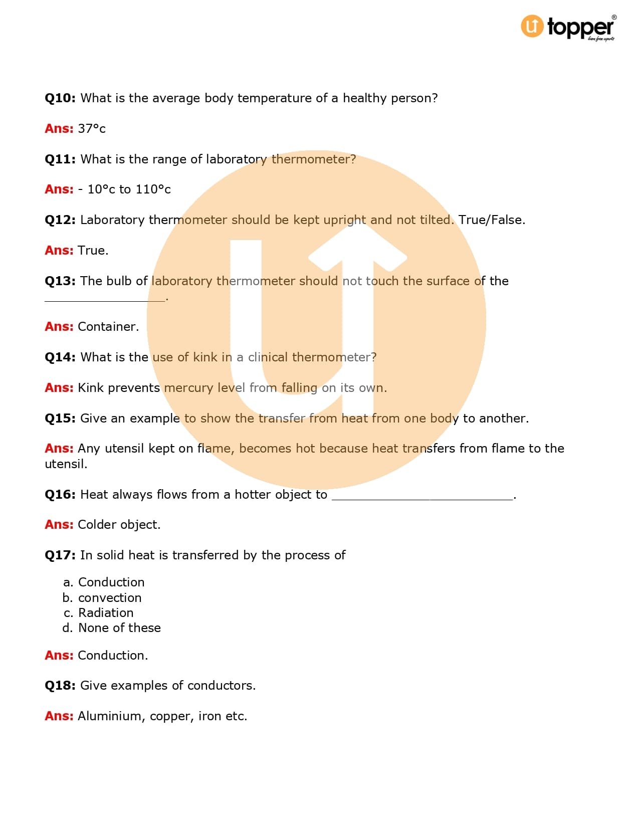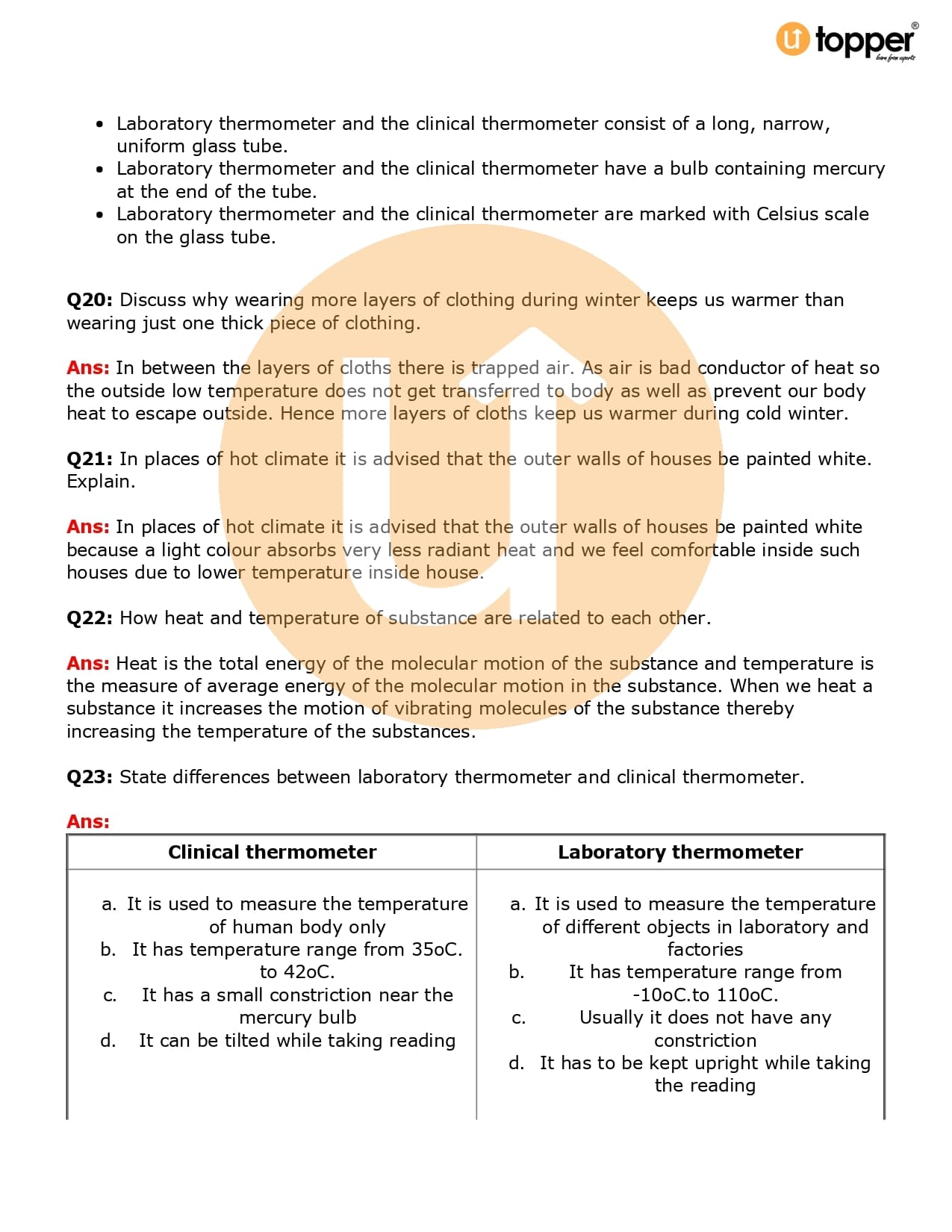 Class 7 Science Important Question CBSE Chapter 4 – Heat