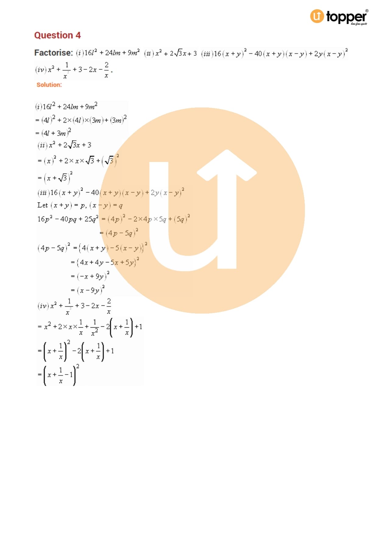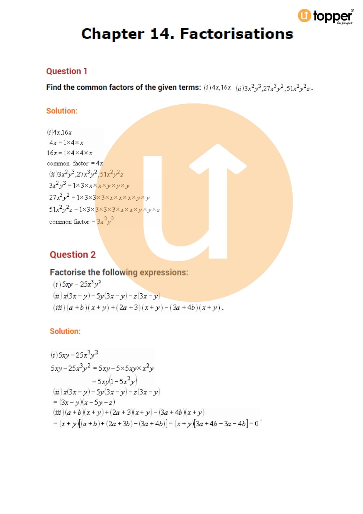 Class 8 Maths Important Questions Chapter 14 Pdf – Factorisation